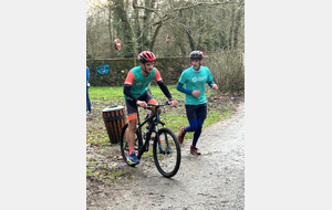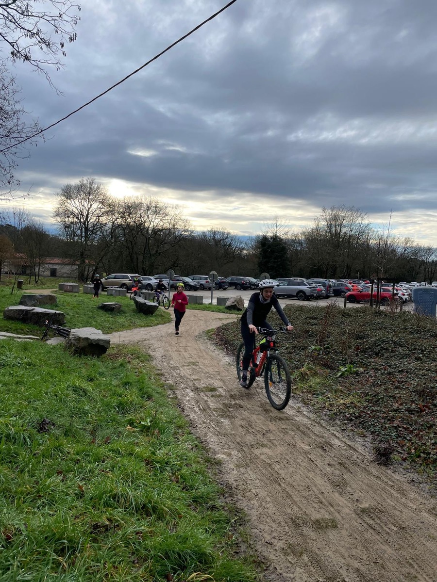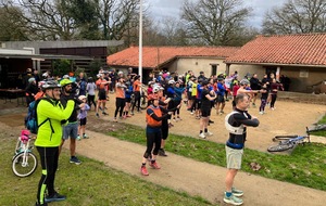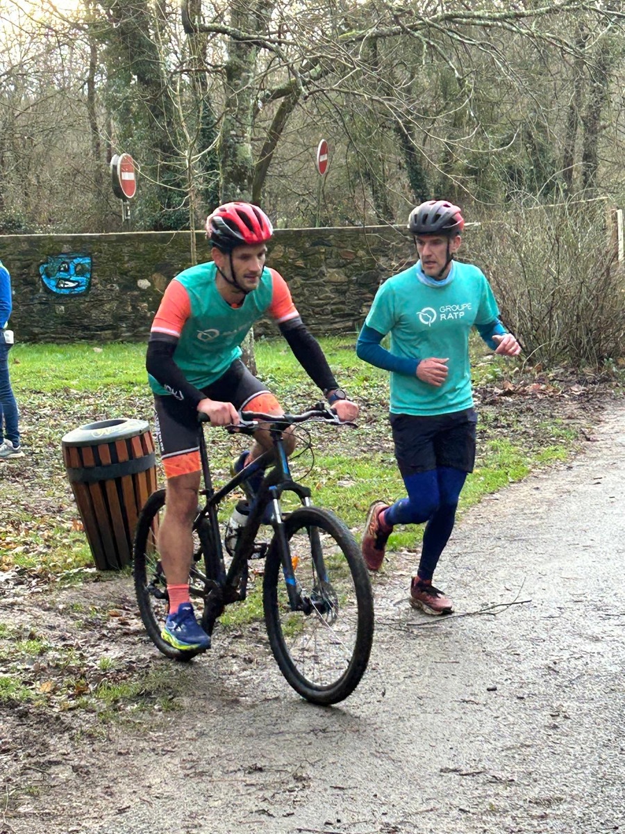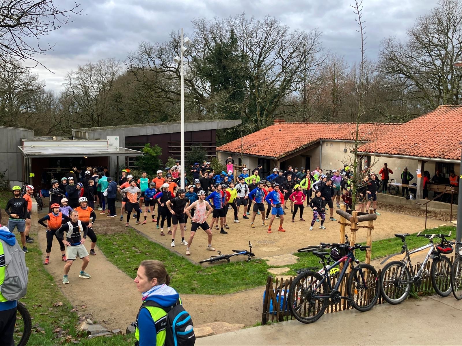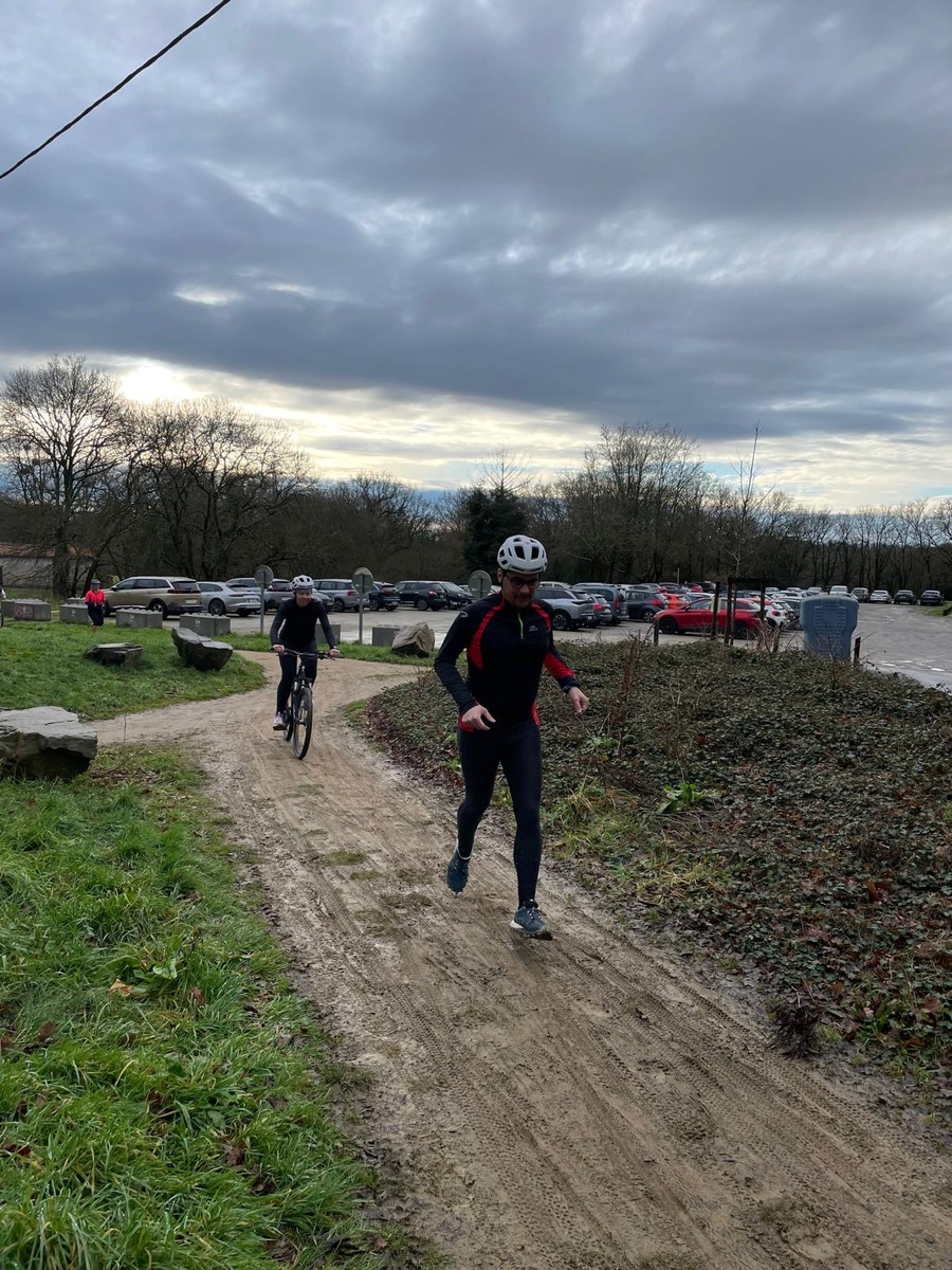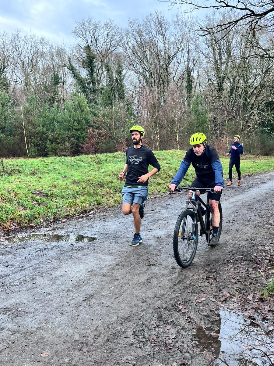 Ce Dimanche 18 Janvier la 11° Édition du Run and Bike Découverte s'est tenue dans le magnifique parc de la Gournerie a Saint Herblain , aprés une année d'interruption suite aux importants travaux conduits sur le site , cette édition était dédiée a la solidarité et a la pratique du sport Responsable . En effet , le Saint Herblain Triathlon avait décidé de promouvoir la pratique sportive responsable en s'associant avec l'association Supporterre pour sensibiliser les participants en organisant une collecte d'équipements sportifs plus utilisés afin de leur donner une seconde vie et favoriser l'economie circulaire ; une animation avec l'étonnante Juiscyclette a permis aux participants volontaires de fabriquer leur jus de fuits sans empreinte carbone a la force de leurs mollets . Sous une météo plutot douce pour la saison , les 58 équipes participantes ont pu bénéficier d'un echauffement tonique organisé par les équipiers SHT avant de s'elancer sur le circuit de 5km tracé autour du Parc sous le starter de Marine Duméril , adjointe aux Sports a la Ville de Saint Herblain . 1 , 2 ou 3 tours , chaque équipe avait le choix de son parcours pour tester sa condition physique ou découvrir le plaisir d'enchainer Vélo et Course a pied .