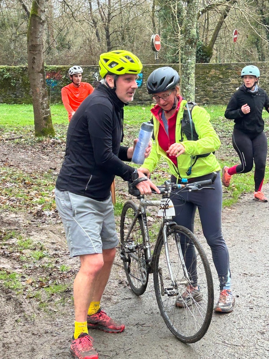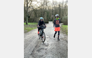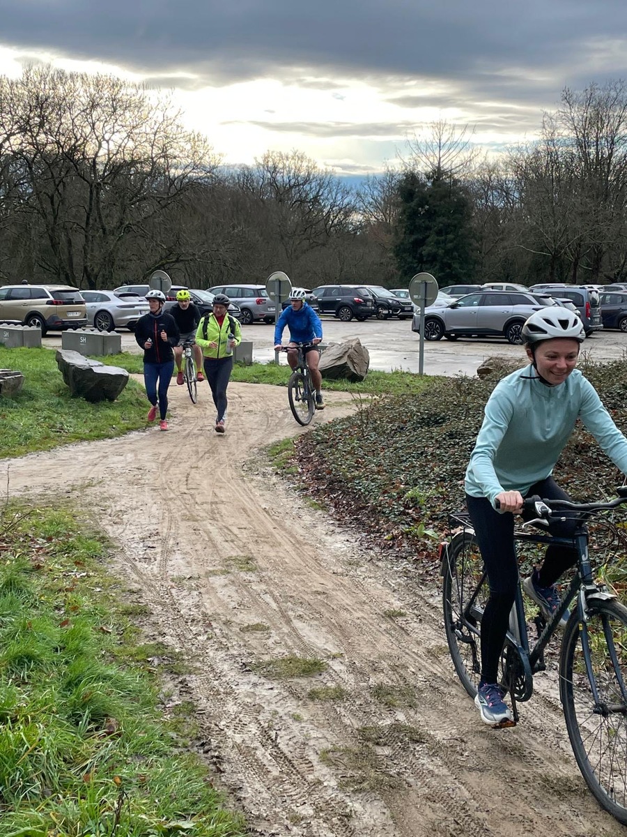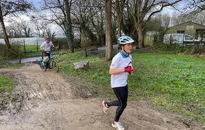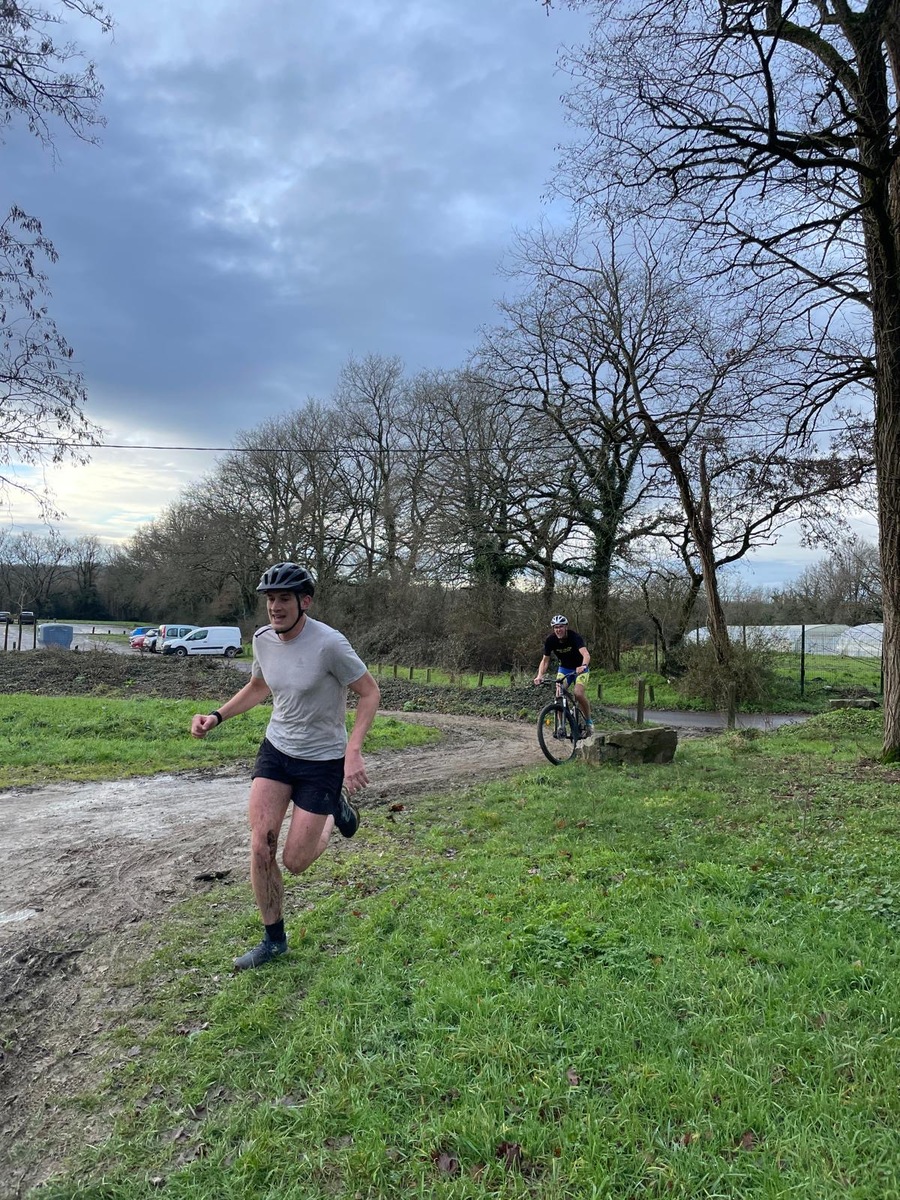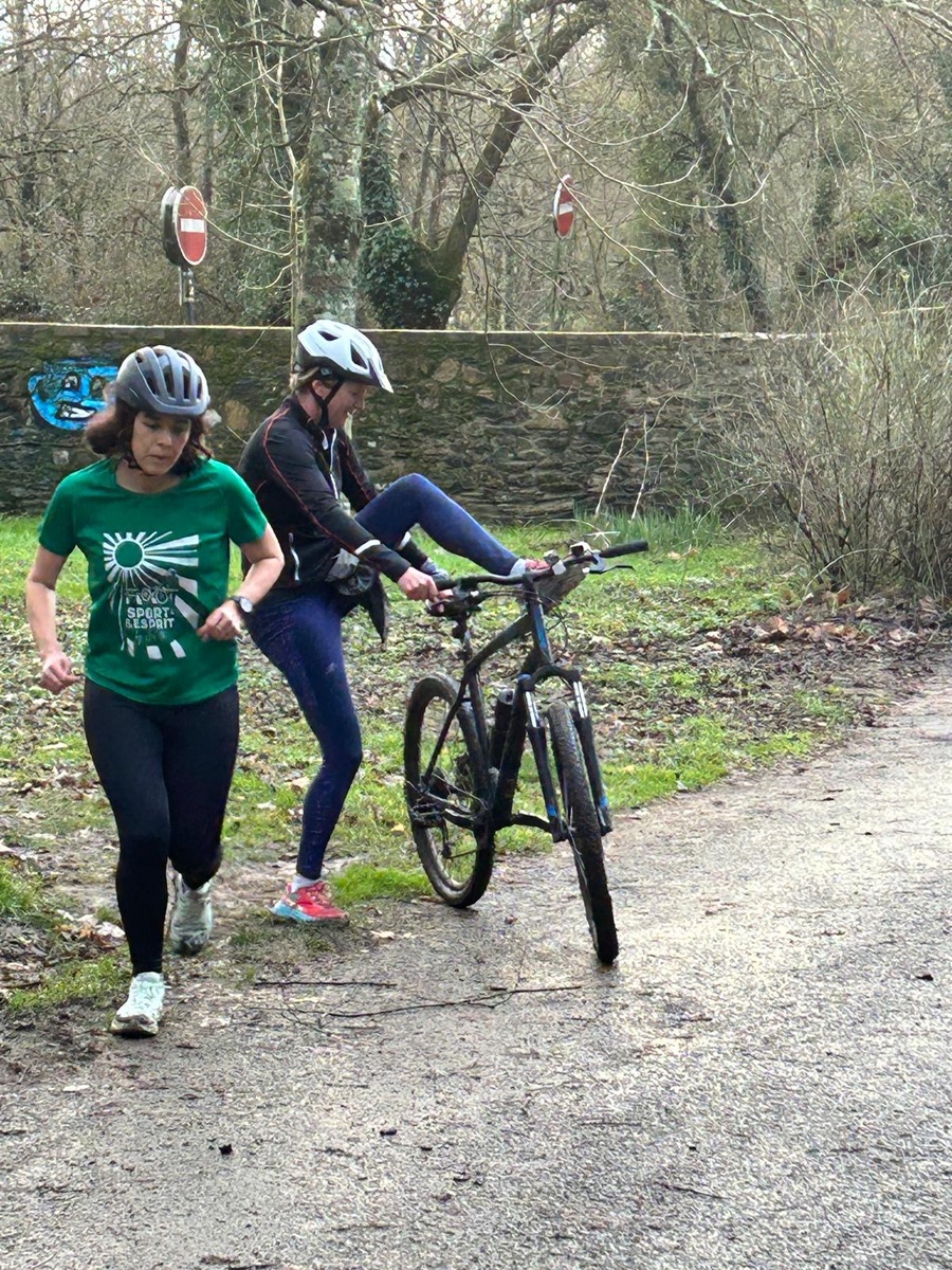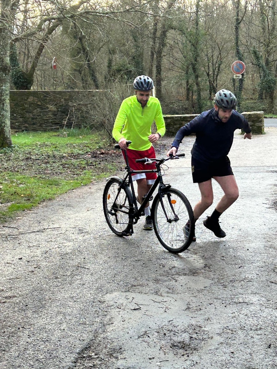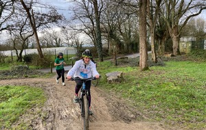 Ce Dimanche 18 Janvier la 11° Édition du Run and Bike Découverte s'est tenue dans le magnifique parc de la Gournerie a Saint Herblain , aprés une année d'interruption suite aux importants travaux conduits sur le site , cette édition était dédiée a la solidarité et a la pratique du sport Responsable . En effet , le Saint Herblain Triathlon avait décidé de promouvoir la pratique sportive responsable en s'associant avec l'association Supporterre pour sensibiliser les participants en organisant une collecte d'équipements sportifs plus utilisés afin de leur donner une seconde vie et favoriser l'economie circulaire ; une animation avec l'étonnante Juiscyclette a permis aux participants volontaires de fabriquer leur jus de fuits sans empreinte carbone a la force de leurs mollets . Sous une météo plutot douce pour la saison , les 58 équipes participantes ont pu bénéficier d'un echauffement tonique organisé par les équipiers SHT avant de s'elancer sur le circuit de 5km tracé autour du Parc sous le starter de Marine Duméril , adjointe aux Sports a la Ville de Saint Herblain . 1 , 2 ou 3 tours , chaque équipe avait le choix de son parcours pour tester sa condition physique ou découvrir le plaisir d'enchainer Vélo et Course a pied .