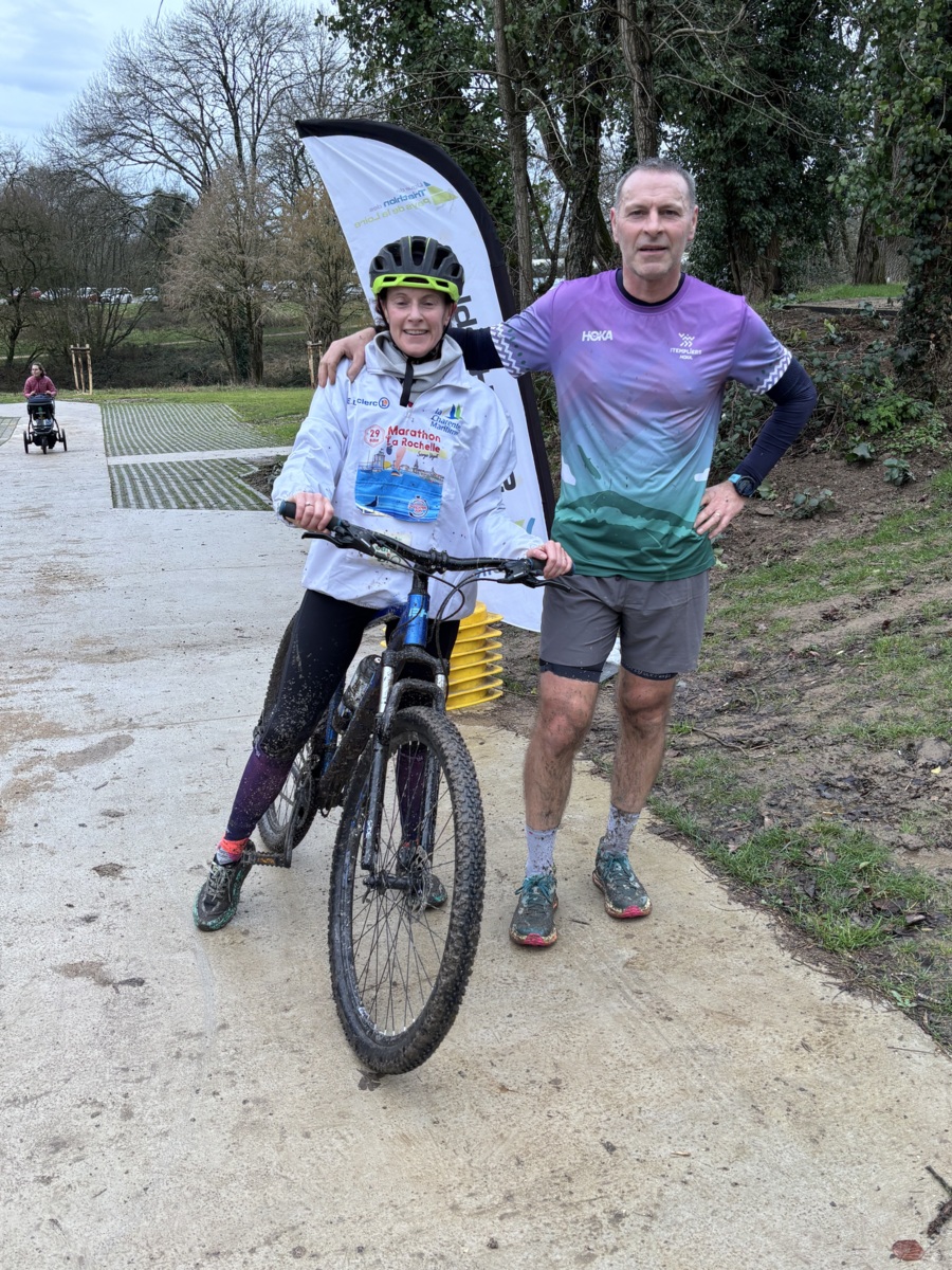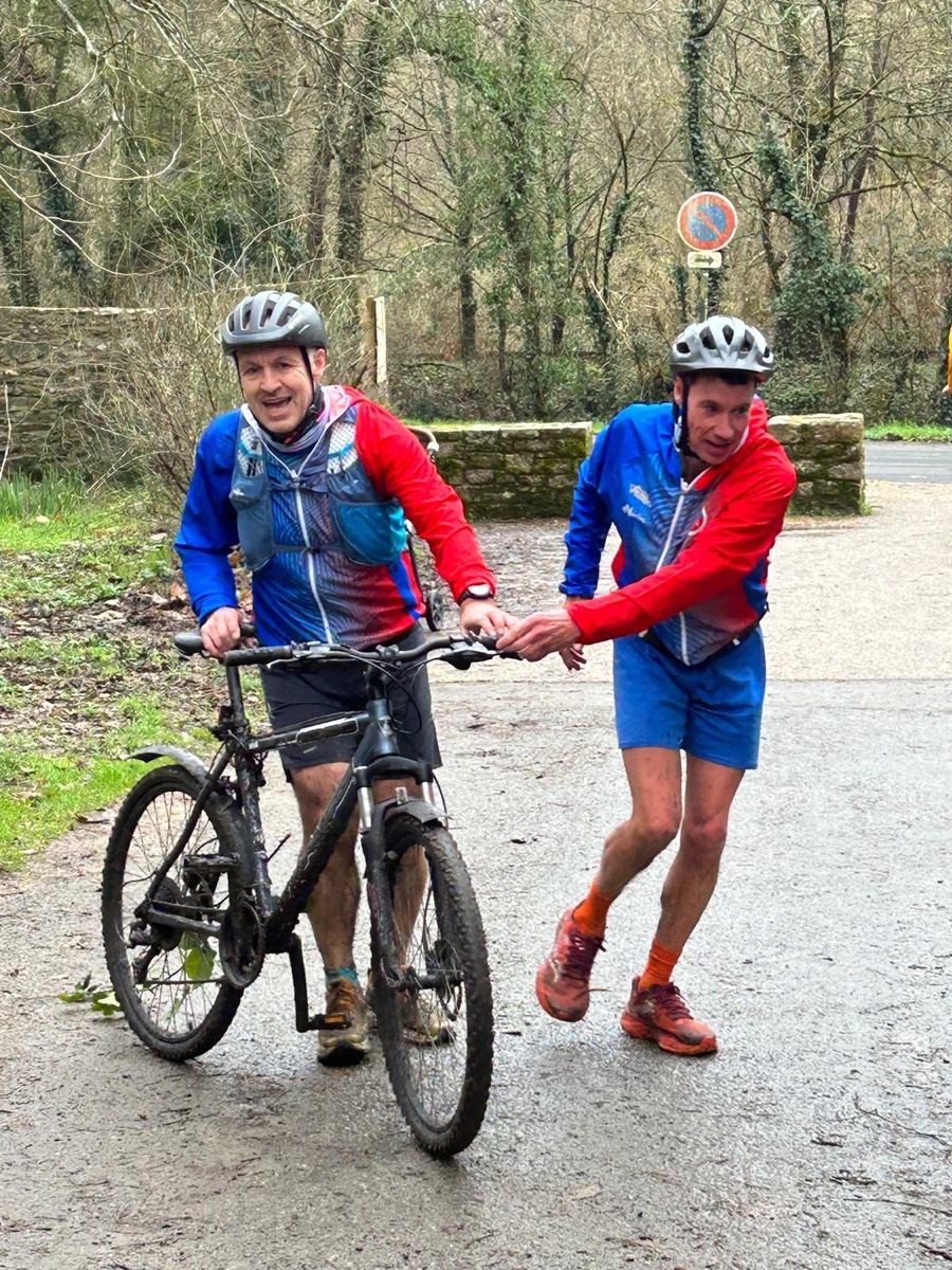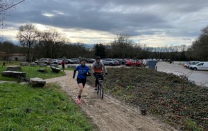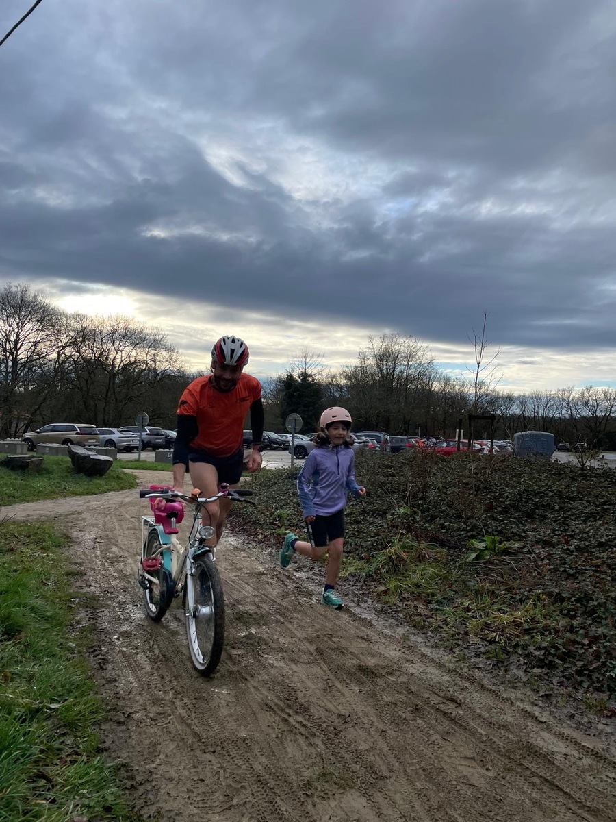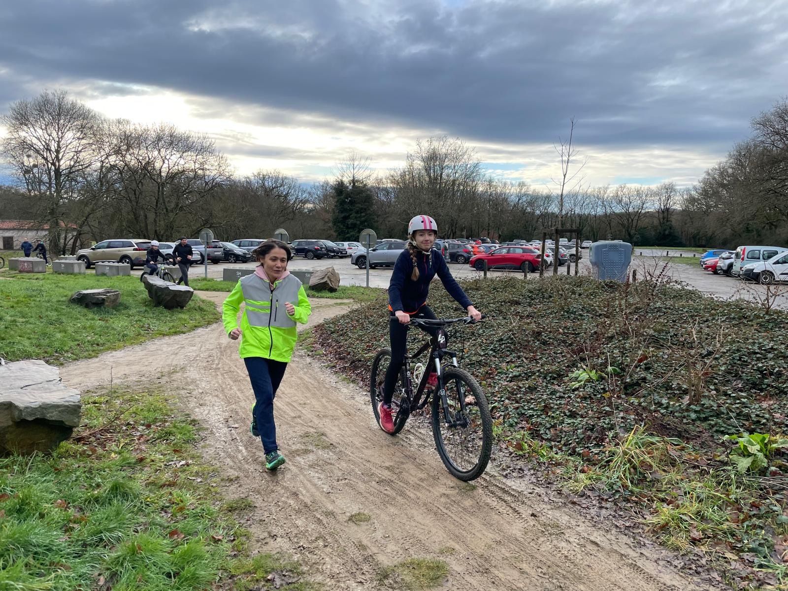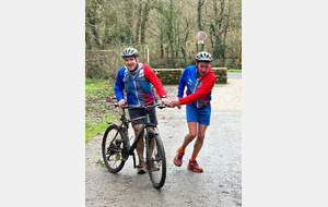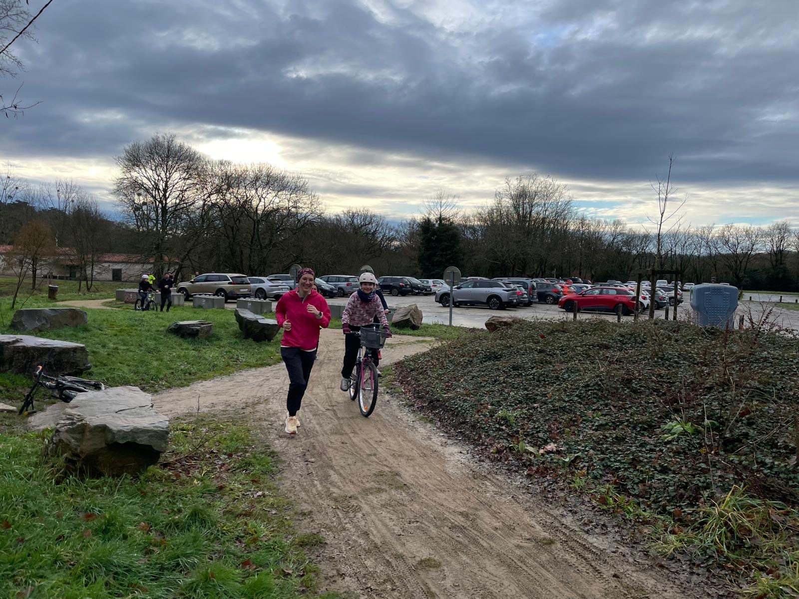 Ce Dimanche 18 Janvier la 11° Édition du Run and Bike Découverte s'est tenue dans le magnifique parc de la Gournerie a Saint Herblain , aprés une année d'interruption suite aux importants travaux conduits sur le site , cette édition était dédiée a la solidarité et a la pratique du sport Responsable . En effet , le Saint Herblain Triathlon avait décidé de promouvoir la pratique sportive responsable en s'associant avec l'association Supporterre pour sensibiliser les participants en organisant une collecte d'équipements sportifs plus utilisés afin de leur donner une seconde vie et favoriser l'economie circulaire ; une animation avec l'étonnante Juiscyclette a permis aux participants volontaires de fabriquer leur jus de fuits sans empreinte carbone a la force de leurs mollets . Sous une météo plutot douce pour la saison , les 58 équipes participantes ont pu bénéficier d'un echauffement tonique organisé par les équipiers SHT avant de s'elancer sur le circuit de 5km tracé autour du Parc sous le starter de Marine Duméril , adjointe aux Sports a la Ville de Saint Herblain . 1 , 2 ou 3 tours , chaque équipe avait le choix de son parcours pour tester sa condition physique ou découvrir le plaisir d'enchainer Vélo et Course a pied .