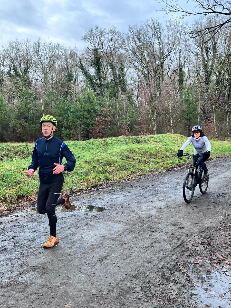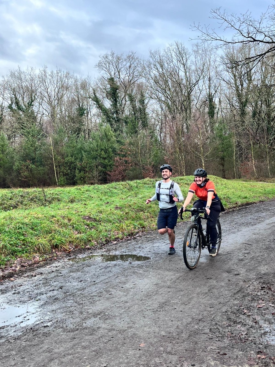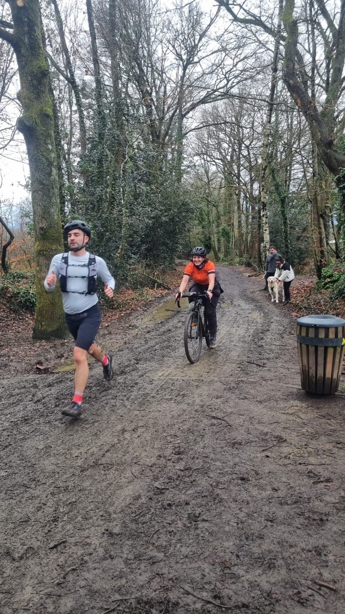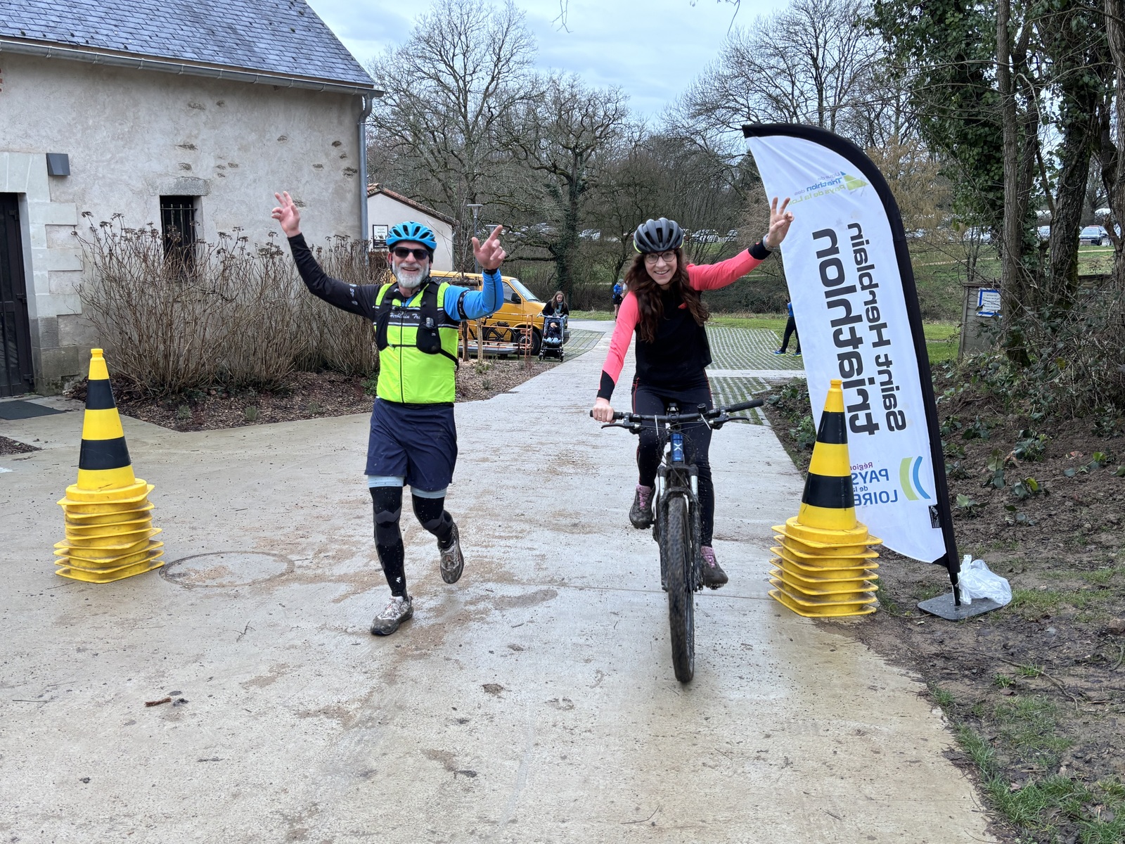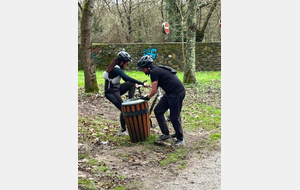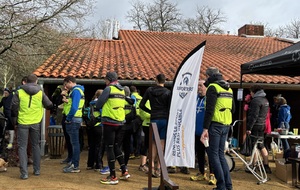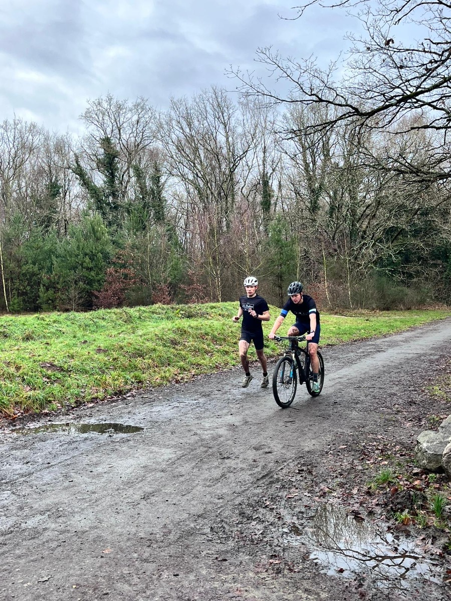 Ce Dimanche 18 Janvier la 11° Édition du Run and Bike Découverte s'est tenue dans le magnifique parc de la Gournerie a Saint Herblain , aprés une année d'interruption suite aux importants travaux conduits sur le site , cette édition était dédiée a la solidarité et a la pratique du sport Responsable . En effet , le Saint Herblain Triathlon avait décidé de promouvoir la pratique sportive responsable en s'associant avec l'association Supporterre pour sensibiliser les participants en organisant une collecte d'équipements sportifs plus utilisés afin de leur donner une seconde vie et favoriser l'economie circulaire ; une animation avec l'étonnante Juiscyclette a permis aux participants volontaires de fabriquer leur jus de fuits sans empreinte carbone a la force de leurs mollets . Sous une météo plutot douce pour la saison , les 58 équipes participantes ont pu bénéficier d'un echauffement tonique organisé par les équipiers SHT avant de s'elancer sur le circuit de 5km tracé autour du Parc sous le starter de Marine Duméril , adjointe aux Sports a la Ville de Saint Herblain . 1 , 2 ou 3 tours , chaque équipe avait le choix de son parcours pour tester sa condition physique ou découvrir le plaisir d'enchainer Vélo et Course a pied .