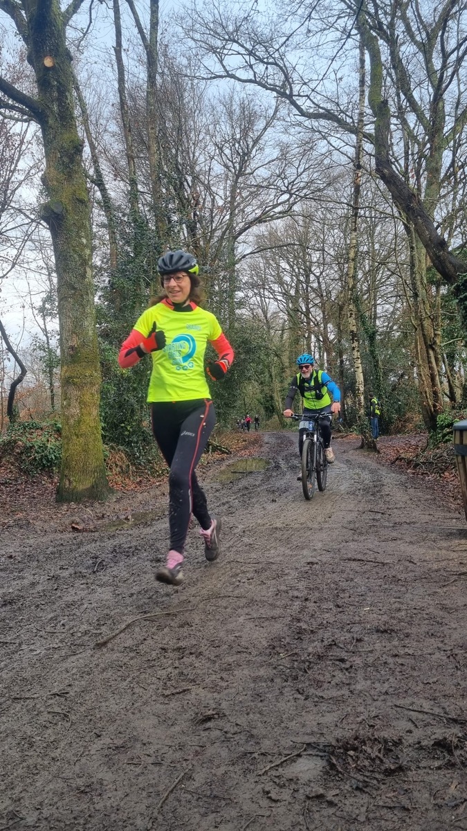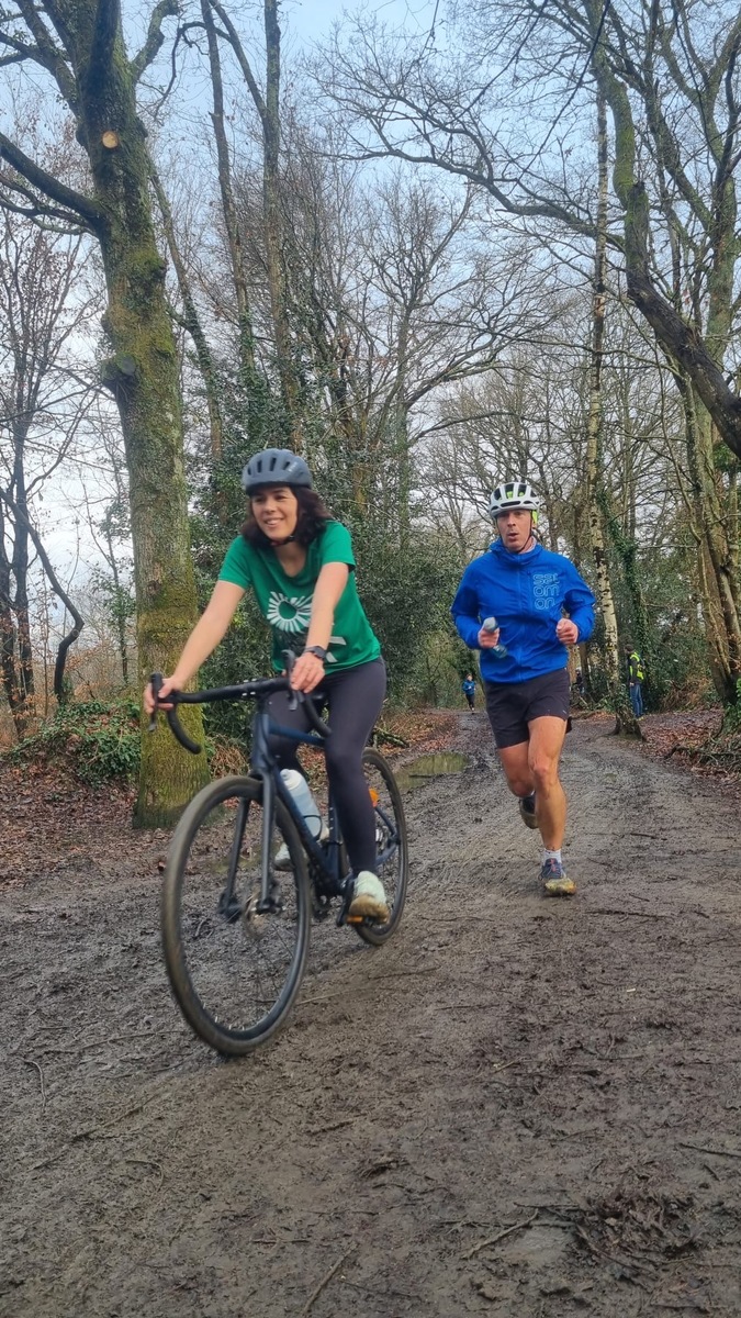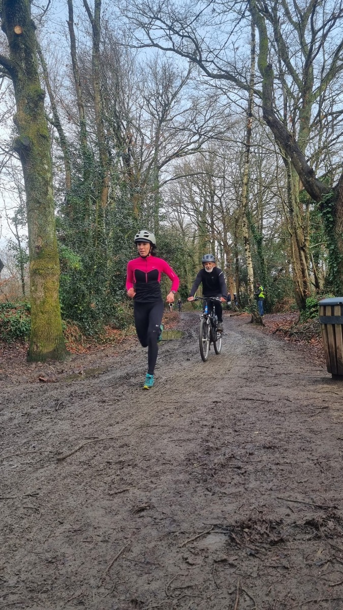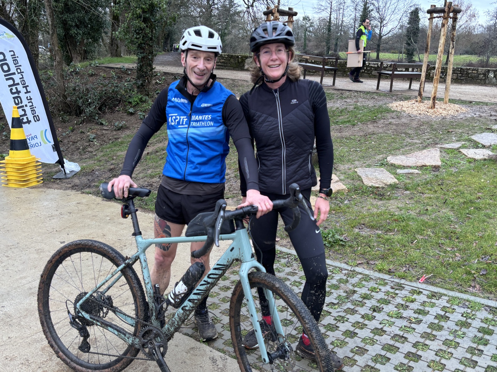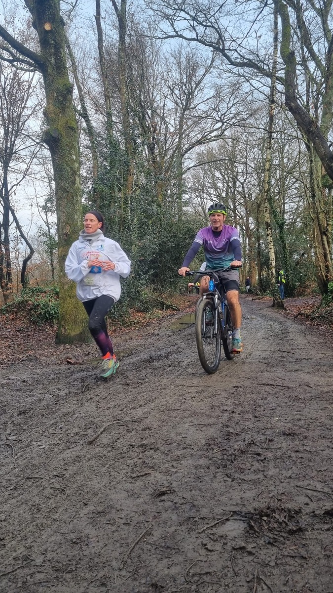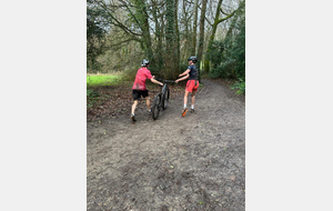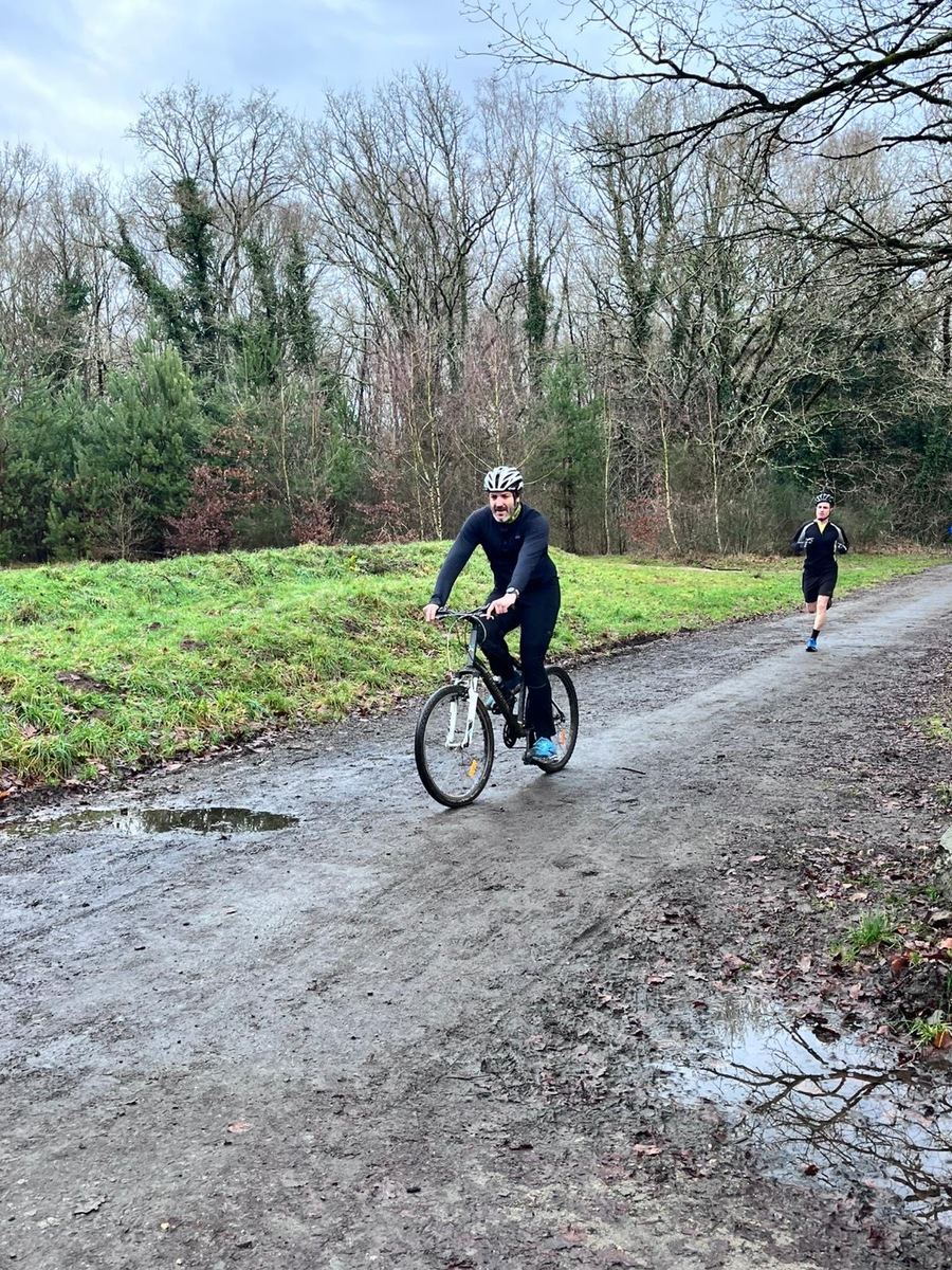 Ce Dimanche 18 Janvier la 11° Édition du Run and Bike Découverte s'est tenue dans le magnifique parc de la Gournerie a Saint Herblain , aprés une année d'interruption suite aux importants travaux conduits sur le site , cette édition était dédiée a la solidarité et a la pratique du sport Responsable . En effet , le Saint Herblain Triathlon avait décidé de promouvoir la pratique sportive responsable en s'associant avec l'association Supporterre pour sensibiliser les participants en organisant une collecte d'équipements sportifs plus utilisés afin de leur donner une seconde vie et favoriser l'economie circulaire ; une animation avec l'étonnante Juiscyclette a permis aux participants volontaires de fabriquer leur jus de fuits sans empreinte carbone a la force de leurs mollets . Sous une météo plutot douce pour la saison , les 58 équipes participantes ont pu bénéficier d'un echauffement tonique organisé par les équipiers SHT avant de s'elancer sur le circuit de 5km tracé autour du Parc sous le starter de Marine Duméril , adjointe aux Sports a la Ville de Saint Herblain . 1 , 2 ou 3 tours , chaque équipe avait le choix de son parcours pour tester sa condition physique ou découvrir le plaisir d'enchainer Vélo et Course a pied .