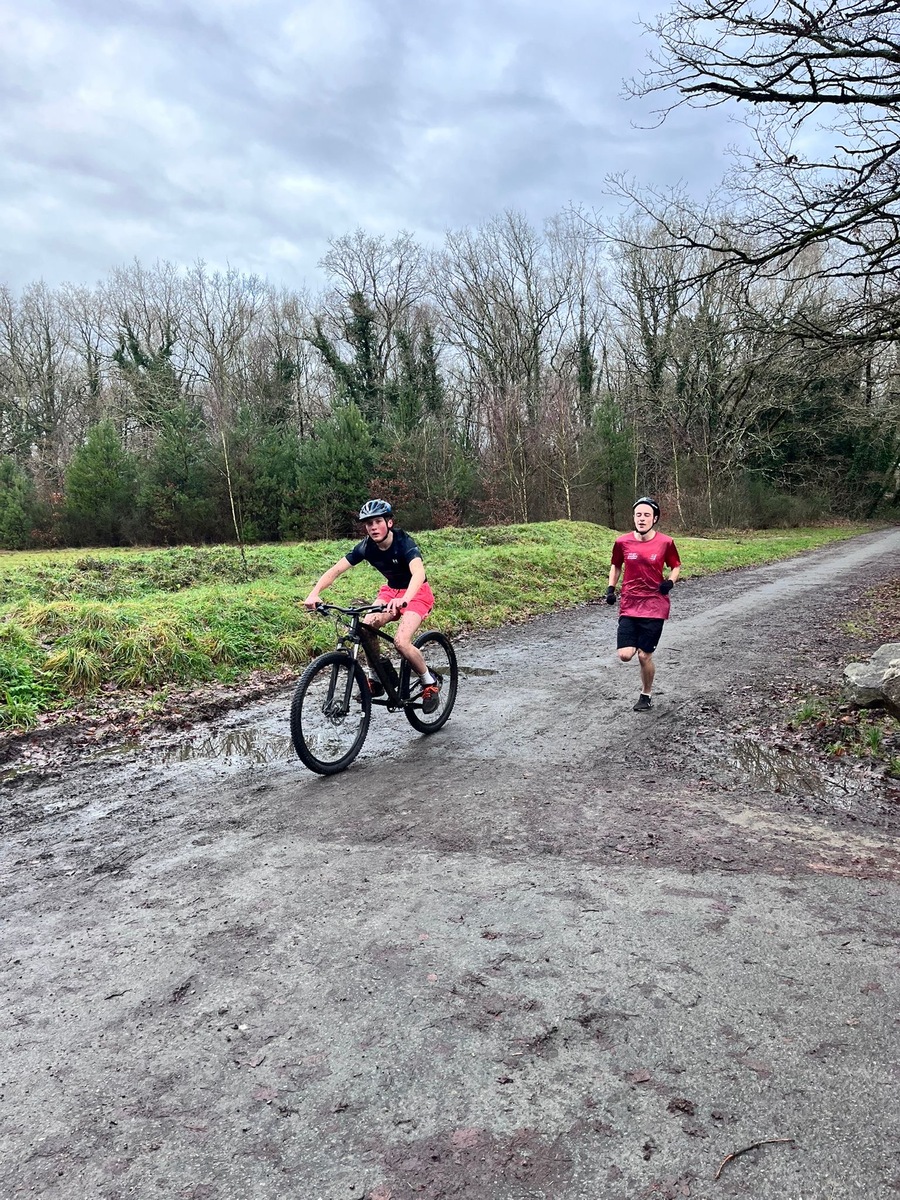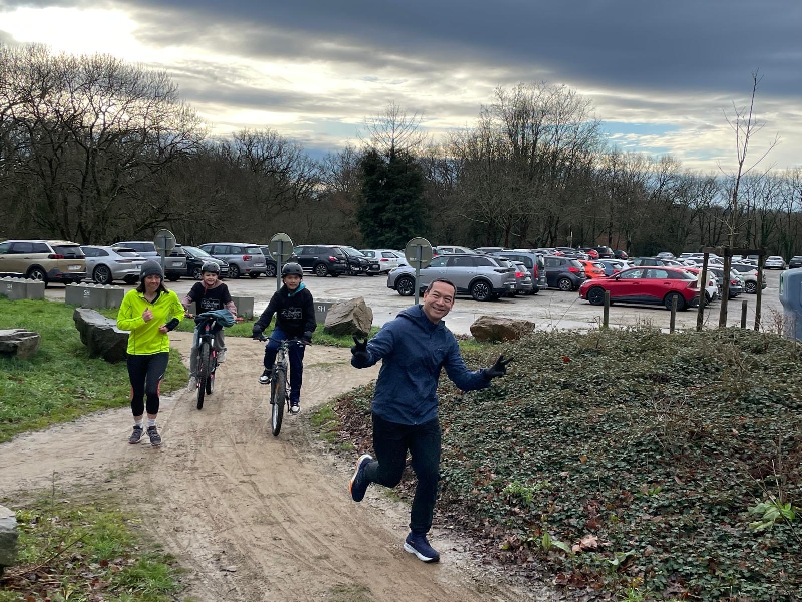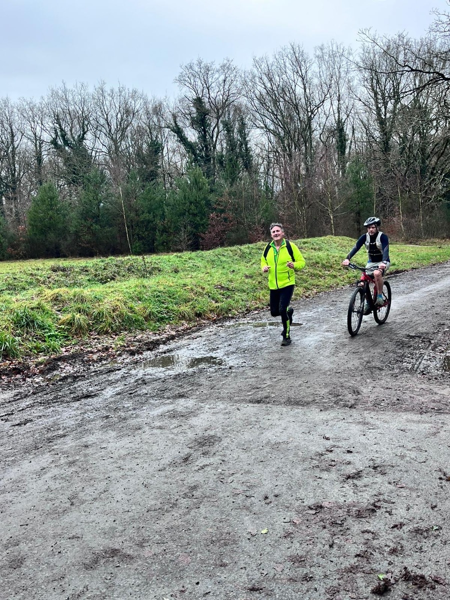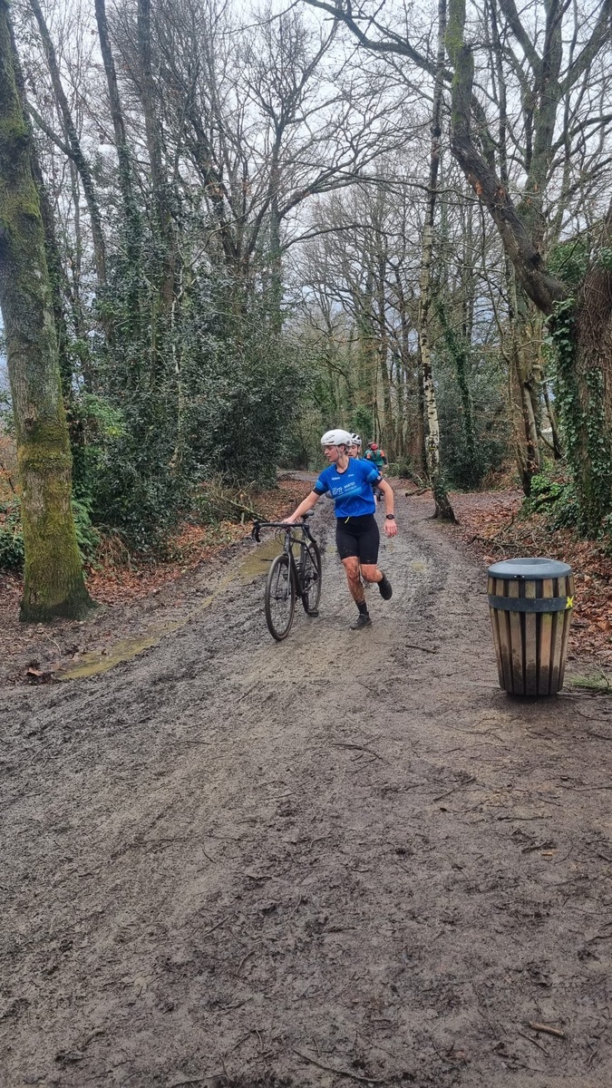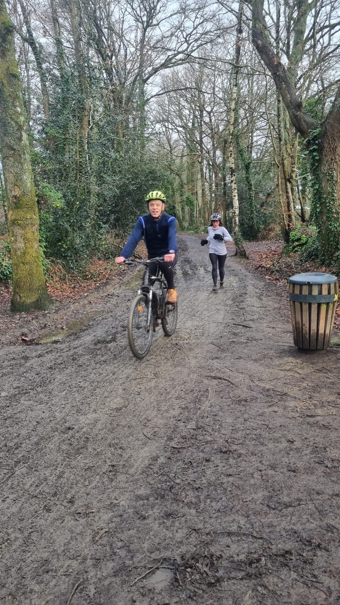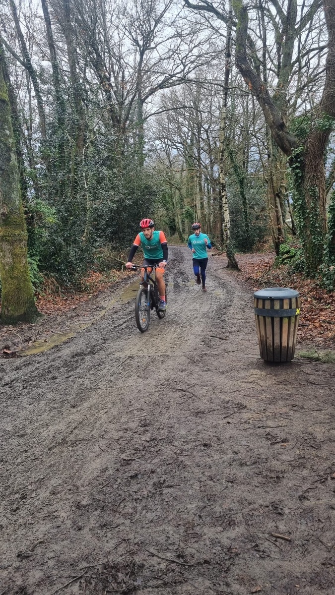 Ce Dimanche 18 Janvier la 11° Édition du Run and Bike Découverte s'est tenue dans le magnifique parc de la Gournerie a Saint Herblain , aprés une année d'interruption suite aux importants travaux conduits sur le site , cette édition était dédiée a la solidarité et a la pratique du sport Responsable . En effet , le Saint Herblain Triathlon avait décidé de promouvoir la pratique sportive responsable en s'associant avec l'association Supporterre pour sensibiliser les participants en organisant une collecte d'équipements sportifs plus utilisés afin de leur donner une seconde vie et favoriser l'economie circulaire ; une animation avec l'étonnante Juiscyclette a permis aux participants volontaires de fabriquer leur jus de fuits sans empreinte carbone a la force de leurs mollets . Sous une météo plutot douce pour la saison , les 58 équipes participantes ont pu bénéficier d'un echauffement tonique organisé par les équipiers SHT avant de s'elancer sur le circuit de 5km tracé autour du Parc sous le starter de Marine Duméril , adjointe aux Sports a la Ville de Saint Herblain . 1 , 2 ou 3 tours , chaque équipe avait le choix de son parcours pour tester sa condition physique ou découvrir le plaisir d'enchainer Vélo et Course a pied .