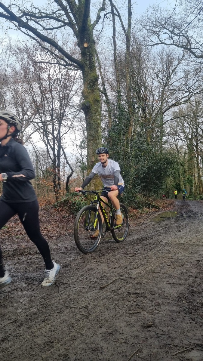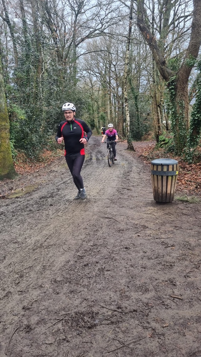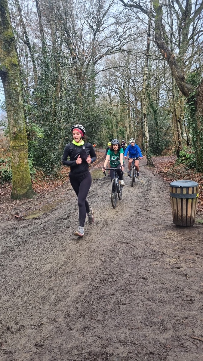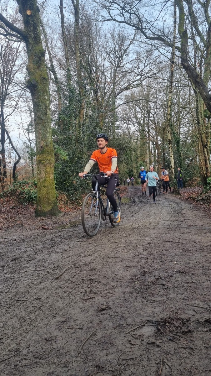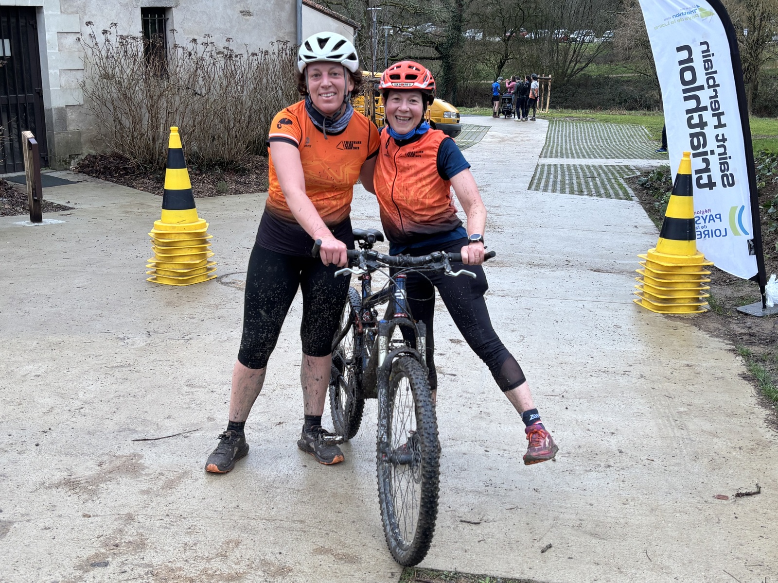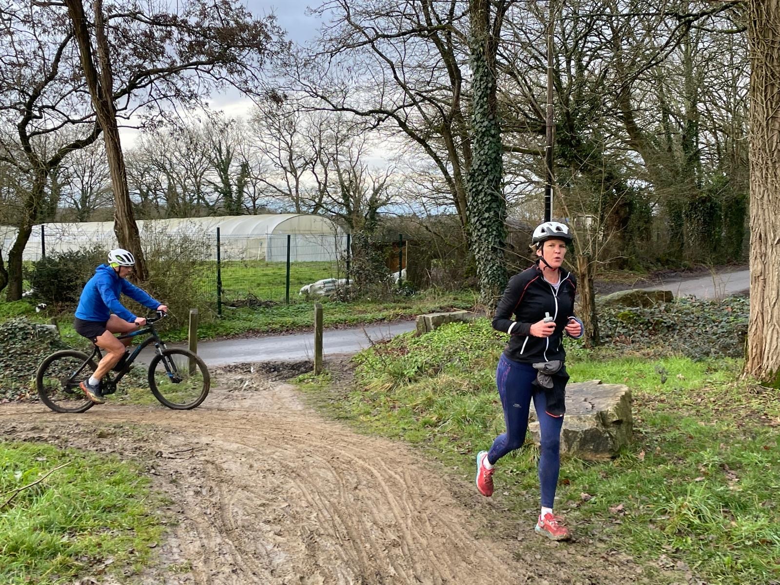 Ce Dimanche 18 Janvier la 11° Édition du Run and Bike Découverte s'est tenue dans le magnifique parc de la Gournerie a Saint Herblain , aprés une année d'interruption suite aux importants travaux conduits sur le site , cette édition était dédiée a la solidarité et a la pratique du sport Responsable . En effet , le Saint Herblain Triathlon avait décidé de promouvoir la pratique sportive responsable en s'associant avec l'association Supporterre pour sensibiliser les participants en organisant une collecte d'équipements sportifs plus utilisés afin de leur donner une seconde vie et favoriser l'economie circulaire ; une animation avec l'étonnante Juiscyclette a permis aux participants volontaires de fabriquer leur jus de fuits sans empreinte carbone a la force de leurs mollets . Sous une météo plutot douce pour la saison , les 58 équipes participantes ont pu bénéficier d'un echauffement tonique organisé par les équipiers SHT avant de s'elancer sur le circuit de 5km tracé autour du Parc sous le starter de Marine Duméril , adjointe aux Sports a la Ville de Saint Herblain . 1 , 2 ou 3 tours , chaque équipe avait le choix de son parcours pour tester sa condition physique ou découvrir le plaisir d'enchainer Vélo et Course a pied .