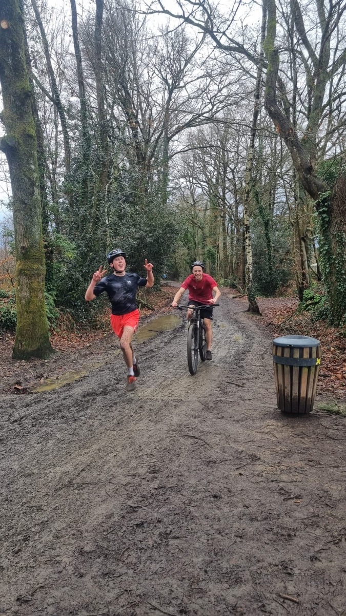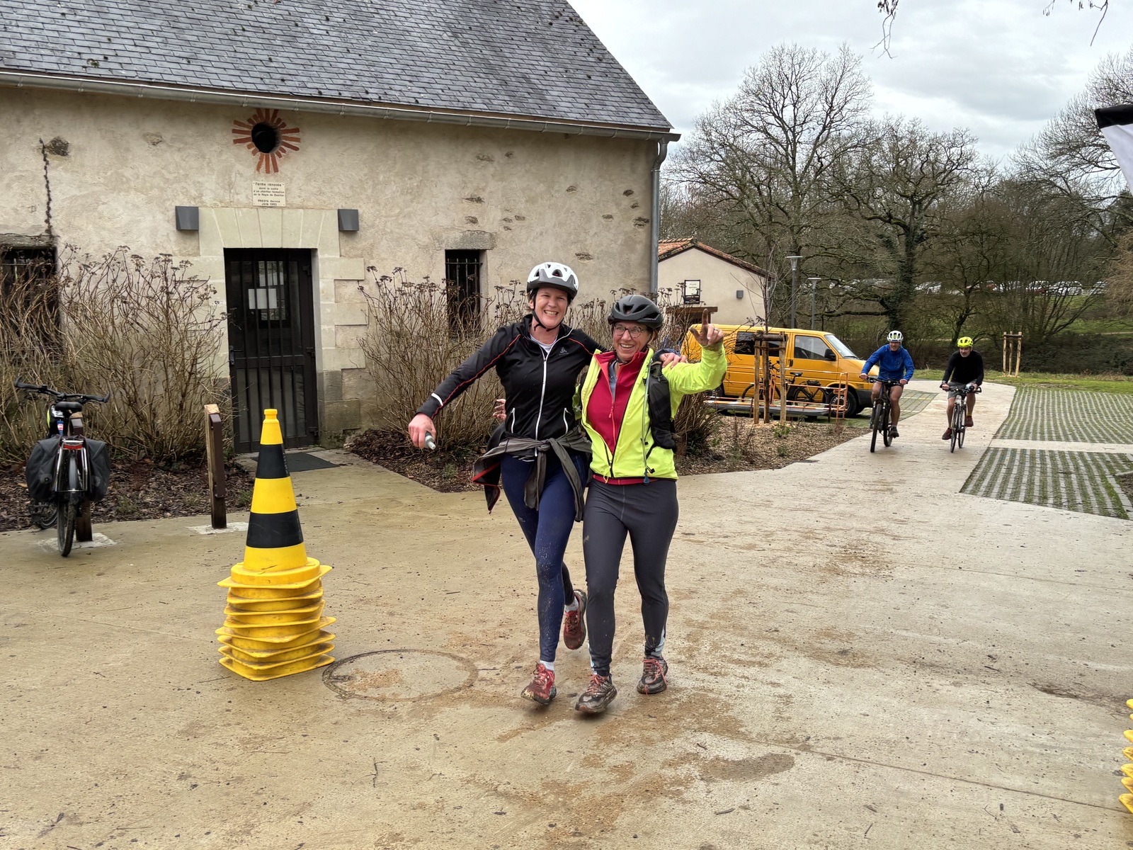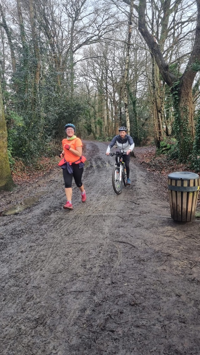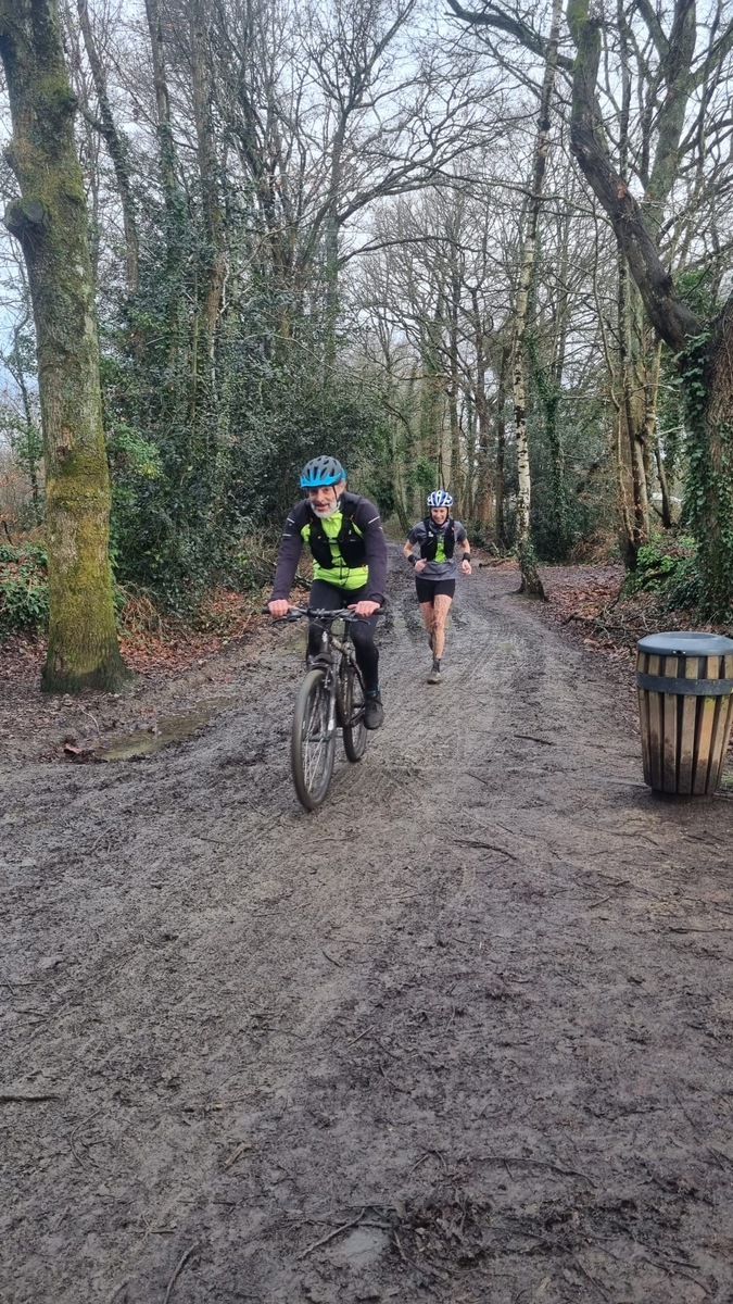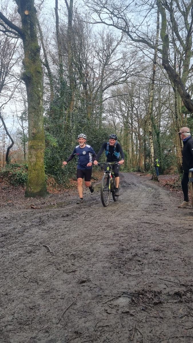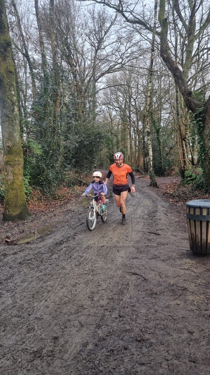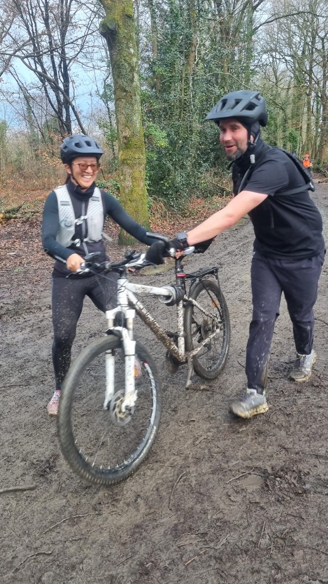 Ce Dimanche 18 Janvier la 11° Édition du Run and Bike Découverte s'est tenue dans le magnifique parc de la Gournerie a Saint Herblain , aprés une année d'interruption suite aux importants travaux conduits sur le site , cette édition était dédiée a la solidarité et a la pratique du sport Responsable . En effet , le Saint Herblain Triathlon avait décidé de promouvoir la pratique sportive responsable en s'associant avec l'association Supporterre pour sensibiliser les participants en organisant une collecte d'équipements sportifs plus utilisés afin de leur donner une seconde vie et favoriser l'economie circulaire ; une animation avec l'étonnante Juiscyclette a permis aux participants volontaires de fabriquer leur jus de fuits sans empreinte carbone a la force de leurs mollets . Sous une météo plutot douce pour la saison , les 58 équipes participantes ont pu bénéficier d'un echauffement tonique organisé par les équipiers SHT avant de s'elancer sur le circuit de 5km tracé autour du Parc sous le starter de Marine Duméril , adjointe aux Sports a la Ville de Saint Herblain . 1 , 2 ou 3 tours , chaque équipe avait le choix de son parcours pour tester sa condition physique ou découvrir le plaisir d'enchainer Vélo et Course a pied .