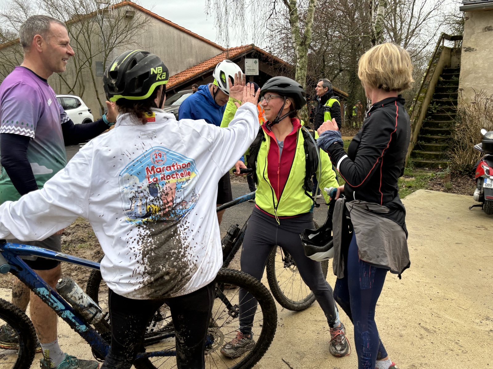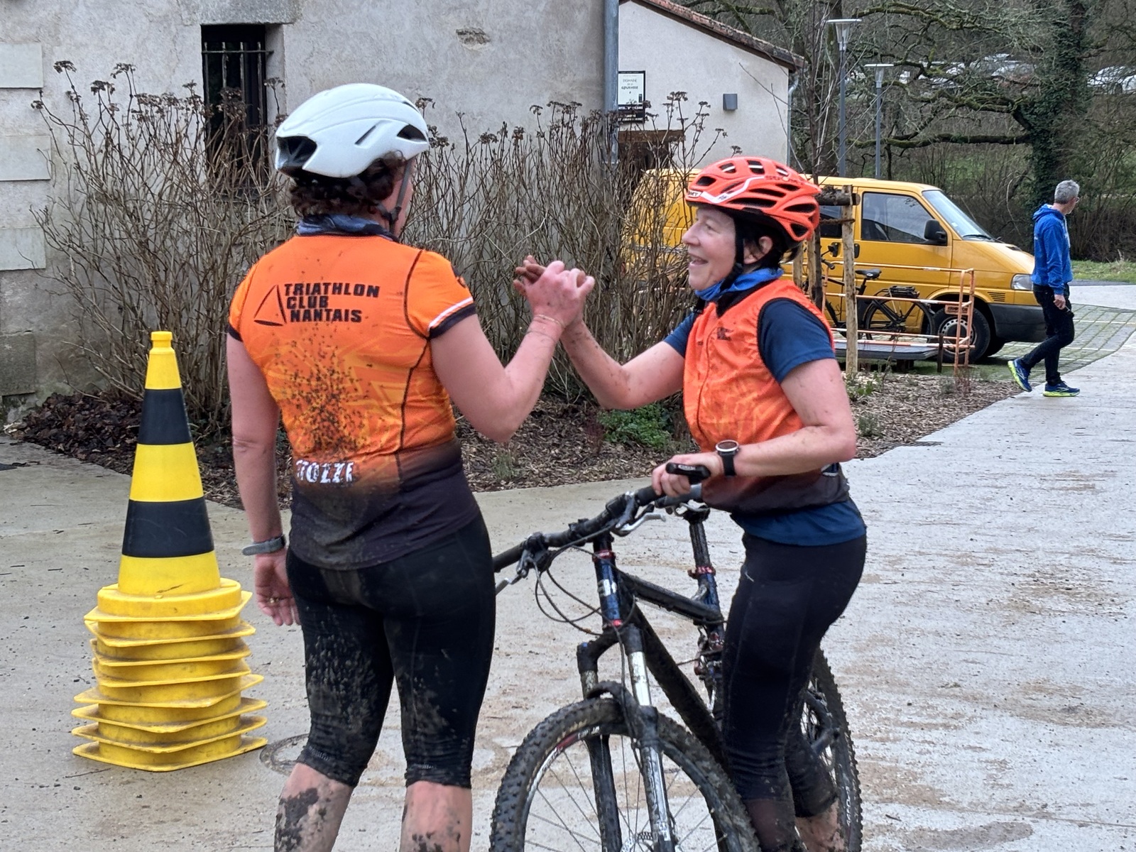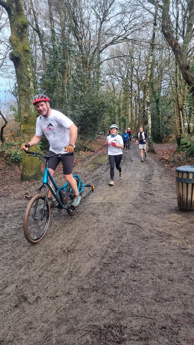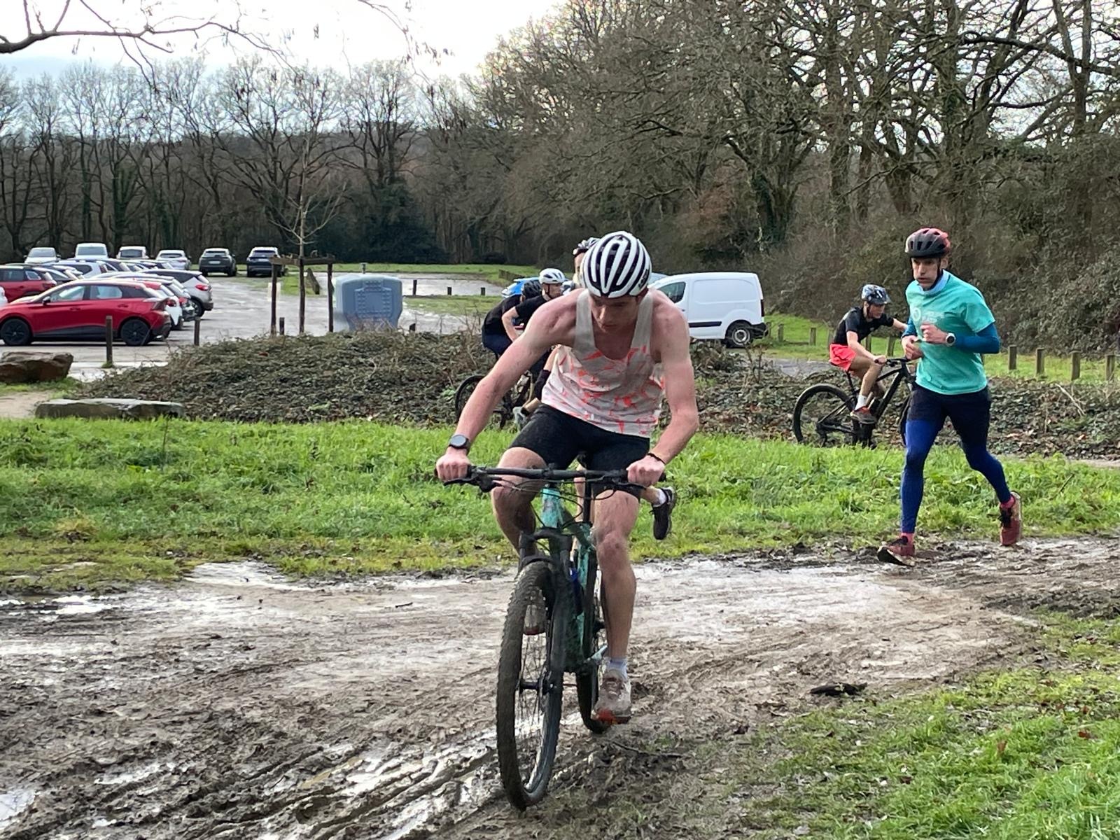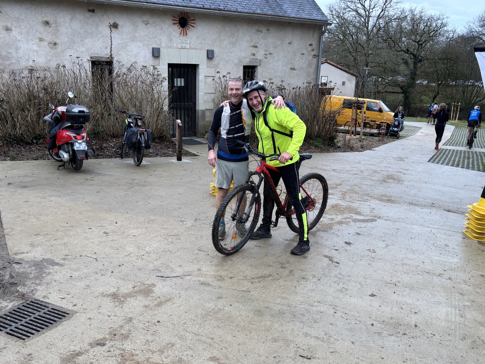 Ce Dimanche 18 Janvier la 11° Édition du Run and Bike Découverte s'est tenue dans le magnifique parc de la Gournerie a Saint Herblain , aprés une année d'interruption suite aux importants travaux conduits sur le site , cette édition était dédiée a la solidarité et a la pratique du sport Responsable . En effet , le Saint Herblain Triathlon avait décidé de promouvoir la pratique sportive responsable en s'associant avec l'association Supporterre pour sensibiliser les participants en organisant une collecte d'équipements sportifs plus utilisés afin de leur donner une seconde vie et favoriser l'economie circulaire ; une animation avec l'étonnante Juiscyclette a permis aux participants volontaires de fabriquer leur jus de fuits sans empreinte carbone a la force de leurs mollets . Sous une météo plutot douce pour la saison , les 58 équipes participantes ont pu bénéficier d'un echauffement tonique organisé par les équipiers SHT avant de s'elancer sur le circuit de 5km tracé autour du Parc sous le starter de Marine Duméril , adjointe aux Sports a la Ville de Saint Herblain . 1 , 2 ou 3 tours , chaque équipe avait le choix de son parcours pour tester sa condition physique ou découvrir le plaisir d'enchainer Vélo et Course a pied .