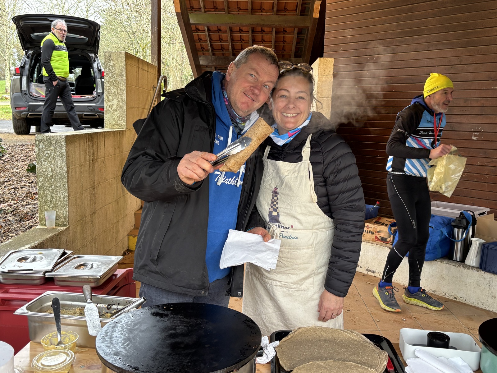 Aprés un ravitaillement bienvenu ou une attention particuliére a été portée sur la non utilisation de contenants a usage unique . les participants ont pu se régaler avec les galettes saucisses et les crépes préparées par les équipiers SHT et partager des bons moments en se donnant rdv pour la prochaine édition .