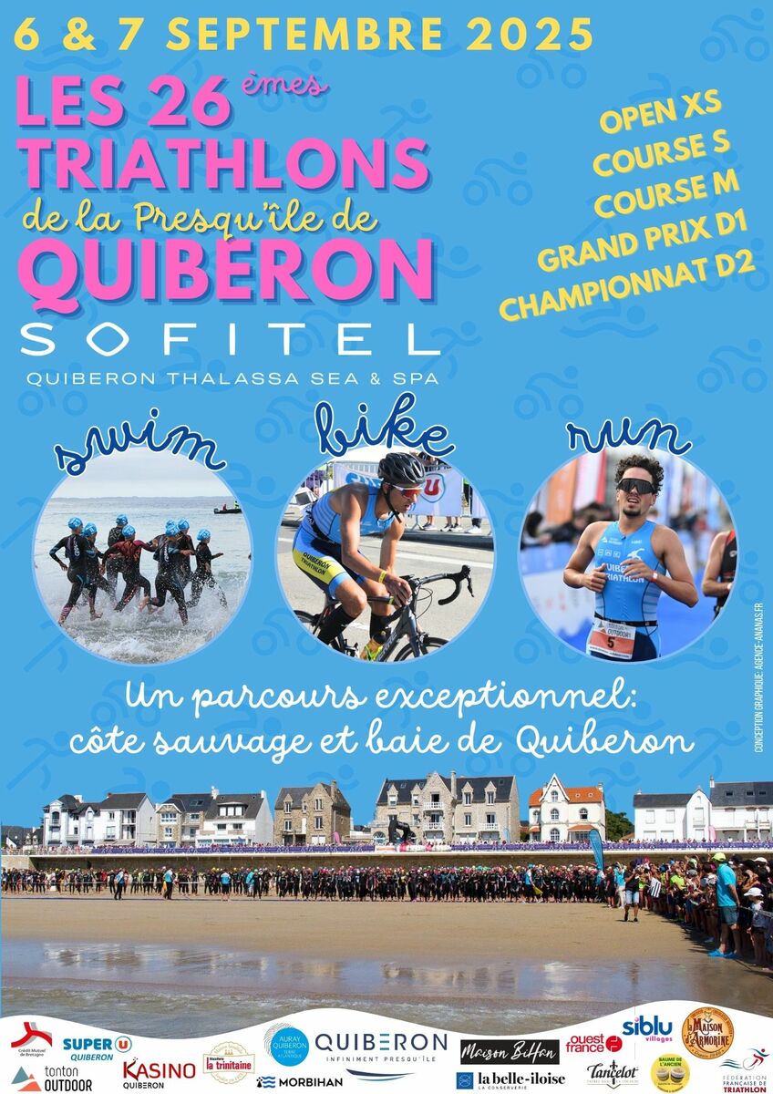 le week end prochain ce sera le rdv de Quiberon avec ses différents formats Triathlon XS , S , M ; mais le programme est dense a proximité .