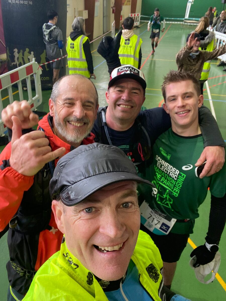 Ce Dimanche 24 Janvier plusieurs équipiers SHT étaient engagés sur les différents formats du Trail des Spéciales a Trélliéres marqués par une météo tres humide . En effet aprés les pluies diluviennes de la semaine , les organisateurs ont du modifier quelques passages devenus impraticables mais ce sont plus de 1000 participants qui se sont élancés pour une séance d'Aqua Trail fraiche . Sur le 35 km , Thierry Chauvin termine premier de sa catégorie V5 aprés un départ a la frontale . Sur le format 25 km , Danielle Depouet termine également premiére de sa catégorie V5 . Stéphane Métayer , Sébastien Lafosse et Gilles Dx ont choisi de faire le parcours en mode sortie longue pour préparer les échéances prochaines . Sur le 13 km Franck Tougeron , Didier Busquetta et Edouard Quequer ont porté haut les couleurs club . A noter le soleil bienvenu qui a accompagné les finishers pour préparer l'after . Encore une édition sympa et aquatique ;