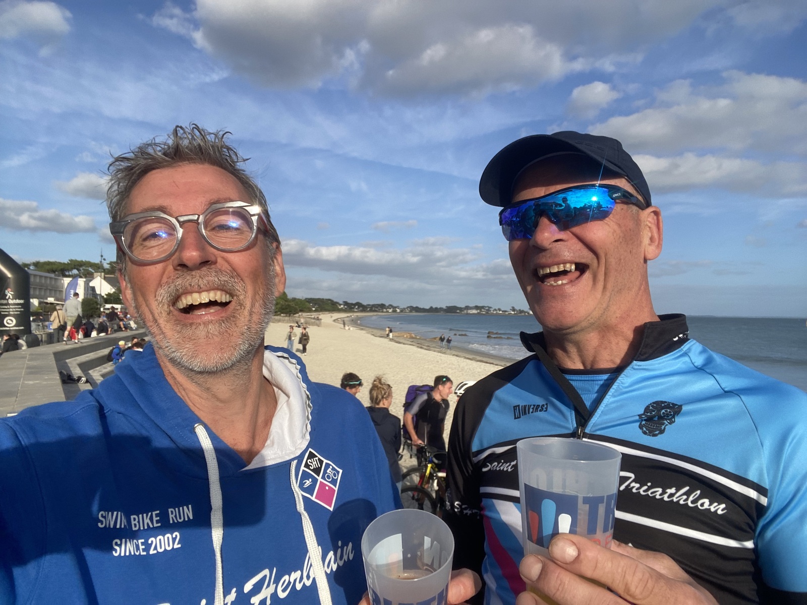 " Il n’y a pas que les menhirs qui s’alignent à carnac, les vaillants membres du sht étaient aussi présents ce dimanche pour une des dernières épreuves triple effort de l’année. Et quelle journée bretonne : ciel bleu, mer calme et vent assez faible comparativement à la veille. Natation mouvementée et revêtement toujours moyen à vélo mais qui permettait d’atteindre de belles pointes de vitesse avec le vent dans le dos! Cap qui consistait en 4 tours en ligne sur le remblai ce qui a permis de s’encourager mutuellement avec jacques catherine clément et moi