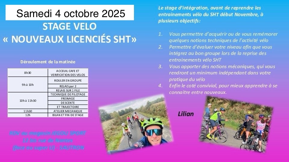 Stage découverte Vélo Nouveaux adhérents 2025 -2026