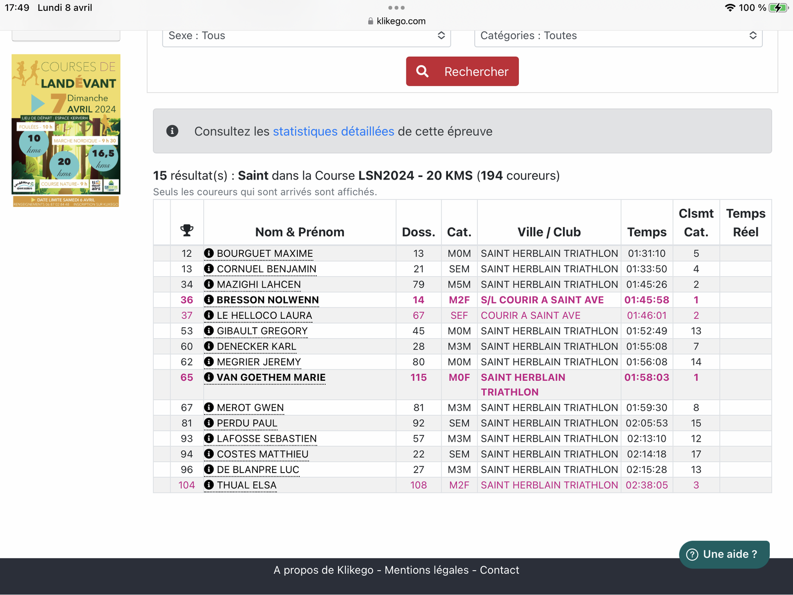 Victoire de Baptiste a Ploemeur et SR Pornic