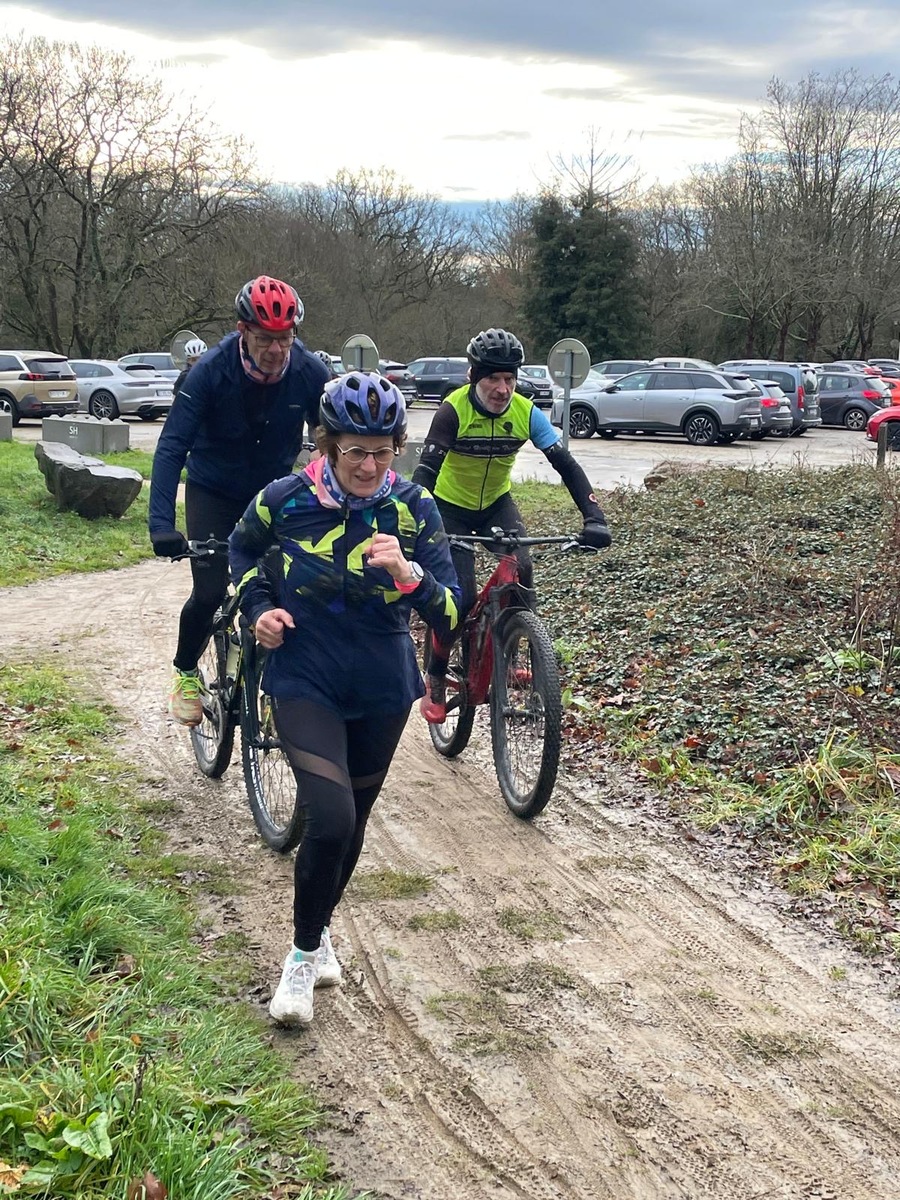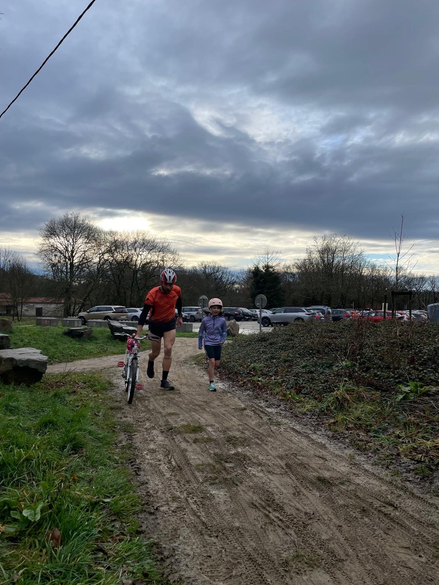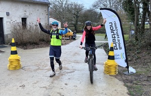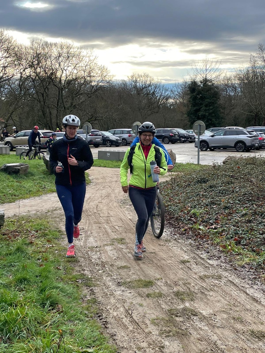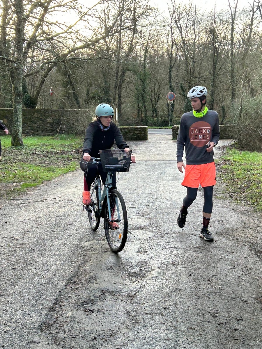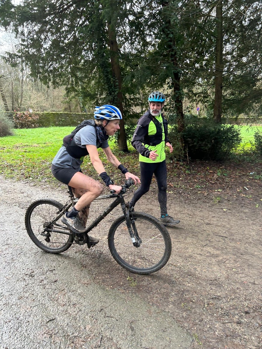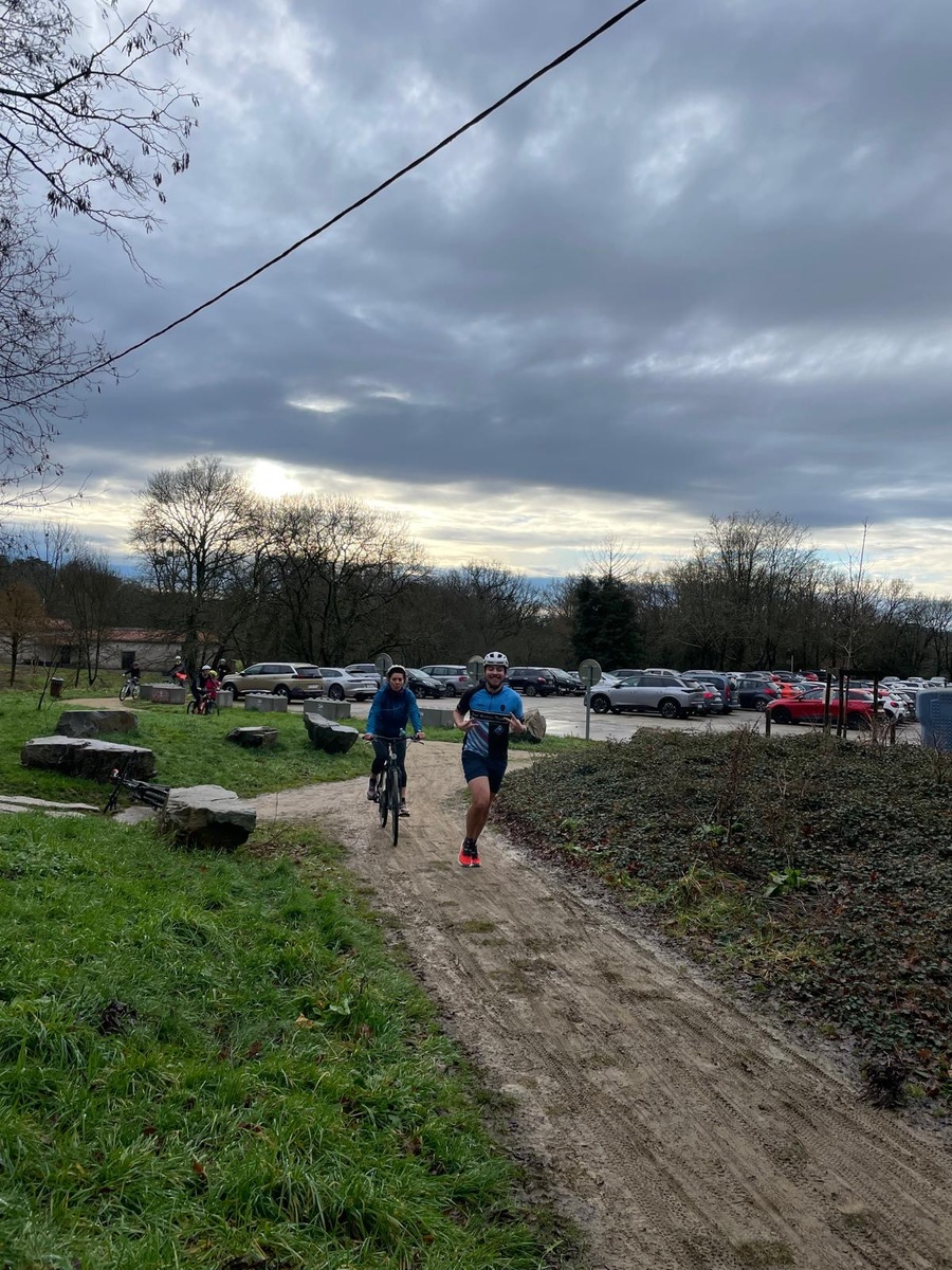 Ce Dimanche 18 Janvier la 11° Édition du Run and Bike Découverte s'est tenue dans le magnifique parc de la Gournerie a Saint Herblain , aprés une année d'interruption suite aux importants travaux conduits sur le site , cette édition était dédiée a la solidarité et a la pratique du sport Responsable . En effet , le Saint Herblain Triathlon avait décidé de promouvoir la pratique sportive responsable en s'associant avec l'association Supporterre pour sensibiliser les participants en organisant une collecte d'équipements sportifs plus utilisés afin de leur donner une seconde vie et favoriser l'economie circulaire ; une animation avec l'étonnante Juiscyclette a permis aux participants volontaires de fabriquer leur jus de fuits sans empreinte carbone a la force de leurs mollets . Sous une météo plutot douce pour la saison , les 58 équipes participantes ont pu bénéficier d'un echauffement tonique organisé par les équipiers SHT avant de s'elancer sur le circuit de 5km tracé autour du Parc sous le starter de Marine Duméril , adjointe aux Sports a la Ville de Saint Herblain . 1 , 2 ou 3 tours , chaque équipe avait le choix de son parcours pour tester sa condition physique ou découvrir le plaisir d'enchainer Vélo et Course a pied .