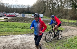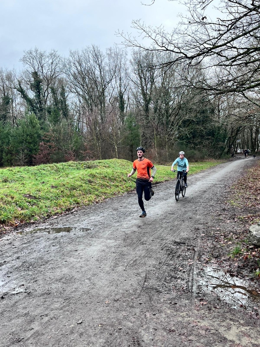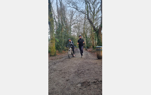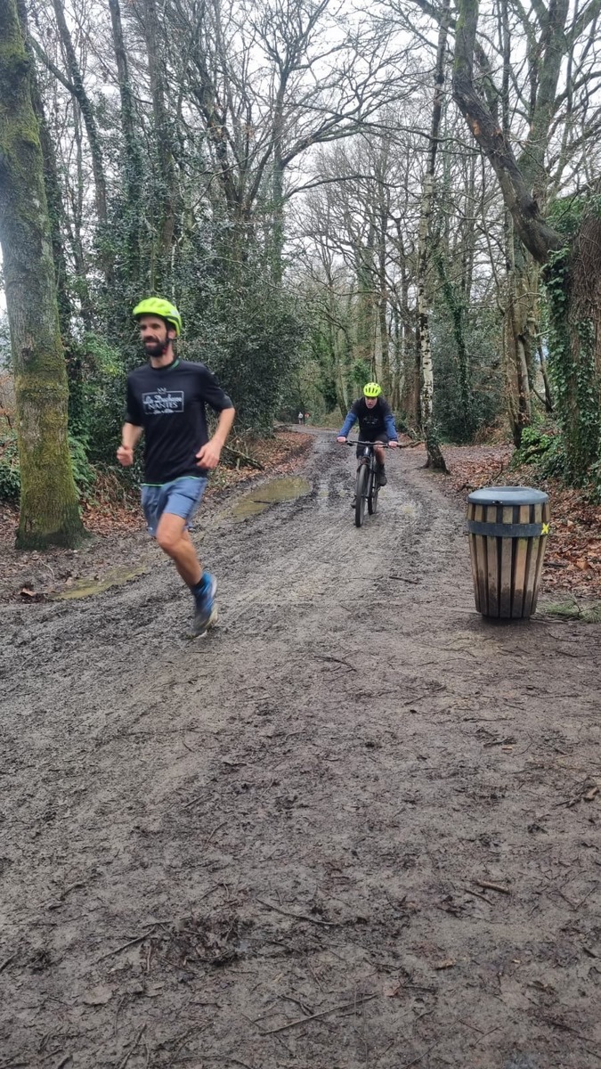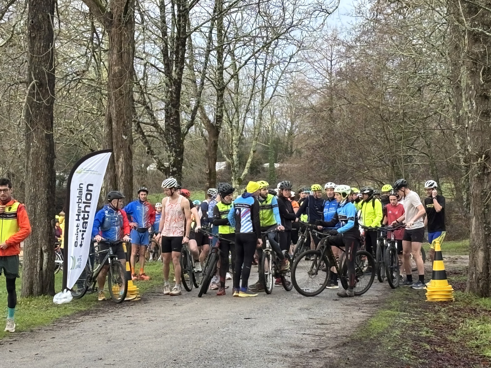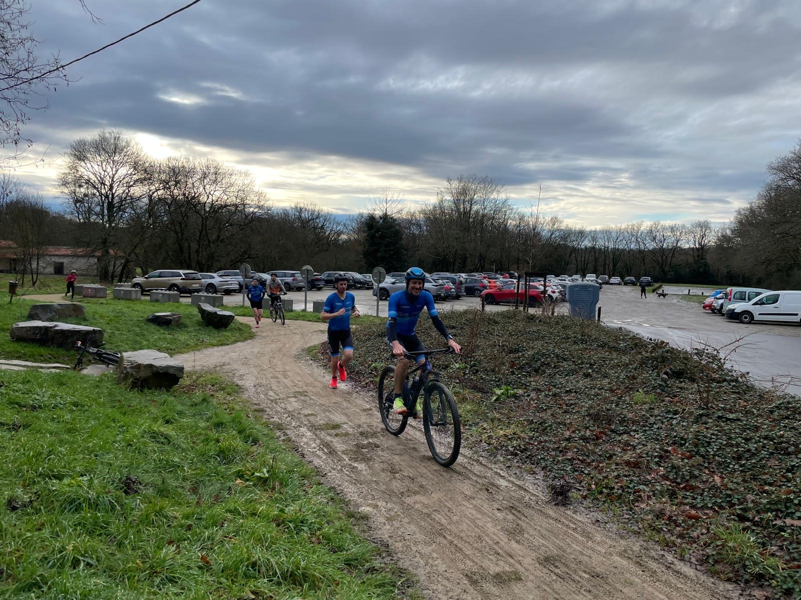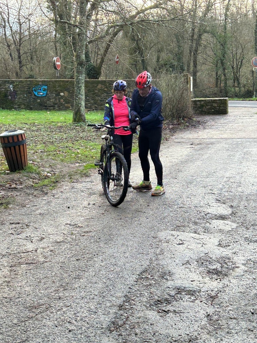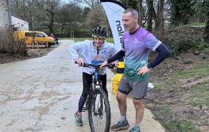 Ce Dimanche 18 Janvier la 11° Édition du Run and Bike Découverte s'est tenue dans le magnifique parc de la Gournerie a Saint Herblain , aprés une année d'interruption suite aux importants travaux conduits sur le site , cette édition était dédiée a la solidarité et a la pratique du sport Responsable . En effet , le Saint Herblain Triathlon avait décidé de promouvoir la pratique sportive responsable en s'associant avec l'association Supporterre pour sensibiliser les participants en organisant une collecte d'équipements sportifs plus utilisés afin de leur donner une seconde vie et favoriser l'economie circulaire ; une animation avec l'étonnante Juiscyclette a permis aux participants volontaires de fabriquer leur jus de fuits sans empreinte carbone a la force de leurs mollets . Sous une météo plutot douce pour la saison , les 58 équipes participantes ont pu bénéficier d'un echauffement tonique organisé par les équipiers SHT avant de s'elancer sur le circuit de 5km tracé autour du Parc sous le starter de Marine Duméril , adjointe aux Sports a la Ville de Saint Herblain . 1 , 2 ou 3 tours , chaque équipe avait le choix de son parcours pour tester sa condition physique ou découvrir le plaisir d'enchainer Vélo et Course a pied .