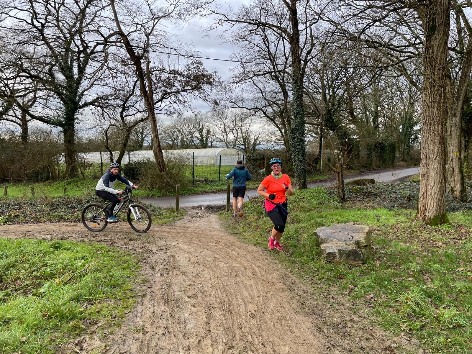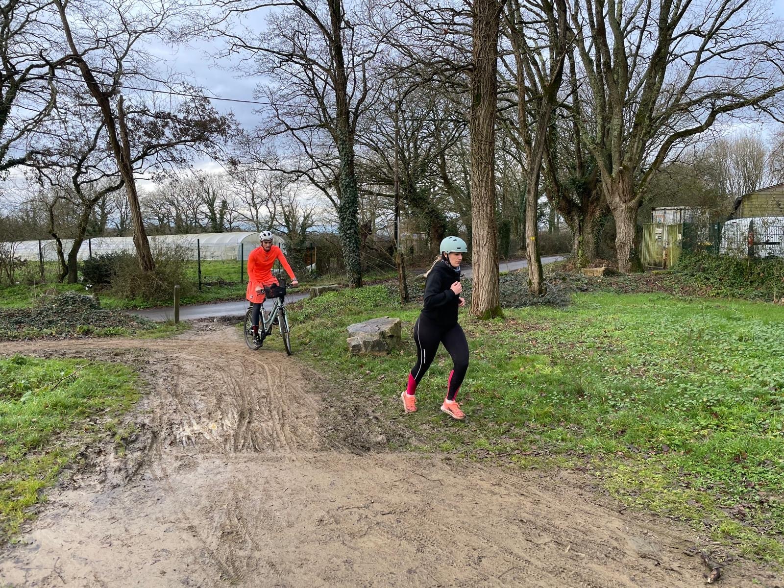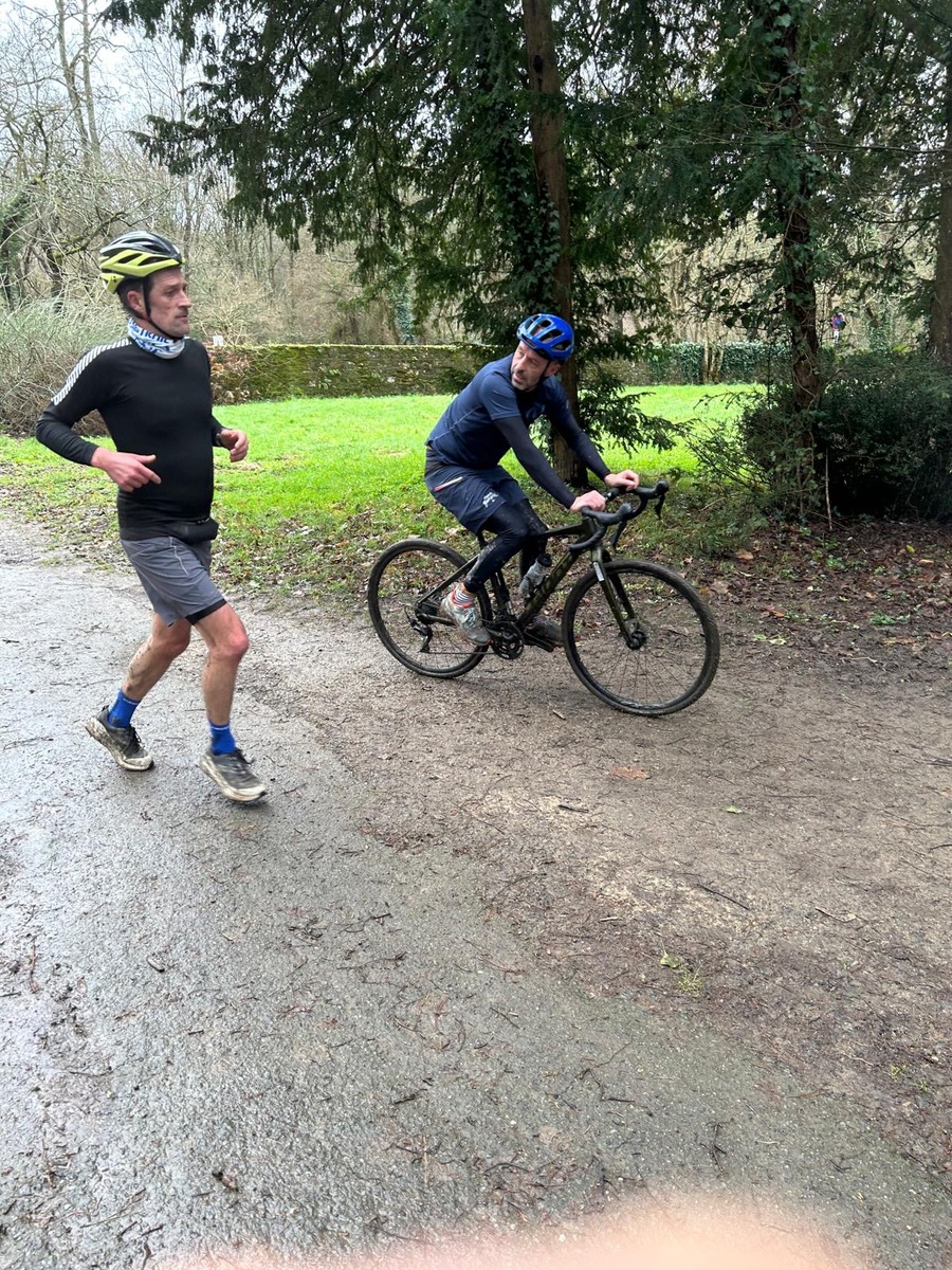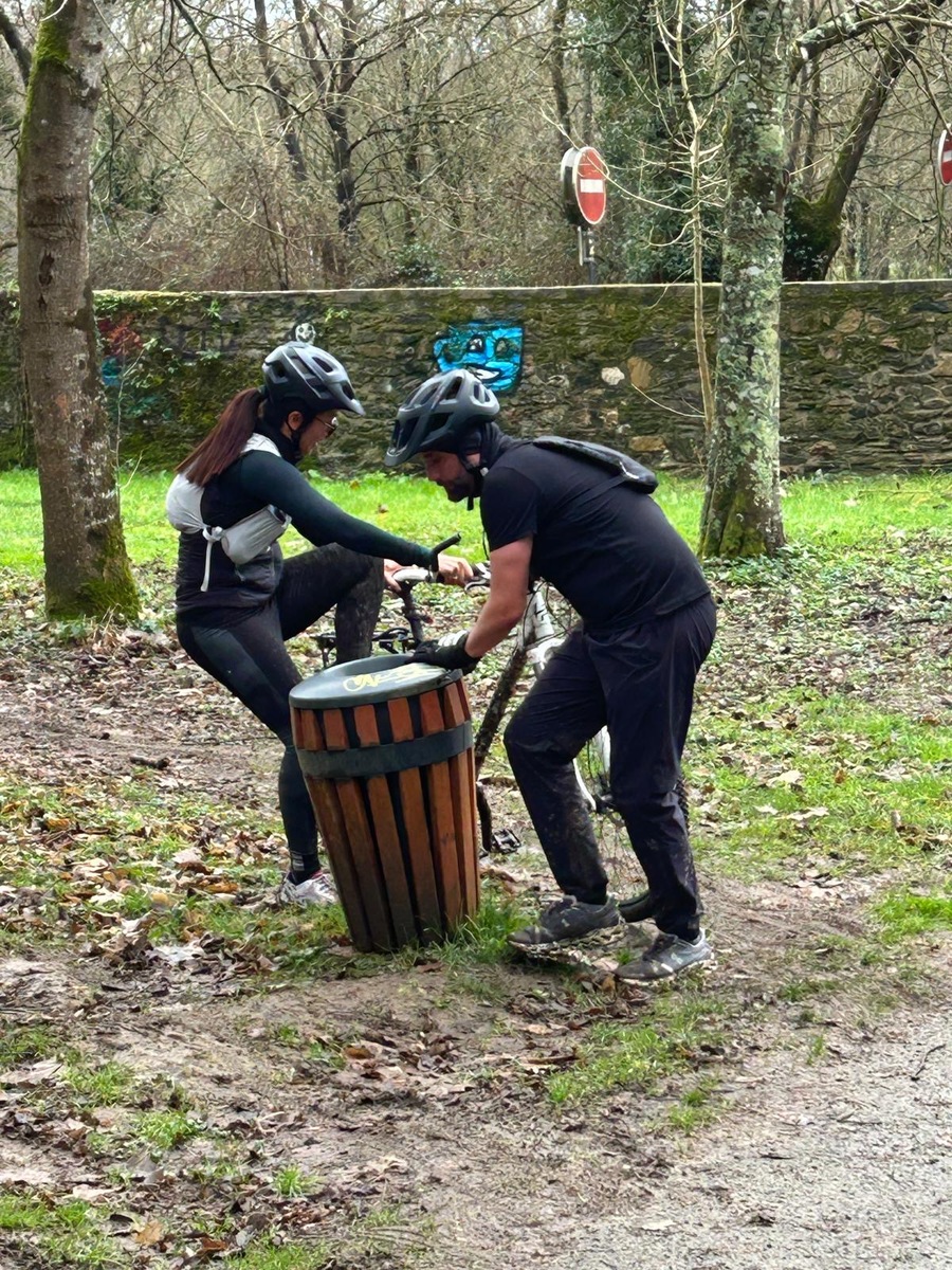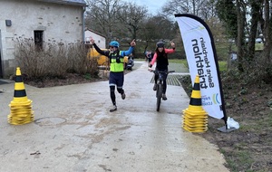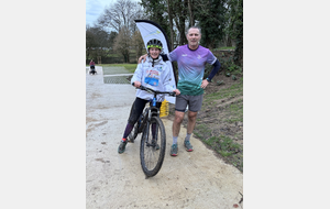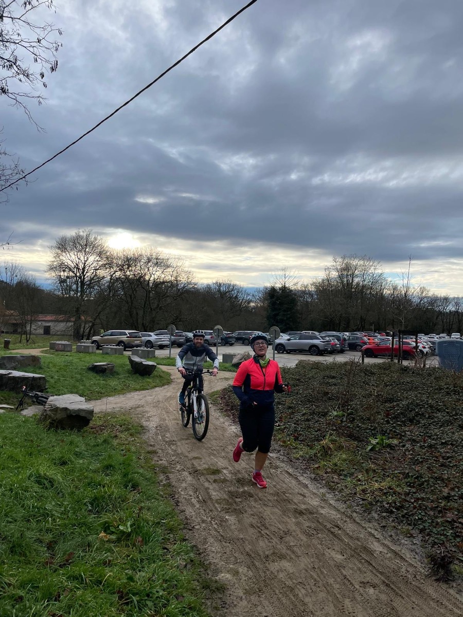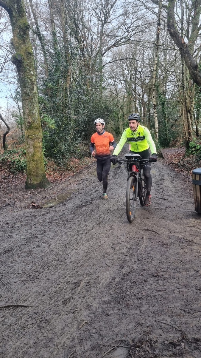 Ce Dimanche 18 Janvier la 11° Édition du Run and Bike Découverte s'est tenue dans le magnifique parc de la Gournerie a Saint Herblain , aprés une année d'interruption suite aux importants travaux conduits sur le site , cette édition était dédiée a la solidarité et a la pratique du sport Responsable . En effet , le Saint Herblain Triathlon avait décidé de promouvoir la pratique sportive responsable en s'associant avec l'association Supporterre pour sensibiliser les participants en organisant une collecte d'équipements sportifs plus utilisés afin de leur donner une seconde vie et favoriser l'economie circulaire ; une animation avec l'étonnante Juiscyclette a permis aux participants volontaires de fabriquer leur jus de fuits sans empreinte carbone a la force de leurs mollets . Sous une météo plutot douce pour la saison , les 58 équipes participantes ont pu bénéficier d'un echauffement tonique organisé par les équipiers SHT avant de s'elancer sur le circuit de 5km tracé autour du Parc sous le starter de Marine Duméril , adjointe aux Sports a la Ville de Saint Herblain . 1 , 2 ou 3 tours , chaque équipe avait le choix de son parcours pour tester sa condition physique ou découvrir le plaisir d'enchainer Vélo et Course a pied .