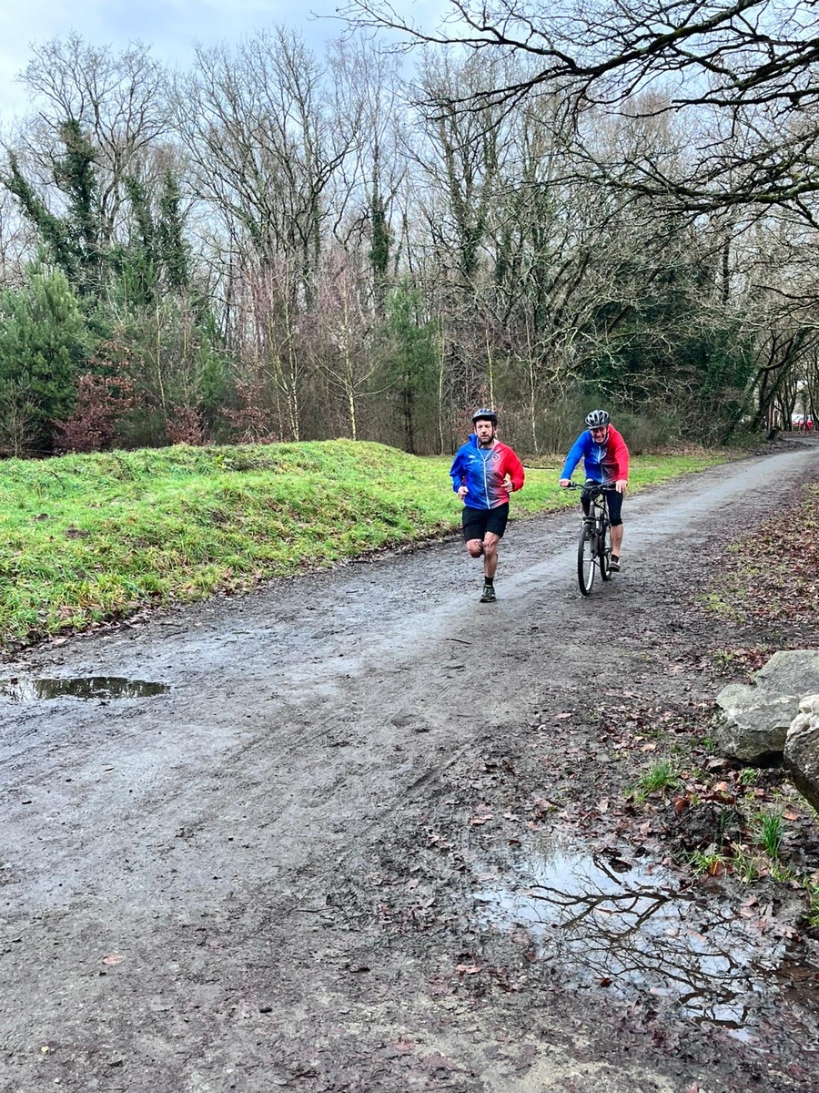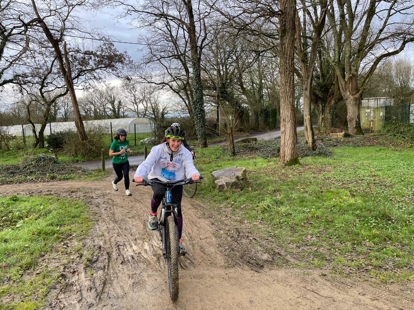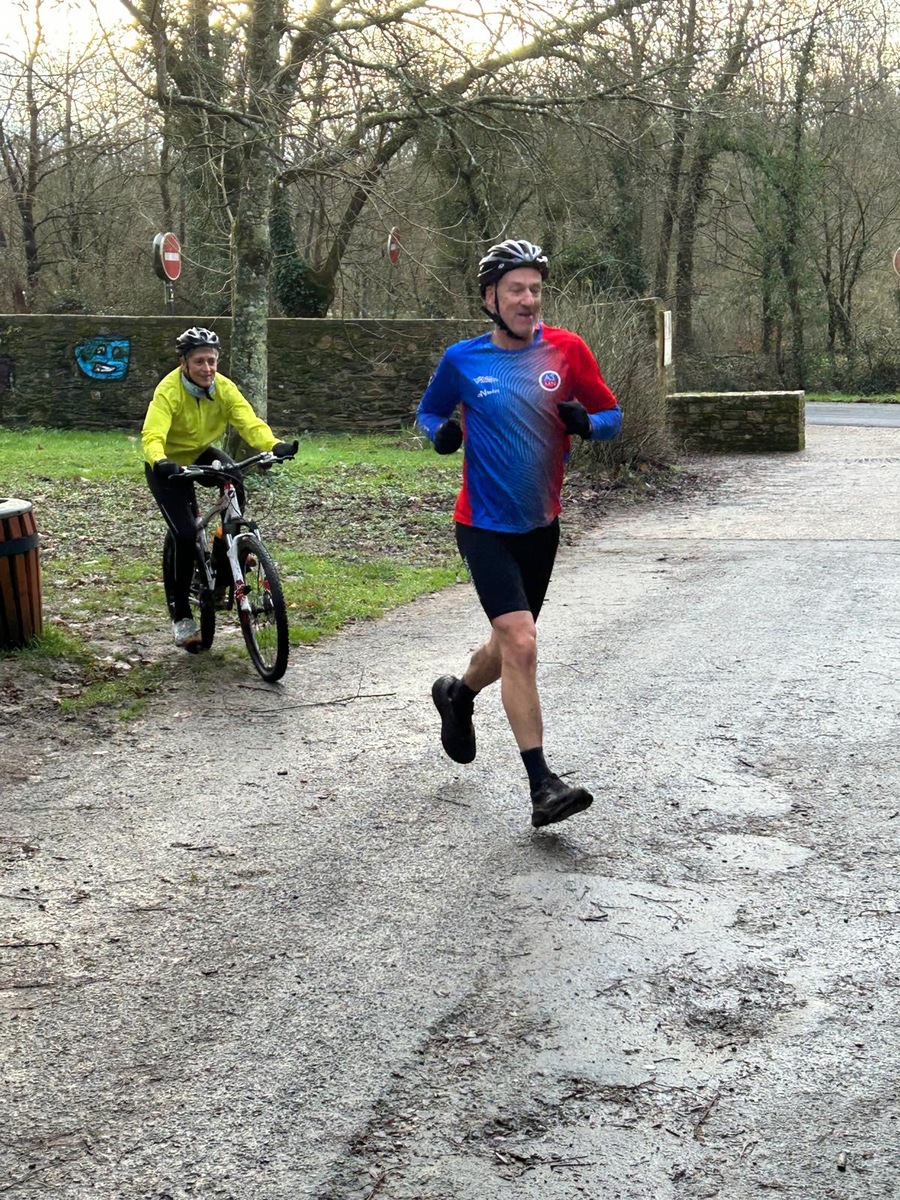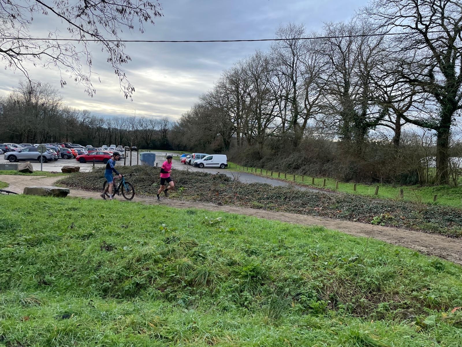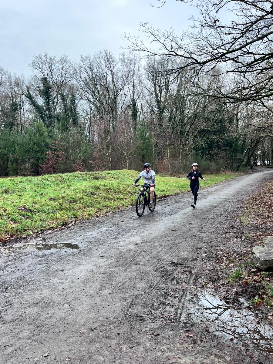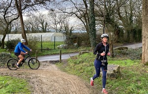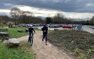 Ce Dimanche 18 Janvier la 11° Édition du Run and Bike Découverte s'est tenue dans le magnifique parc de la Gournerie a Saint Herblain , aprés une année d'interruption suite aux importants travaux conduits sur le site , cette édition était dédiée a la solidarité et a la pratique du sport Responsable . En effet , le Saint Herblain Triathlon avait décidé de promouvoir la pratique sportive responsable en s'associant avec l'association Supporterre pour sensibiliser les participants en organisant une collecte d'équipements sportifs plus utilisés afin de leur donner une seconde vie et favoriser l'economie circulaire ; une animation avec l'étonnante Juiscyclette a permis aux participants volontaires de fabriquer leur jus de fuits sans empreinte carbone a la force de leurs mollets . Sous une météo plutot douce pour la saison , les 58 équipes participantes ont pu bénéficier d'un echauffement tonique organisé par les équipiers SHT avant de s'elancer sur le circuit de 5km tracé autour du Parc sous le starter de Marine Duméril , adjointe aux Sports a la Ville de Saint Herblain . 1 , 2 ou 3 tours , chaque équipe avait le choix de son parcours pour tester sa condition physique ou découvrir le plaisir d'enchainer Vélo et Course a pied .
