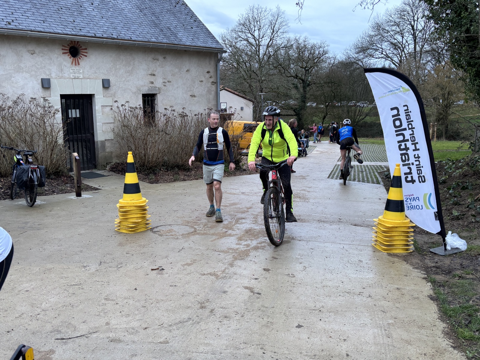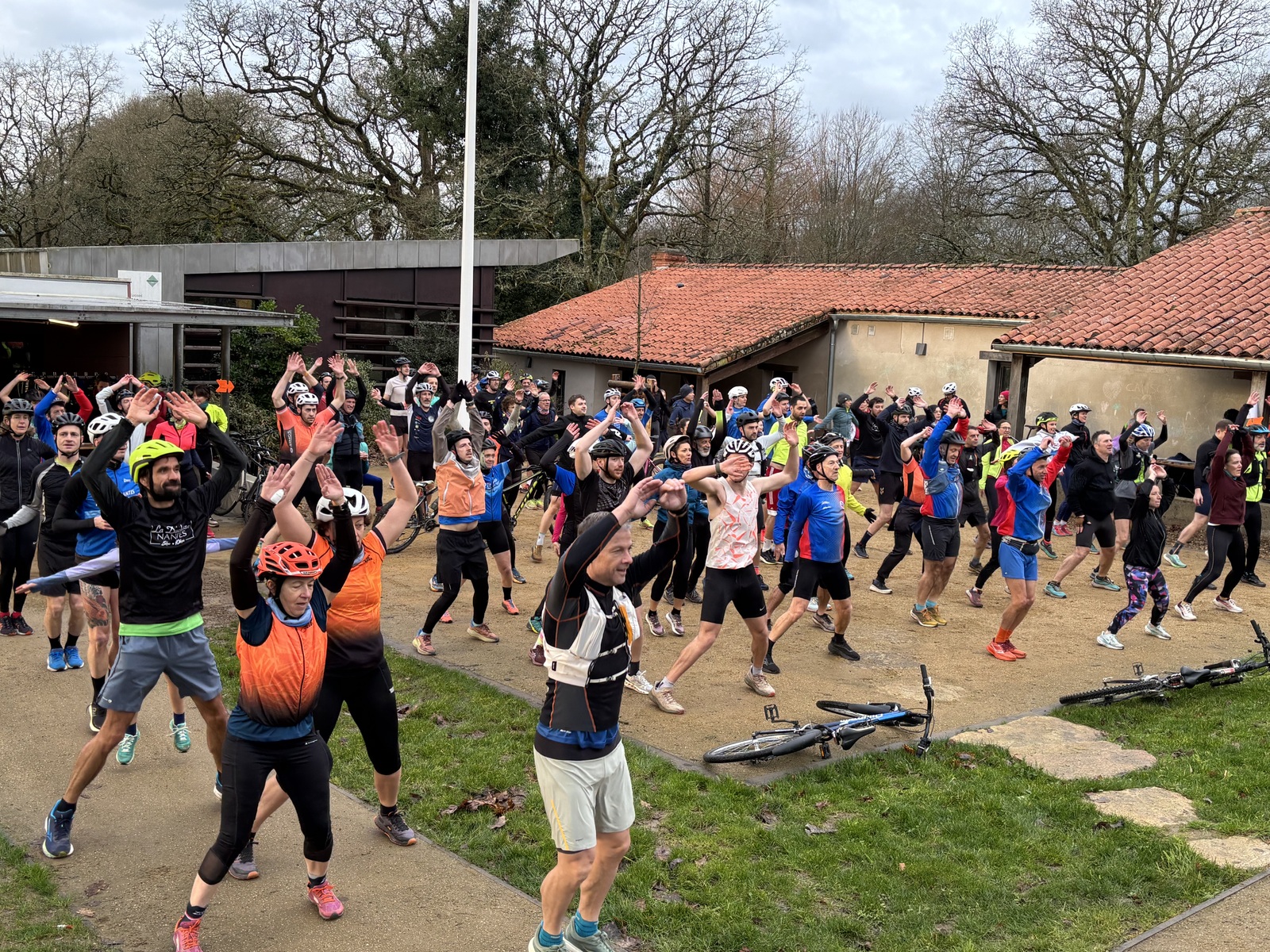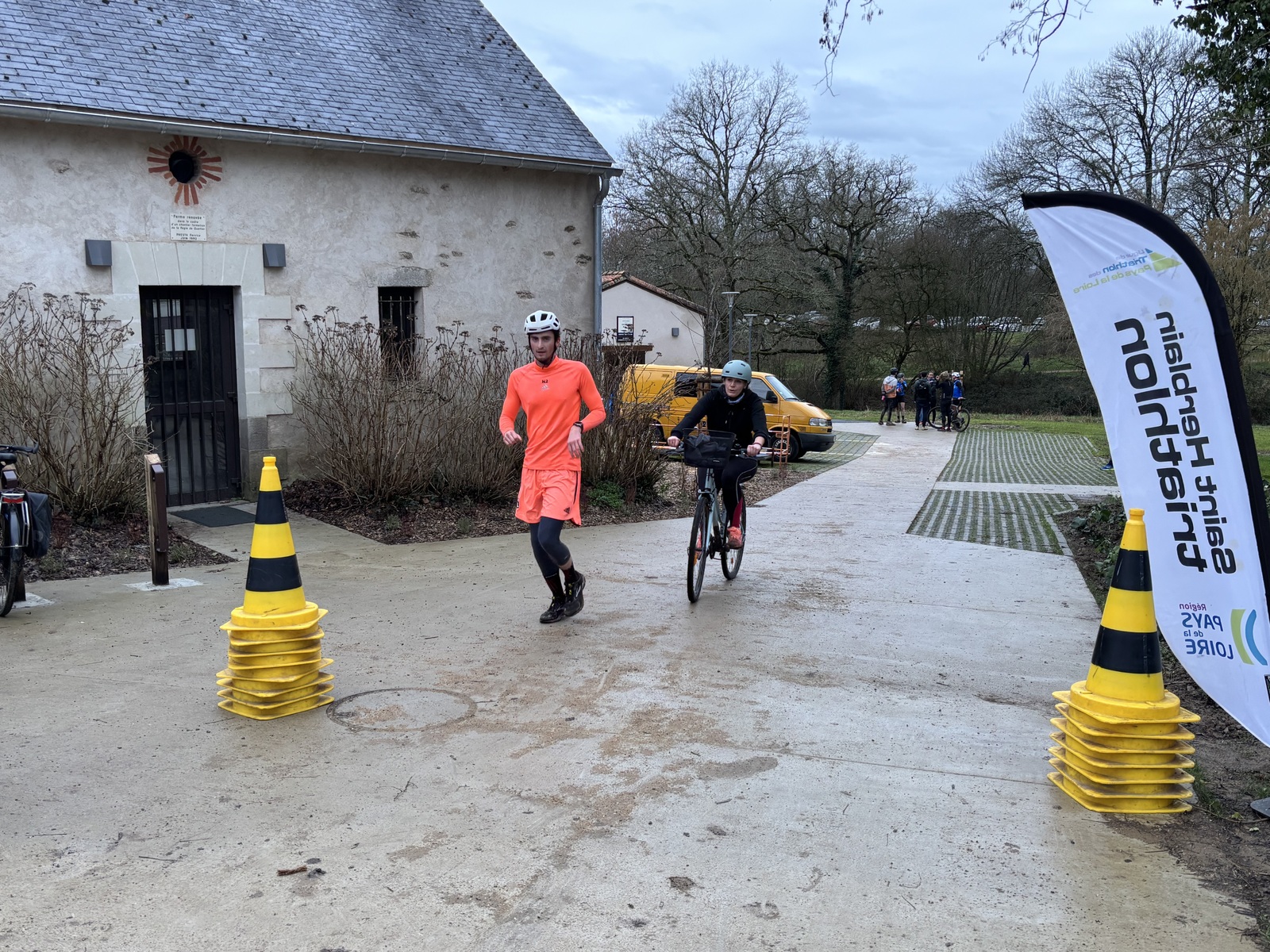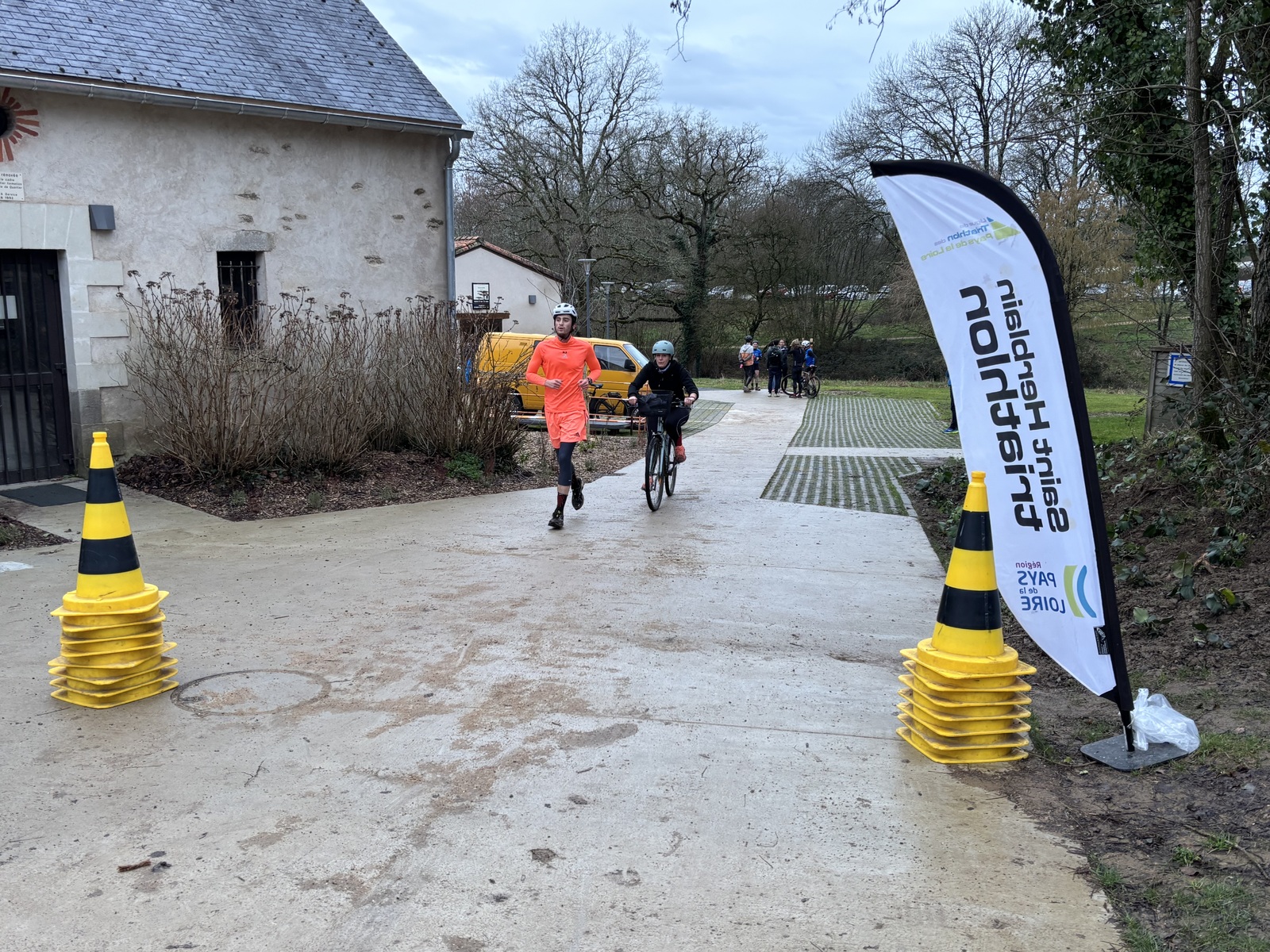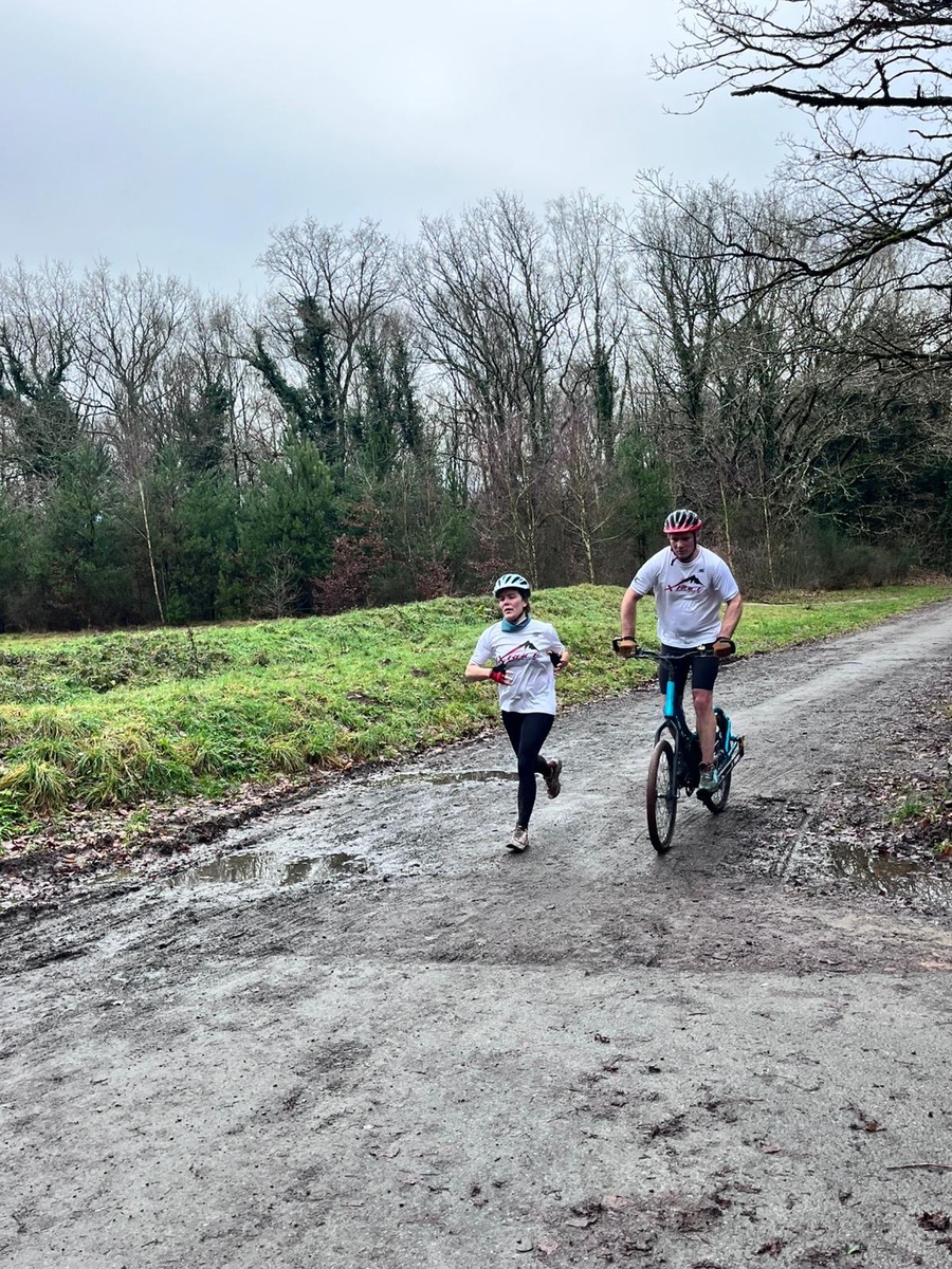 Ce Dimanche 18 Janvier la 11° Édition du Run and Bike Découverte s'est tenue dans le magnifique parc de la Gournerie a Saint Herblain , aprés une année d'interruption suite aux importants travaux conduits sur le site , cette édition était dédiée a la solidarité et a la pratique du sport Responsable . En effet , le Saint Herblain Triathlon avait décidé de promouvoir la pratique sportive responsable en s'associant avec l'association Supporterre pour sensibiliser les participants en organisant une collecte d'équipements sportifs plus utilisés afin de leur donner une seconde vie et favoriser l'economie circulaire ; une animation avec l'étonnante Juiscyclette a permis aux participants volontaires de fabriquer leur jus de fuits sans empreinte carbone a la force de leurs mollets . Sous une météo plutot douce pour la saison , les 58 équipes participantes ont pu bénéficier d'un echauffement tonique organisé par les équipiers SHT avant de s'elancer sur le circuit de 5km tracé autour du Parc sous le starter de Marine Duméril , adjointe aux Sports a la Ville de Saint Herblain . 1 , 2 ou 3 tours , chaque équipe avait le choix de son parcours pour tester sa condition physique ou découvrir le plaisir d'enchainer Vélo et Course a pied .