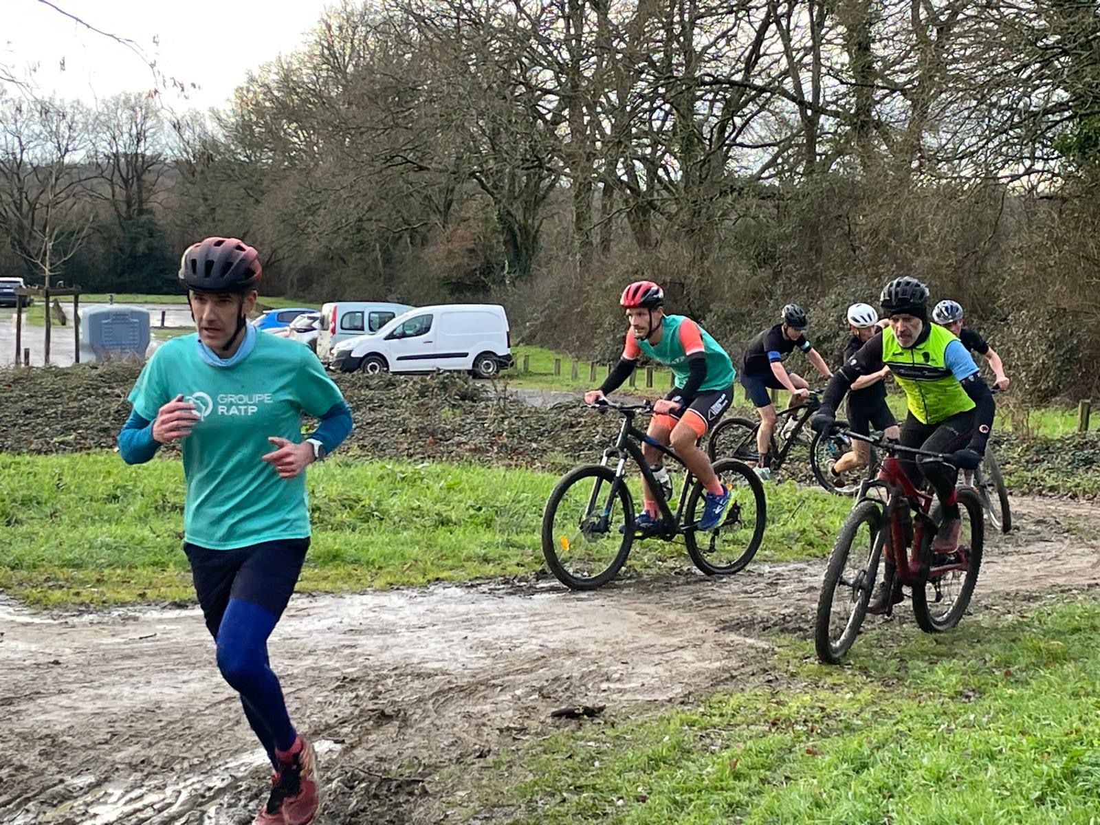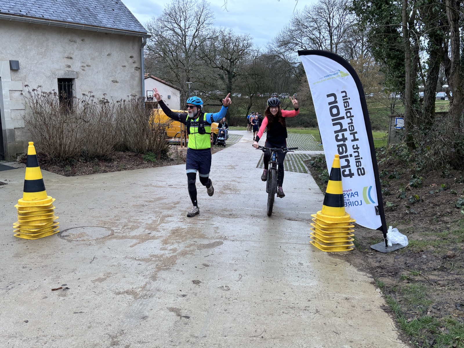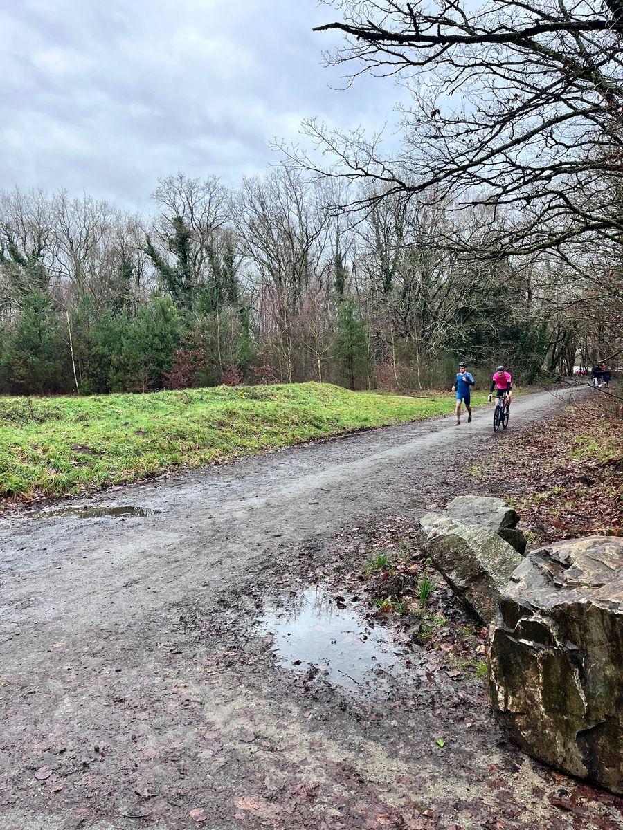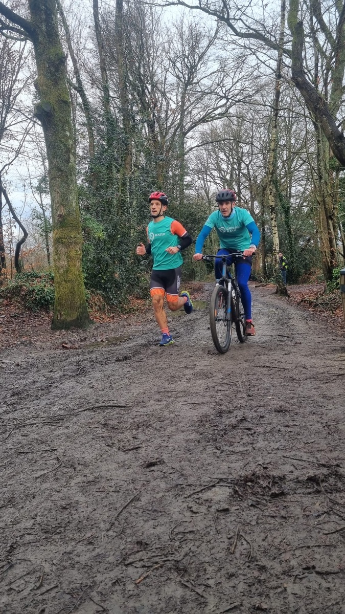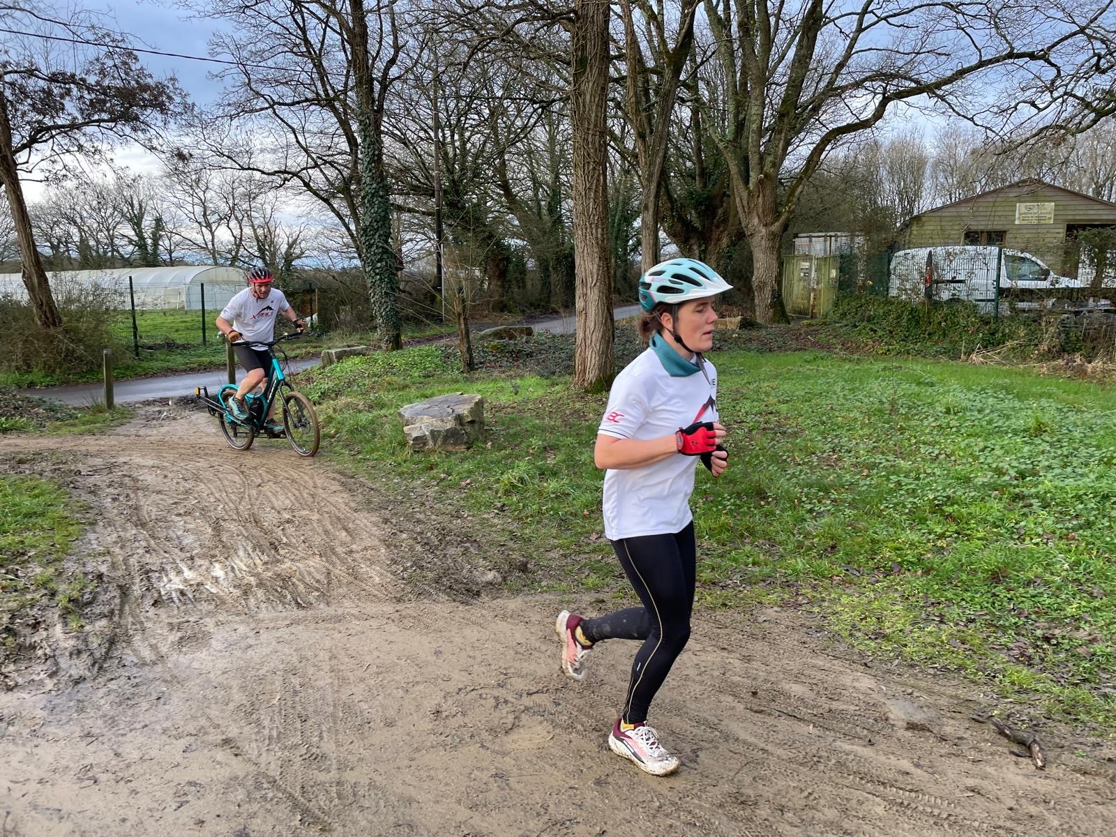 Ce Dimanche 18 Janvier la 11° Édition du Run and Bike Découverte s'est tenue dans le magnifique parc de la Gournerie a Saint Herblain , aprés une année d'interruption suite aux importants travaux conduits sur le site , cette édition était dédiée a la solidarité et a la pratique du sport Responsable . En effet , le Saint Herblain Triathlon avait décidé de promouvoir la pratique sportive responsable en s'associant avec l'association Supporterre pour sensibiliser les participants en organisant une collecte d'équipements sportifs plus utilisés afin de leur donner une seconde vie et favoriser l'economie circulaire ; une animation avec l'étonnante Juiscyclette a permis aux participants volontaires de fabriquer leur jus de fuits sans empreinte carbone a la force de leurs mollets . Sous une météo plutot douce pour la saison , les 58 équipes participantes ont pu bénéficier d'un echauffement tonique organisé par les équipiers SHT avant de s'elancer sur le circuit de 5km tracé autour du Parc sous le starter de Marine Duméril , adjointe aux Sports a la Ville de Saint Herblain . 1 , 2 ou 3 tours , chaque équipe avait le choix de son parcours pour tester sa condition physique ou découvrir le plaisir d'enchainer Vélo et Course a pied .