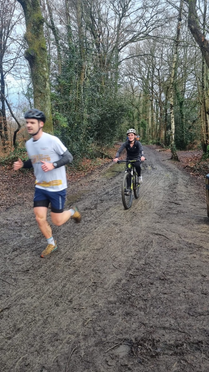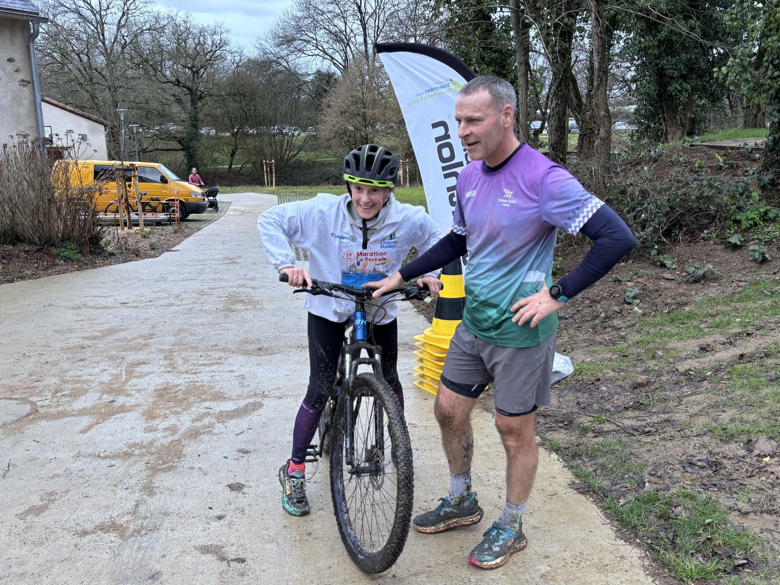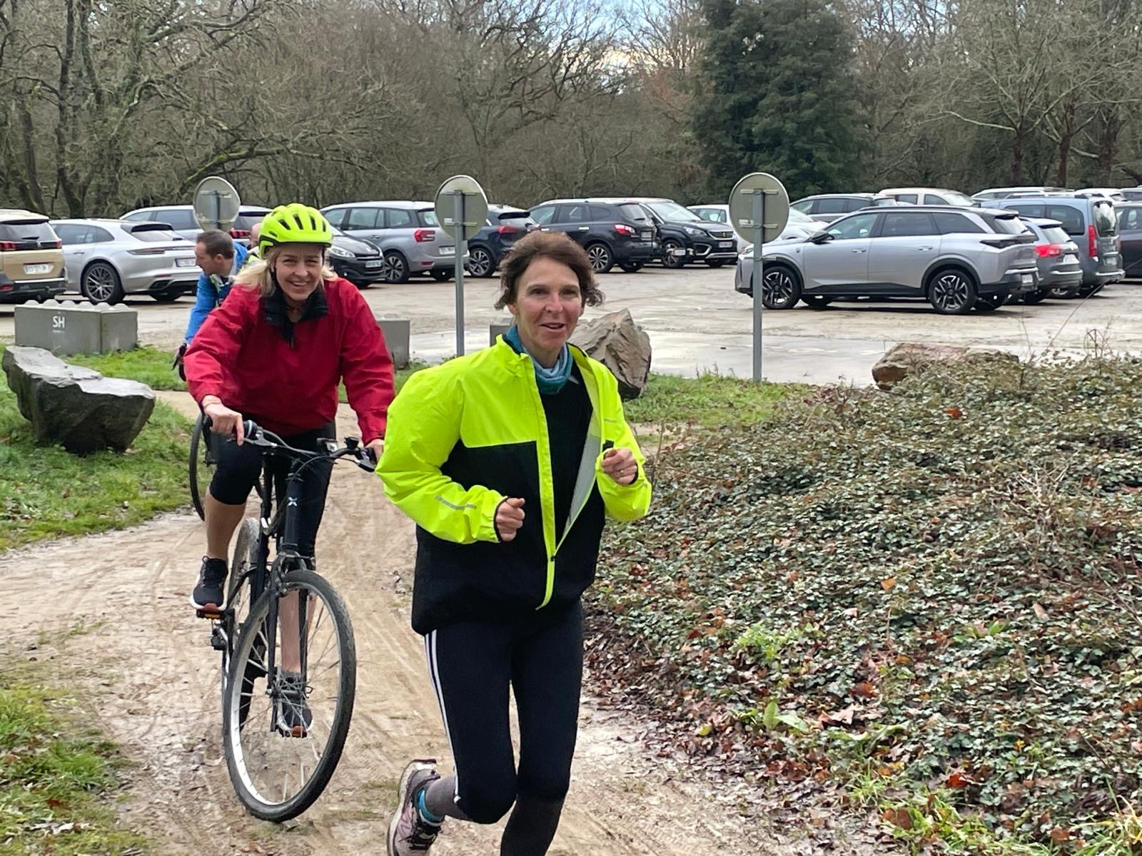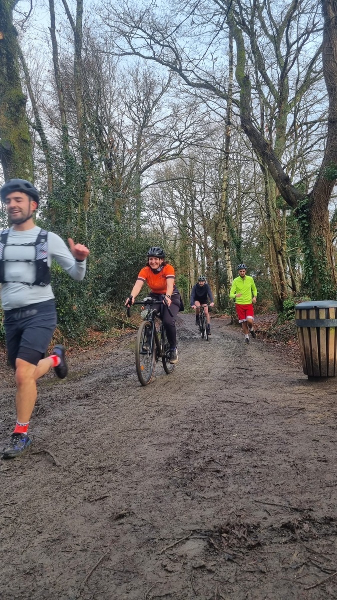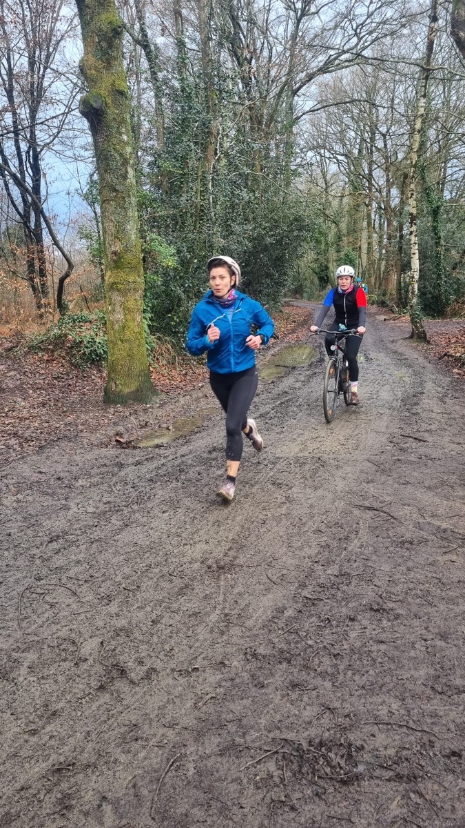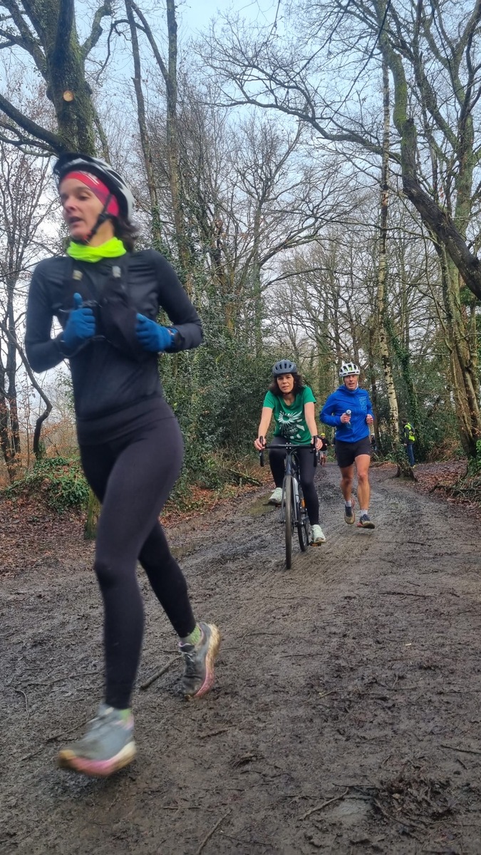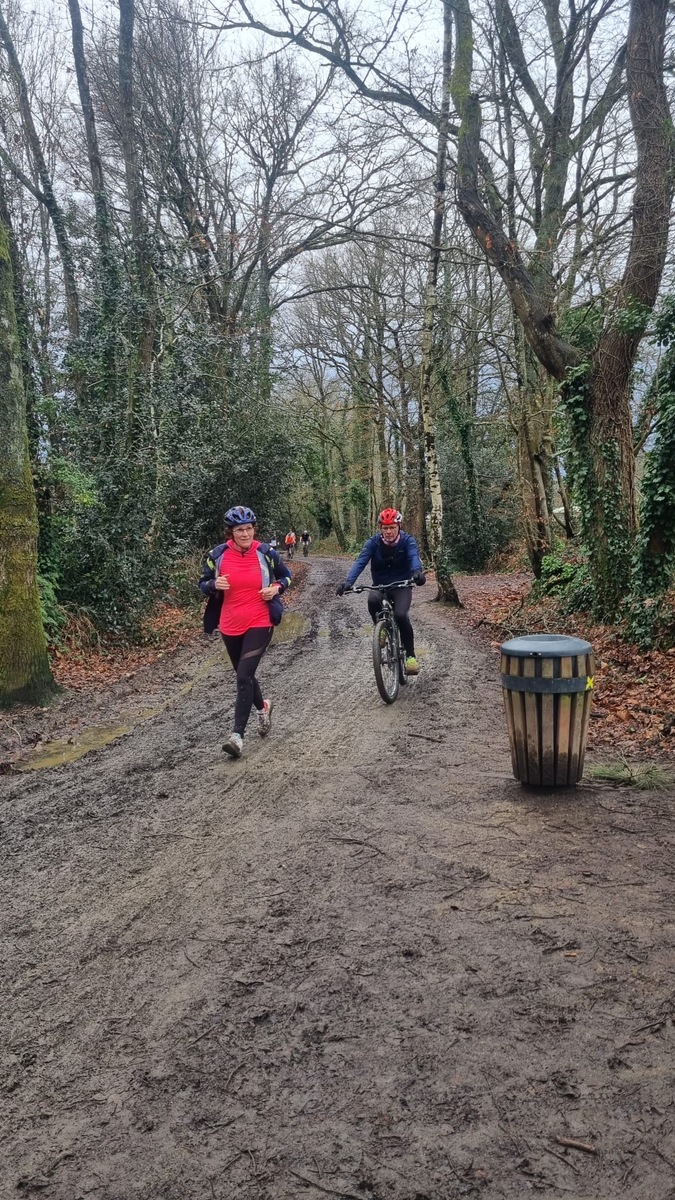Ce Dimanche 18 Janvier la 11° Édition du Run and Bike Découverte s'est tenue dans le magnifique parc de la Gournerie a Saint Herblain , aprés une année d'interruption suite aux importants travaux conduits sur le site , cette édition était dédiée a la solidarité et a la pratique du sport Responsable . En effet , le Saint Herblain Triathlon avait décidé de promouvoir la pratique sportive responsable en s'associant avec l'association Supporterre pour sensibiliser les participants en organisant une collecte d'équipements sportifs plus utilisés afin de leur donner une seconde vie et favoriser l'economie circulaire ; une animation avec l'étonnante Juiscyclette a permis aux participants volontaires de fabriquer leur jus de fuits sans empreinte carbone a la force de leurs mollets . Sous une météo plutot douce pour la saison , les 58 équipes participantes ont pu bénéficier d'un echauffement tonique organisé par les équipiers SHT avant de s'elancer sur le circuit de 5km tracé autour du Parc sous le starter de Marine Duméril , adjointe aux Sports a la Ville de Saint Herblain . 1 , 2 ou 3 tours , chaque équipe avait le choix de son parcours pour tester sa condition physique ou découvrir le plaisir d'enchainer Vélo et Course a pied .