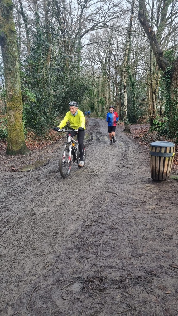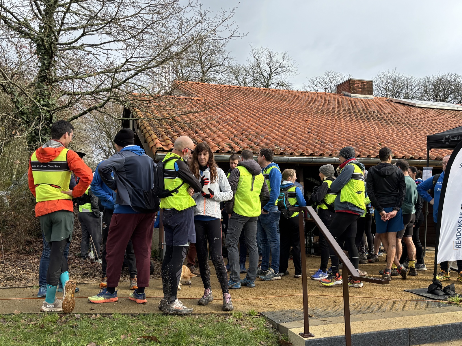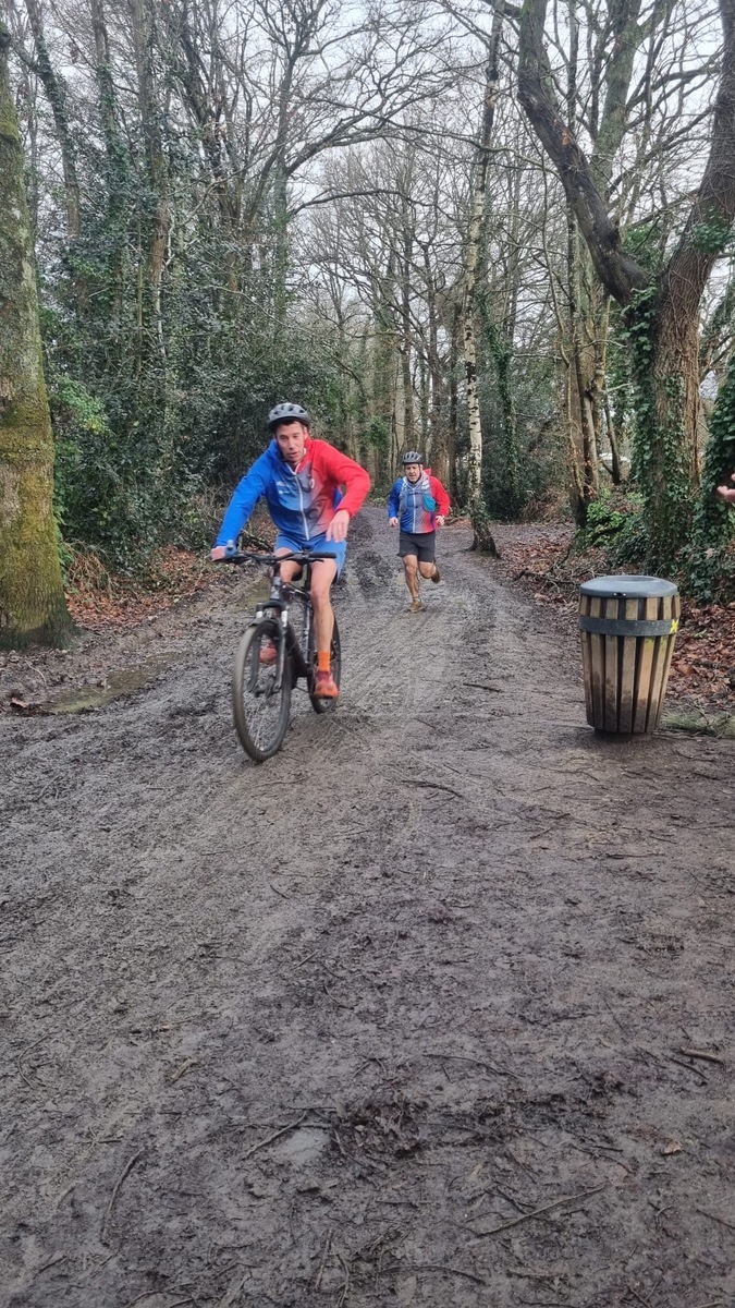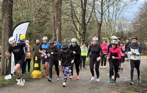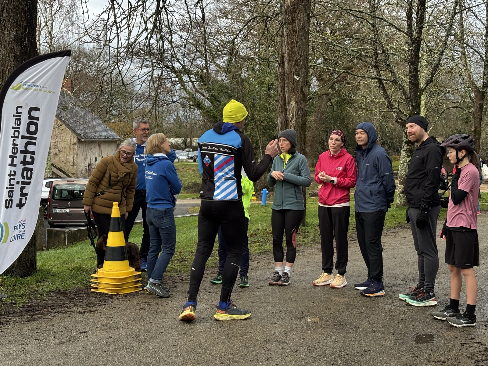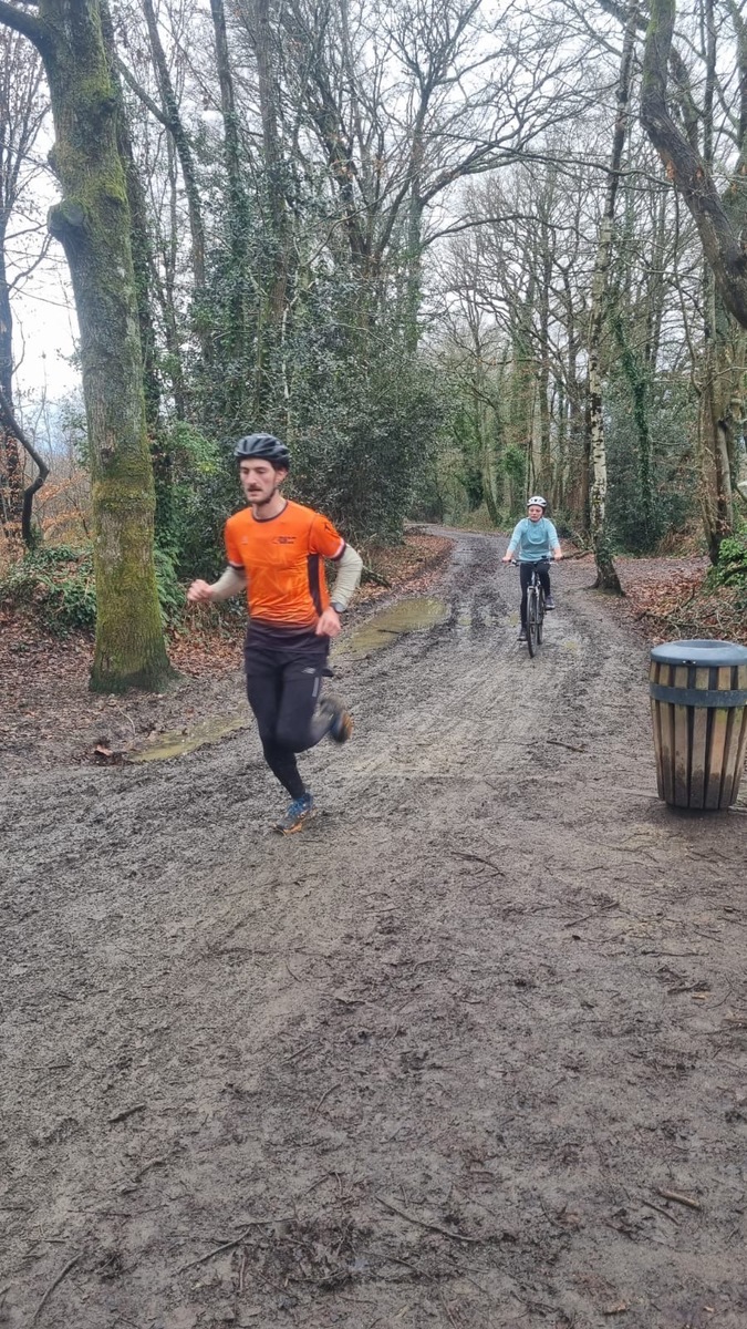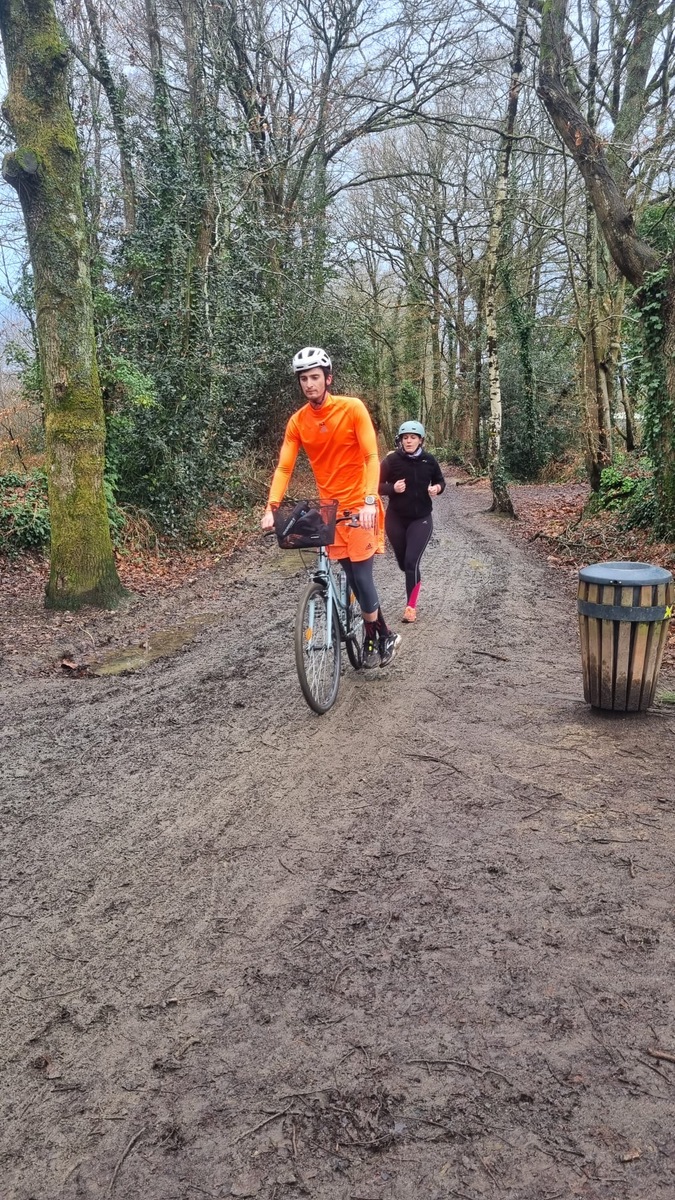 Ce Dimanche 18 Janvier la 11° Édition du Run and Bike Découverte s'est tenue dans le magnifique parc de la Gournerie a Saint Herblain , aprés une année d'interruption suite aux importants travaux conduits sur le site , cette édition était dédiée a la solidarité et a la pratique du sport Responsable . En effet , le Saint Herblain Triathlon avait décidé de promouvoir la pratique sportive responsable en s'associant avec l'association Supporterre pour sensibiliser les participants en organisant une collecte d'équipements sportifs plus utilisés afin de leur donner une seconde vie et favoriser l'economie circulaire ; une animation avec l'étonnante Juiscyclette a permis aux participants volontaires de fabriquer leur jus de fuits sans empreinte carbone a la force de leurs mollets . Sous une météo plutot douce pour la saison , les 58 équipes participantes ont pu bénéficier d'un echauffement tonique organisé par les équipiers SHT avant de s'elancer sur le circuit de 5km tracé autour du Parc sous le starter de Marine Duméril , adjointe aux Sports a la Ville de Saint Herblain . 1 , 2 ou 3 tours , chaque équipe avait le choix de son parcours pour tester sa condition physique ou découvrir le plaisir d'enchainer Vélo et Course a pied .