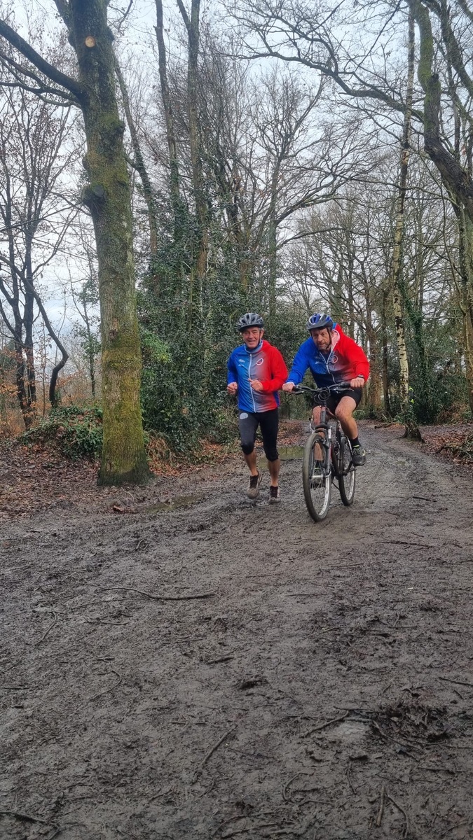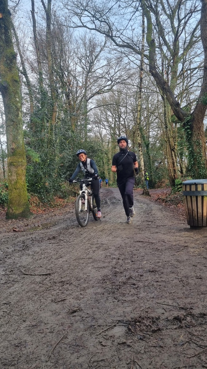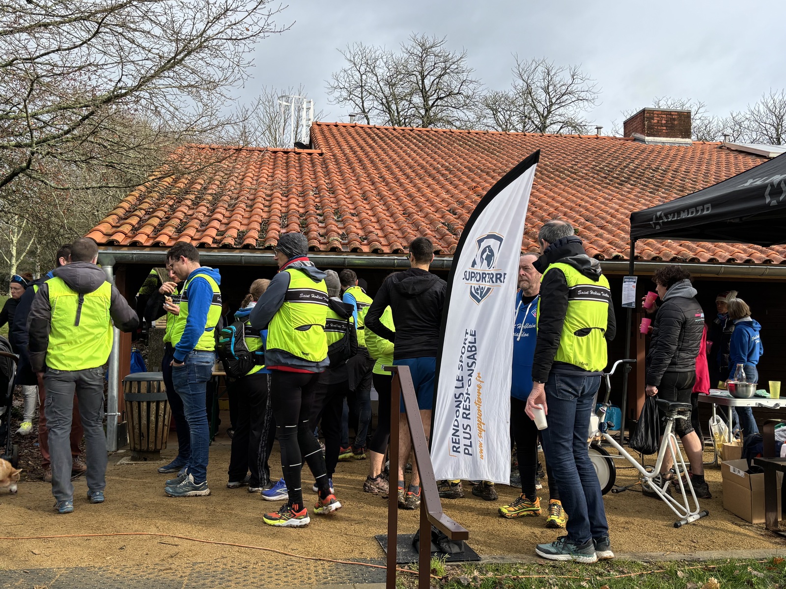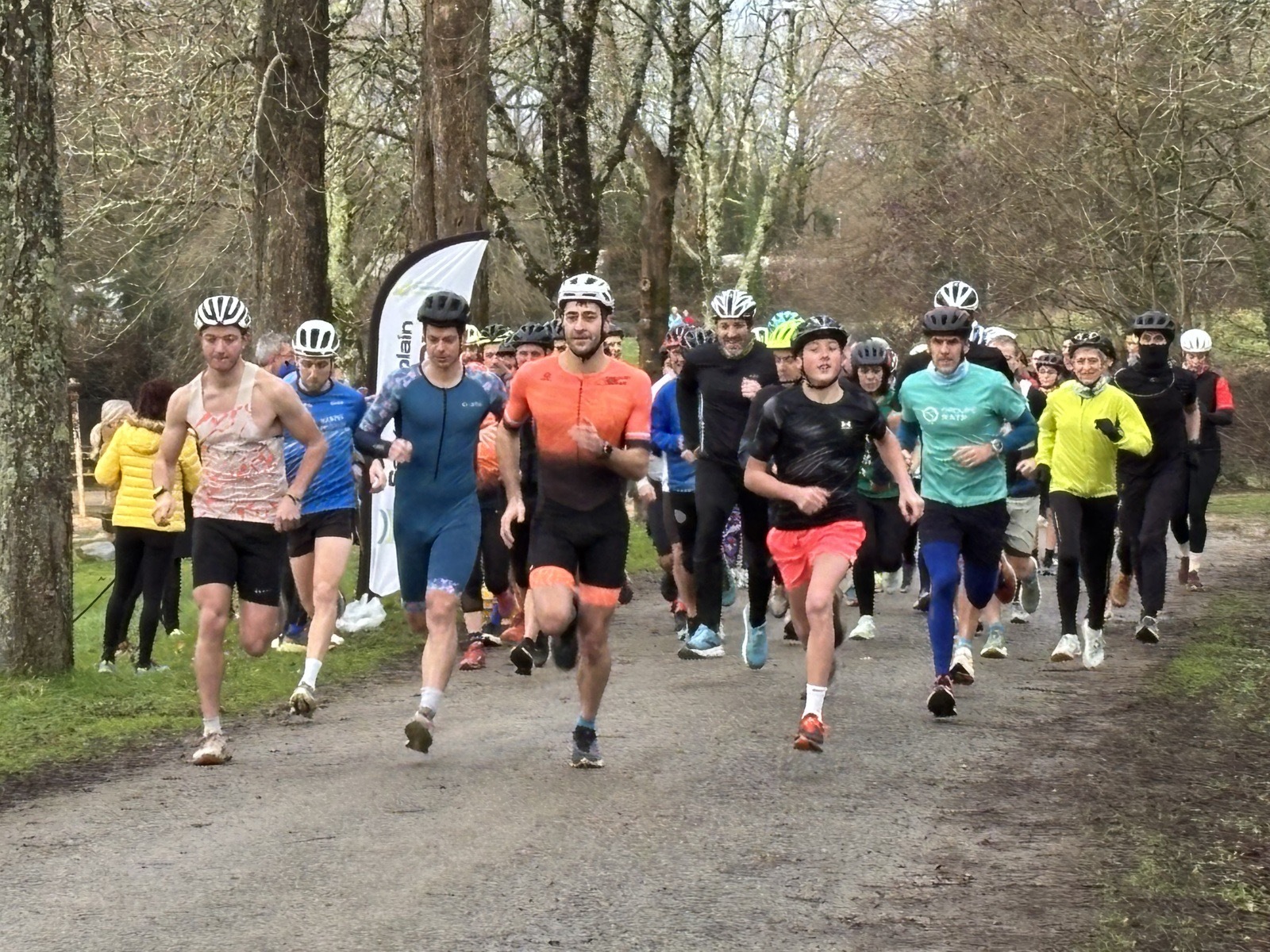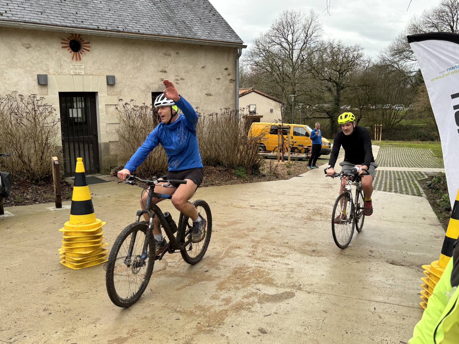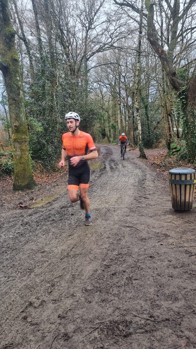Ce Dimanche 18 Janvier la 11° Édition du Run and Bike Découverte s'est tenue dans le magnifique parc de la Gournerie a Saint Herblain , aprés une année d'interruption suite aux importants travaux conduits sur le site , cette édition était dédiée a la solidarité et a la pratique du sport Responsable . En effet , le Saint Herblain Triathlon avait décidé de promouvoir la pratique sportive responsable en s'associant avec l'association Supporterre pour sensibiliser les participants en organisant une collecte d'équipements sportifs plus utilisés afin de leur donner une seconde vie et favoriser l'economie circulaire ; une animation avec l'étonnante Juiscyclette a permis aux participants volontaires de fabriquer leur jus de fuits sans empreinte carbone a la force de leurs mollets . Sous une météo plutot douce pour la saison , les 58 équipes participantes ont pu bénéficier d'un echauffement tonique organisé par les équipiers SHT avant de s'elancer sur le circuit de 5km tracé autour du Parc sous le starter de Marine Duméril , adjointe aux Sports a la Ville de Saint Herblain . 1 , 2 ou 3 tours , chaque équipe avait le choix de son parcours pour tester sa condition physique ou découvrir le plaisir d'enchainer Vélo et Course a pied .