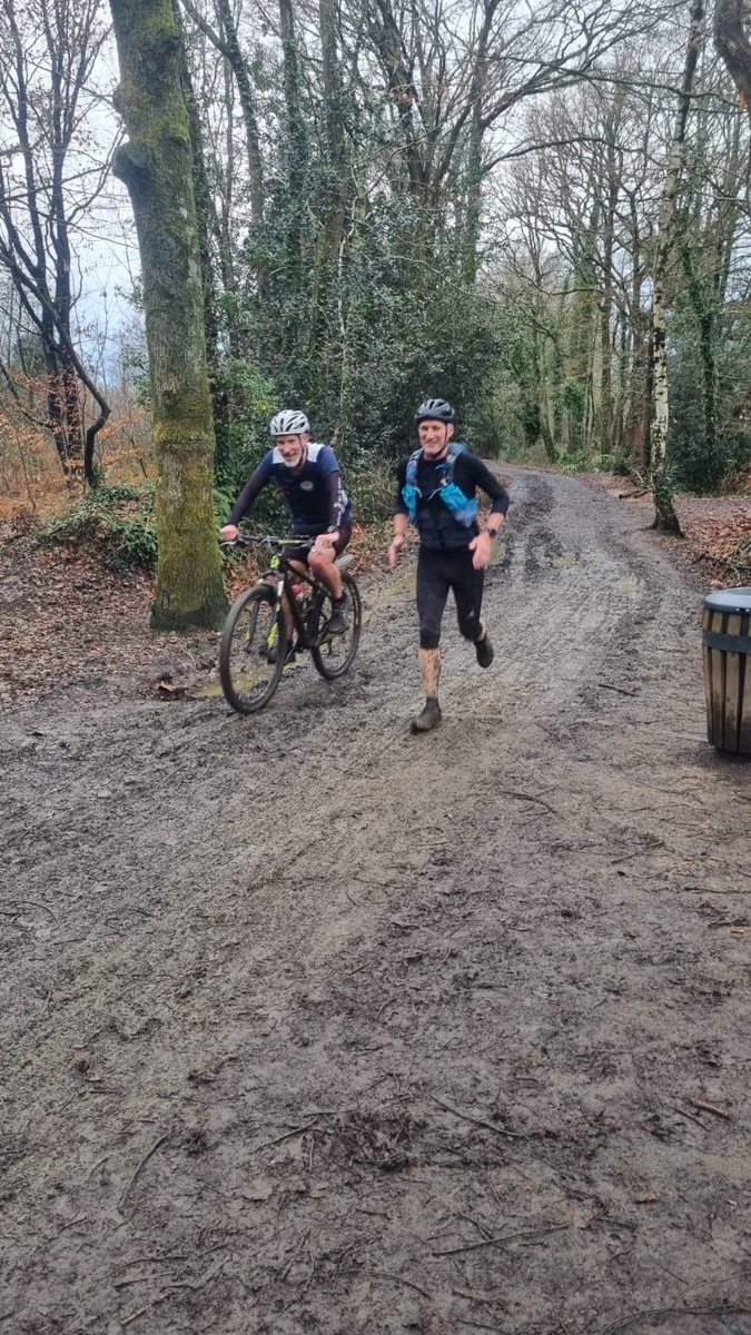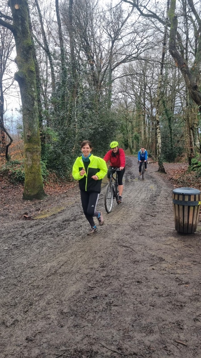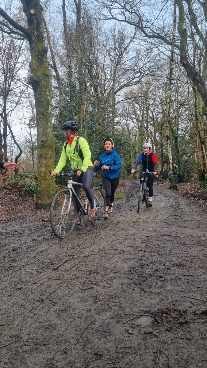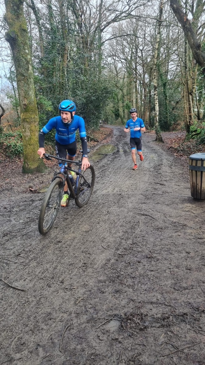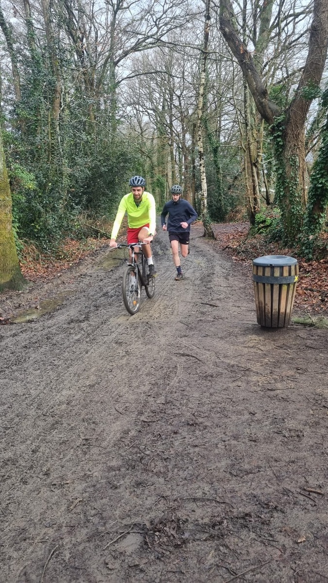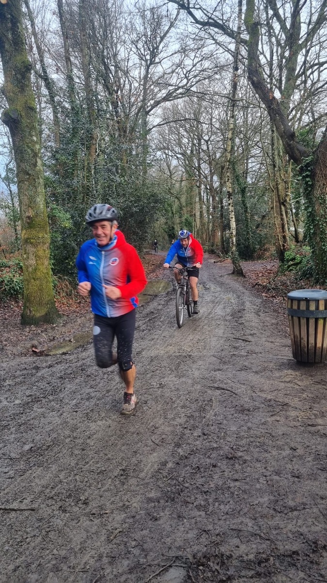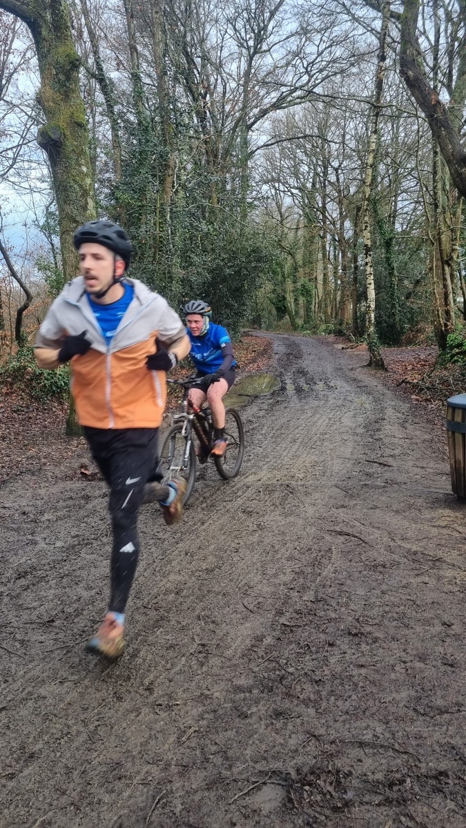 Ce Dimanche 18 Janvier la 11° Édition du Run and Bike Découverte s'est tenue dans le magnifique parc de la Gournerie a Saint Herblain , aprés une année d'interruption suite aux importants travaux conduits sur le site , cette édition était dédiée a la solidarité et a la pratique du sport Responsable . En effet , le Saint Herblain Triathlon avait décidé de promouvoir la pratique sportive responsable en s'associant avec l'association Supporterre pour sensibiliser les participants en organisant une collecte d'équipements sportifs plus utilisés afin de leur donner une seconde vie et favoriser l'economie circulaire ; une animation avec l'étonnante Juiscyclette a permis aux participants volontaires de fabriquer leur jus de fuits sans empreinte carbone a la force de leurs mollets . Sous une météo plutot douce pour la saison , les 58 équipes participantes ont pu bénéficier d'un echauffement tonique organisé par les équipiers SHT avant de s'elancer sur le circuit de 5km tracé autour du Parc sous le starter de Marine Duméril , adjointe aux Sports a la Ville de Saint Herblain . 1 , 2 ou 3 tours , chaque équipe avait le choix de son parcours pour tester sa condition physique ou découvrir le plaisir d'enchainer Vélo et Course a pied .