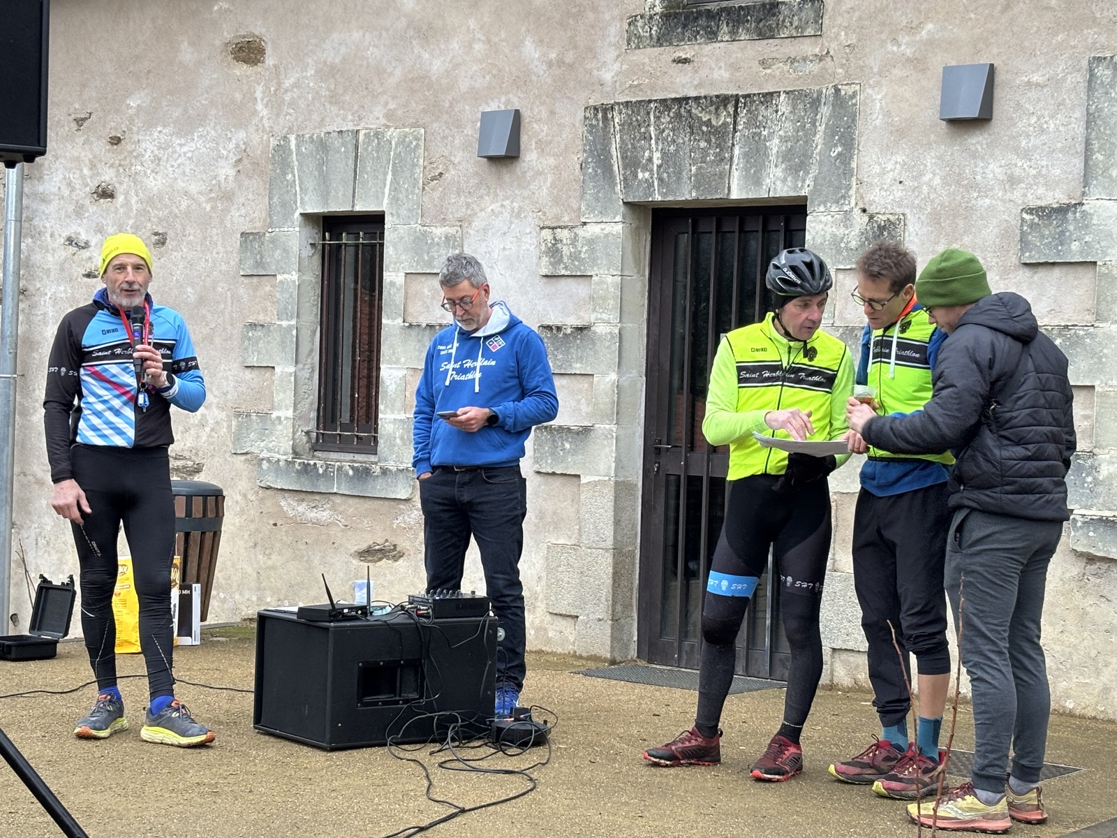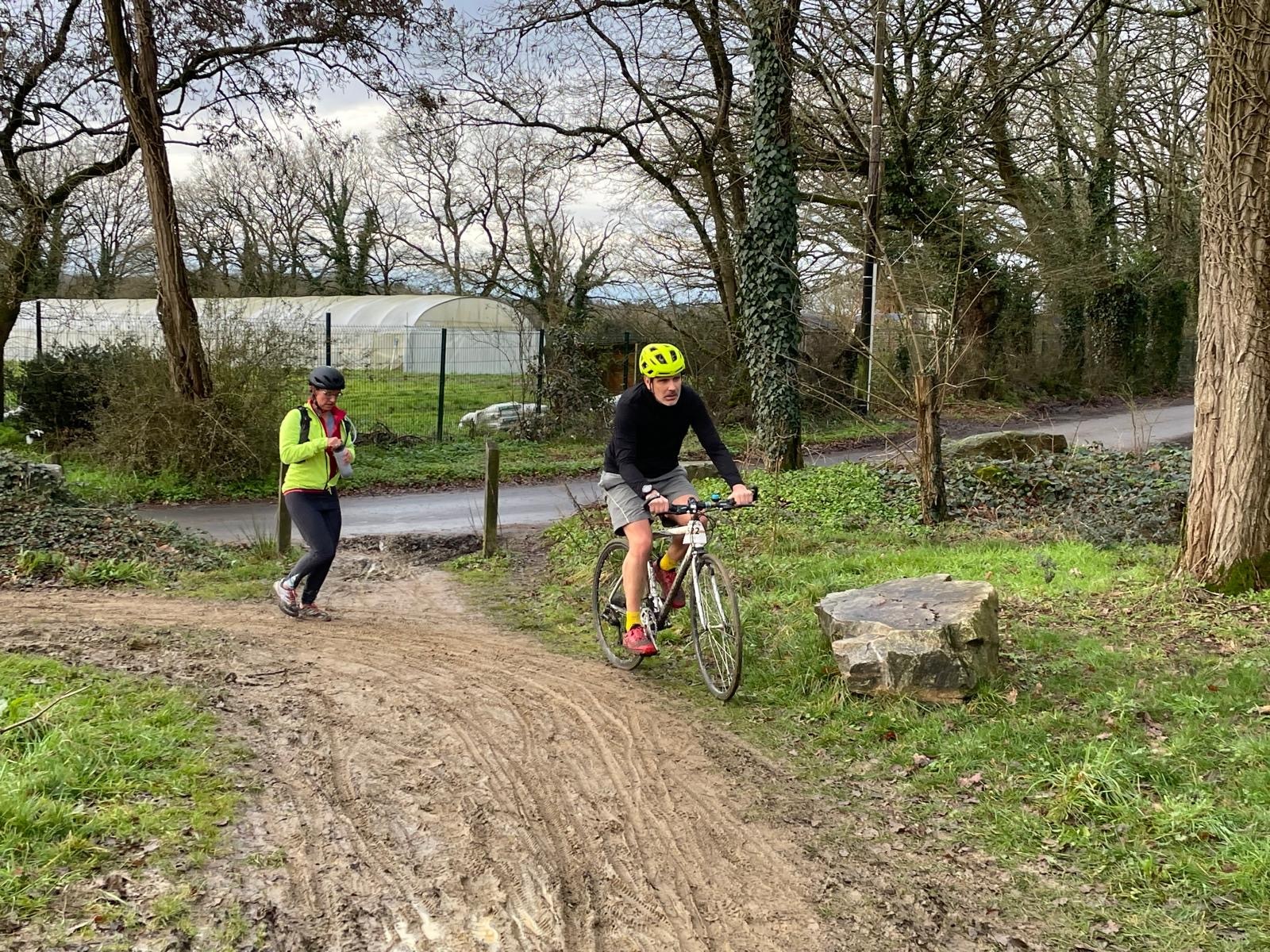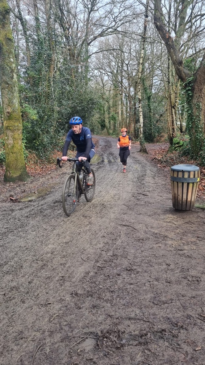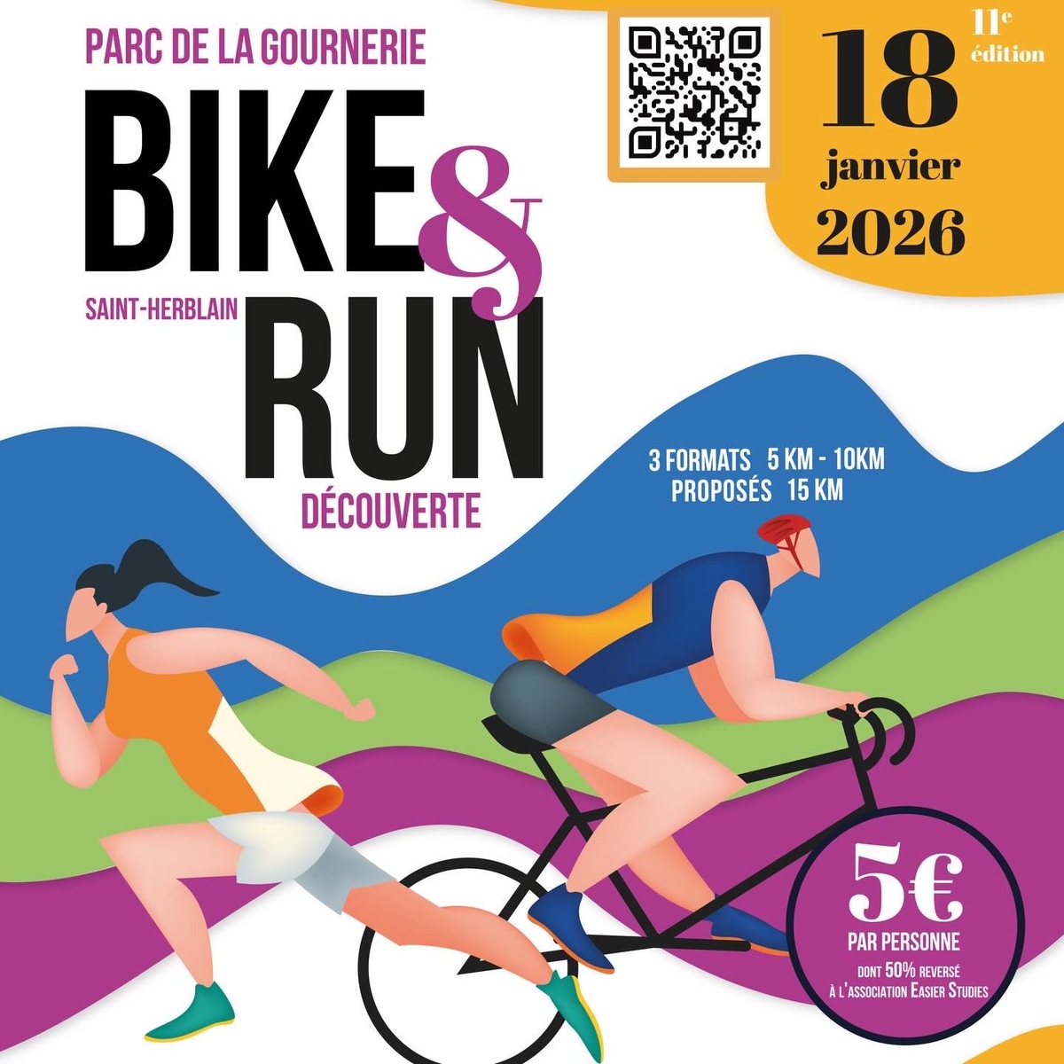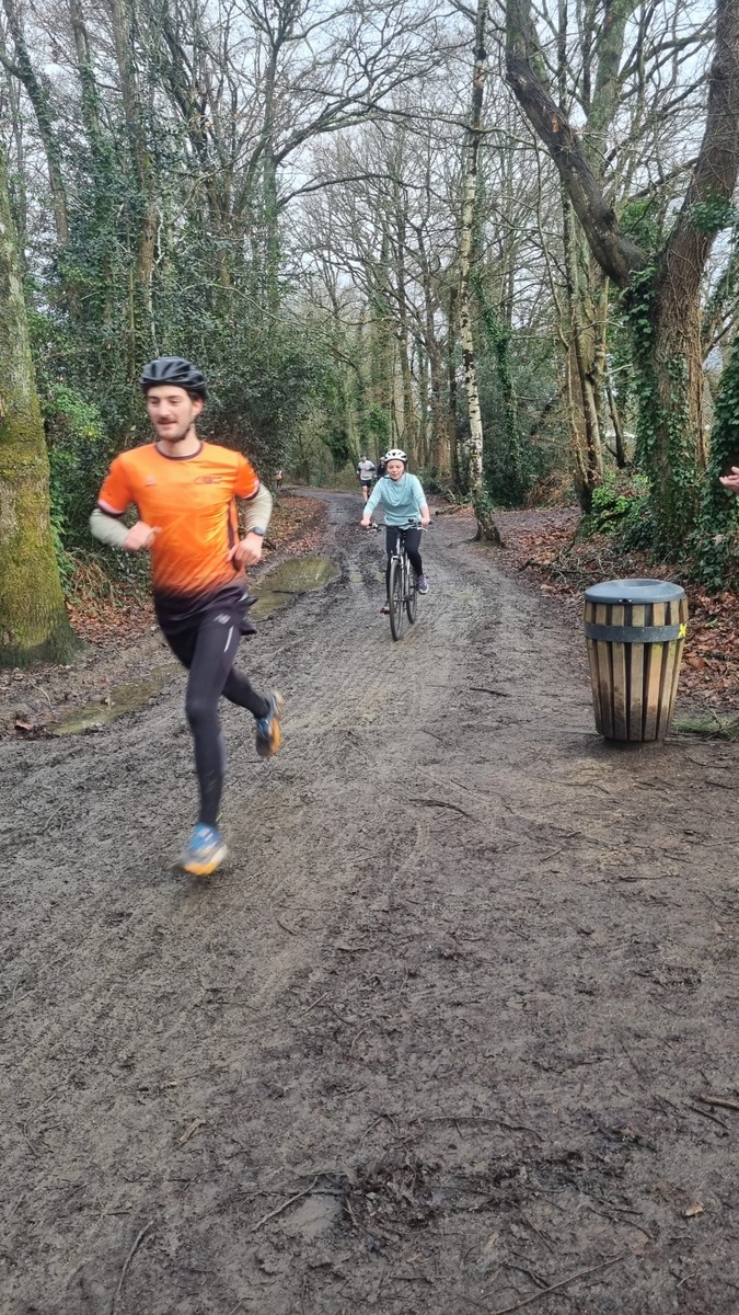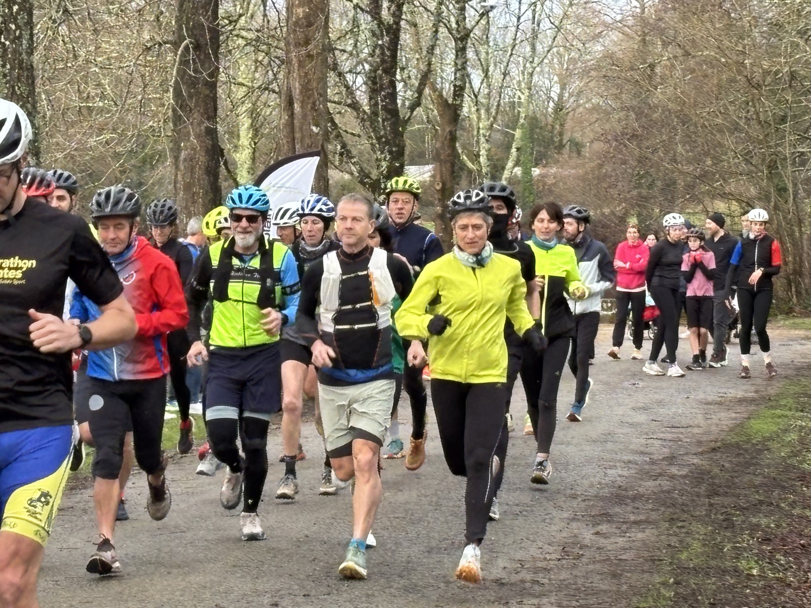 Ce Dimanche 18 Janvier la 11° Édition du Run and Bike Découverte s'est tenue dans le magnifique parc de la Gournerie a Saint Herblain , aprés une année d'interruption suite aux importants travaux conduits sur le site , cette édition était dédiée a la solidarité et a la pratique du sport Responsable . En effet , le Saint Herblain Triathlon avait décidé de promouvoir la pratique sportive responsable en s'associant avec l'association Supporterre pour sensibiliser les participants en organisant une collecte d'équipements sportifs plus utilisés afin de leur donner une seconde vie et favoriser l'economie circulaire ; une animation avec l'étonnante Juiscyclette a permis aux participants volontaires de fabriquer leur jus de fuits sans empreinte carbone a la force de leurs mollets . Sous une météo plutot douce pour la saison , les 58 équipes participantes ont pu bénéficier d'un echauffement tonique organisé par les équipiers SHT avant de s'elancer sur le circuit de 5km tracé autour du Parc sous le starter de Marine Duméril , adjointe aux Sports a la Ville de Saint Herblain . 1 , 2 ou 3 tours , chaque équipe avait le choix de son parcours pour tester sa condition physique ou découvrir le plaisir d'enchainer Vélo et Course a pied .