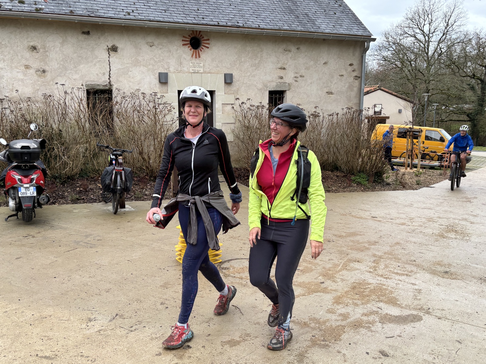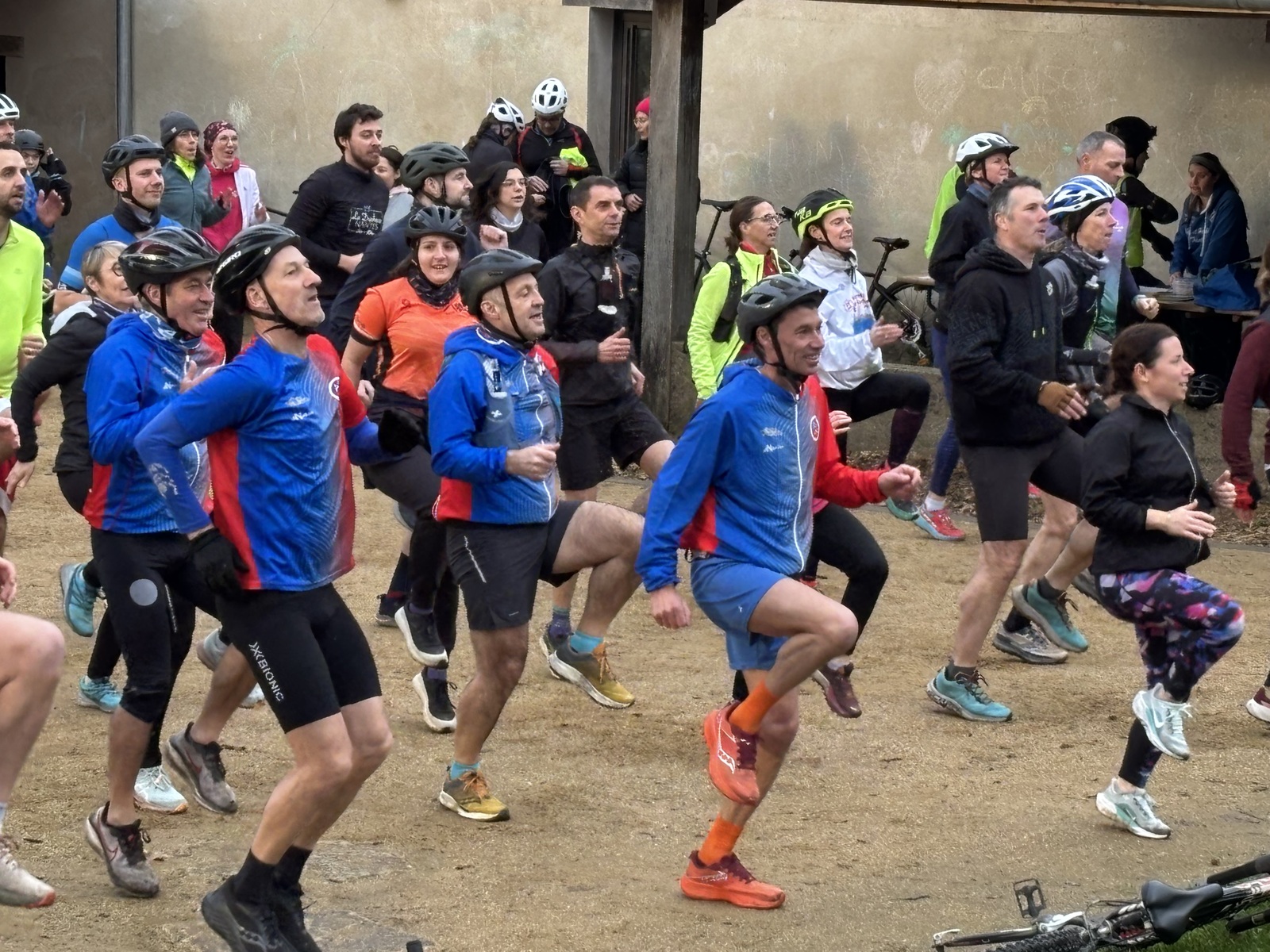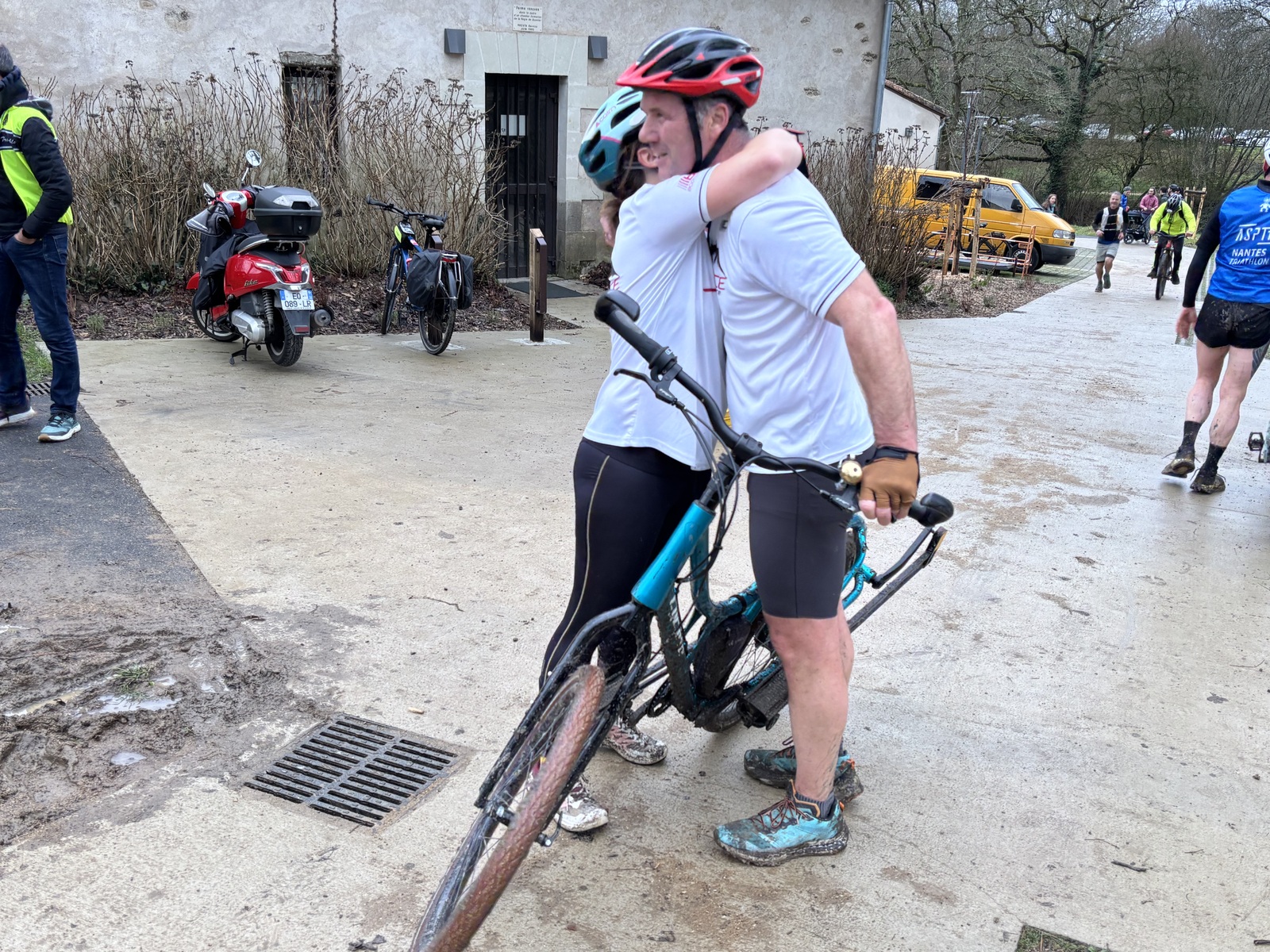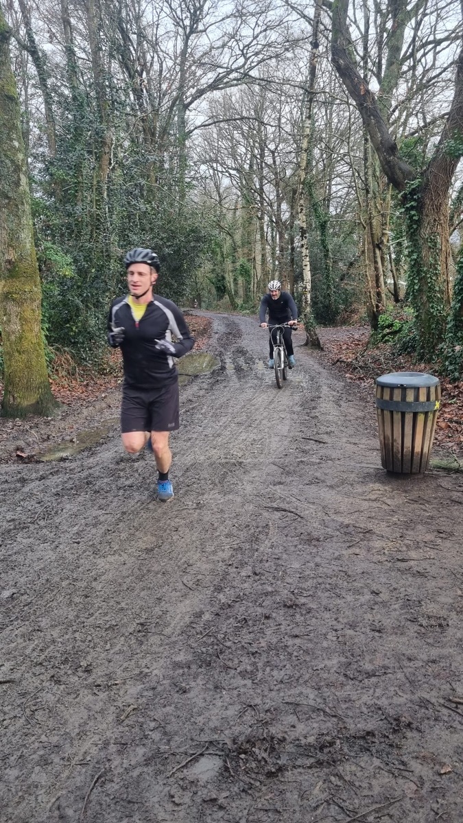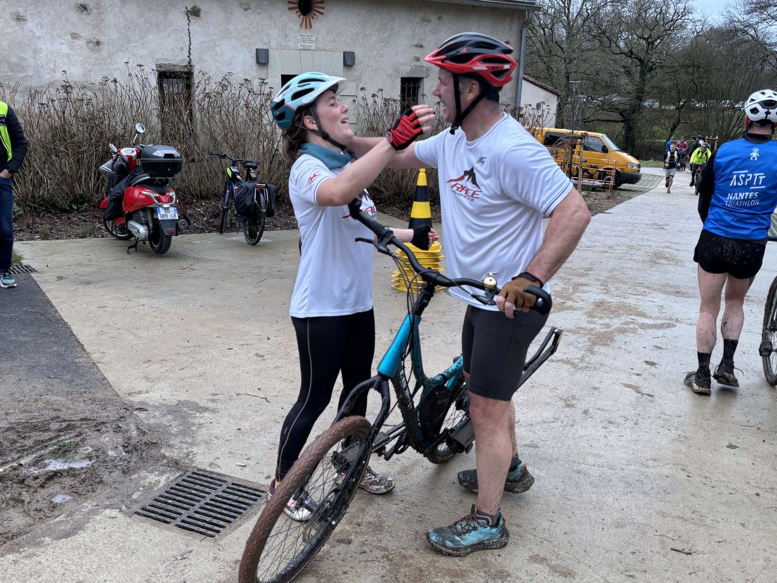 Ce Dimanche 18 Janvier la 11° Édition du Run and Bike Découverte s'est tenue dans le magnifique parc de la Gournerie a Saint Herblain , aprés une année d'interruption suite aux importants travaux conduits sur le site , cette édition était dédiée a la solidarité et a la pratique du sport Responsable . En effet , le Saint Herblain Triathlon avait décidé de promouvoir la pratique sportive responsable en s'associant avec l'association Supporterre pour sensibiliser les participants en organisant une collecte d'équipements sportifs plus utilisés afin de leur donner une seconde vie et favoriser l'economie circulaire ; une animation avec l'étonnante Juiscyclette a permis aux participants volontaires de fabriquer leur jus de fuits sans empreinte carbone a la force de leurs mollets . Sous une météo plutot douce pour la saison , les 58 équipes participantes ont pu bénéficier d'un echauffement tonique organisé par les équipiers SHT avant de s'elancer sur le circuit de 5km tracé autour du Parc sous le starter de Marine Duméril , adjointe aux Sports a la Ville de Saint Herblain . 1 , 2 ou 3 tours , chaque équipe avait le choix de son parcours pour tester sa condition physique ou découvrir le plaisir d'enchainer Vélo et Course a pied .